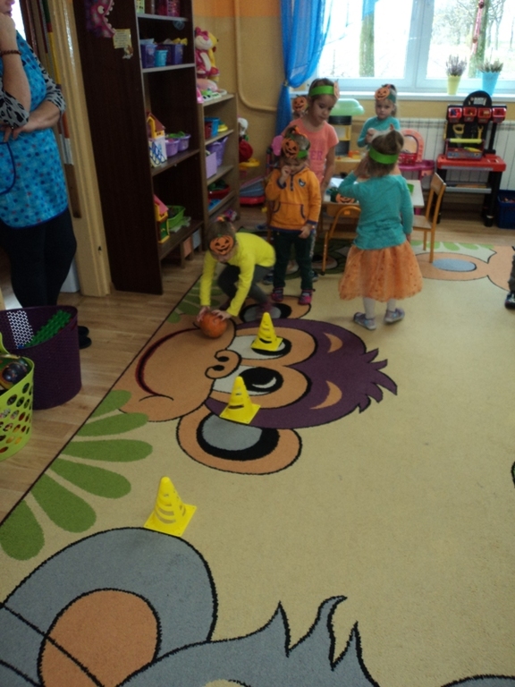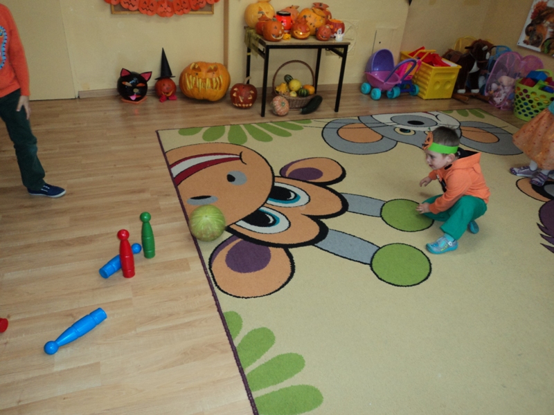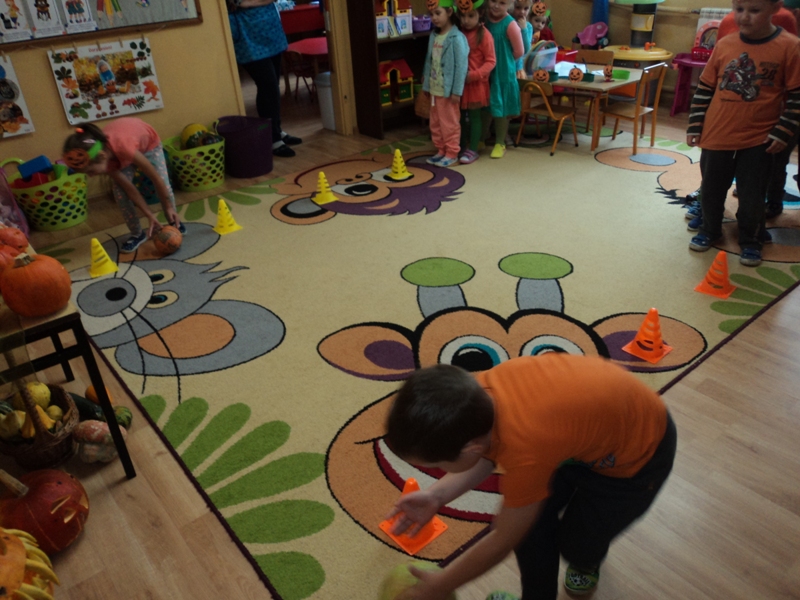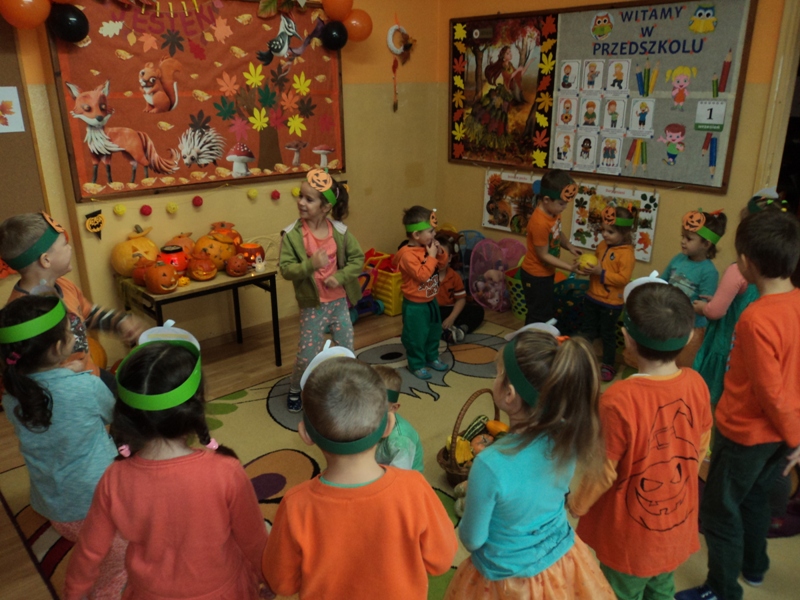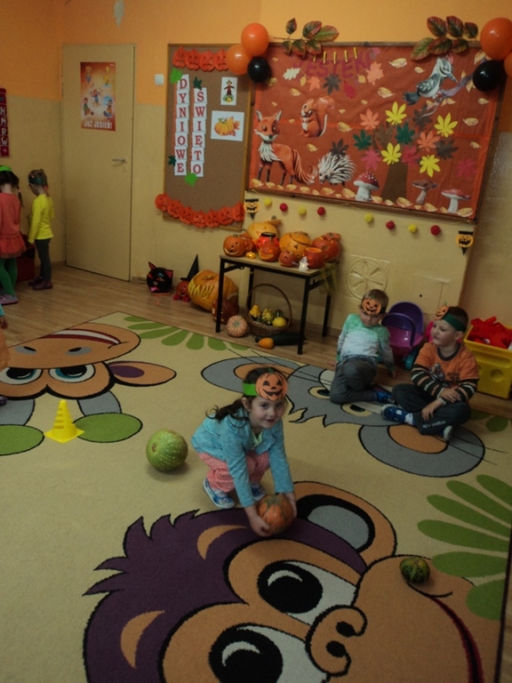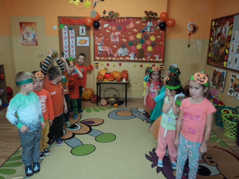 W ciągu dnia maluchy odkrywały i poznawały na różne sposoby warzywa z rodziny dyniowatych, ich budowę, różnorodność wyglądu, walory i wartości odżywcze oraz pyszne dania z dyni. Odbyły się różne dyniowe zabawy połączone z tańcem przy muzyce. Nie obyło się również bez zawodów sportowych, w których główną rolę odgrywała „nasza królowa”, wśród zadań dla dzieci znalazły się dyniowe kręgle, toczenie dyni, przysiady z dynią, przeskoki przez dynie różnych rozmiarów i wiele innych. Na zakończenie zajęć było malowanie dyni bez użycia pędzli, pędzle zastąpiły palce naszych przedszkolaków. Wszyscy wykonali również wesołe „Dyniaki”.