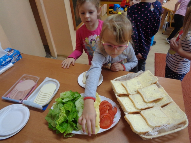 Dzieci z oddziałów przedszkolnych z pomocą swoich Pań zrobiły zdrowe kanapki i zapoznały się z zasadami zdrowego odżywiania się: