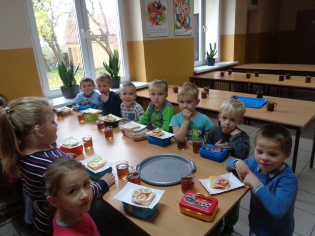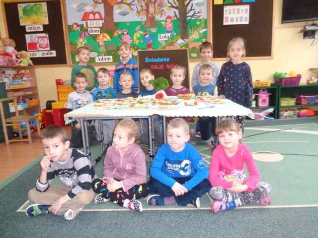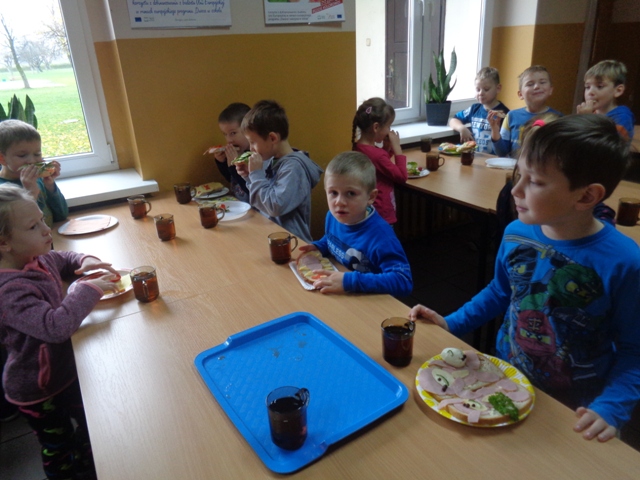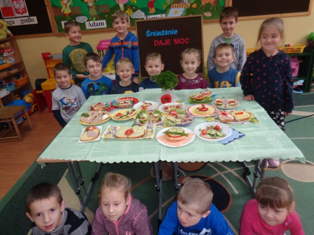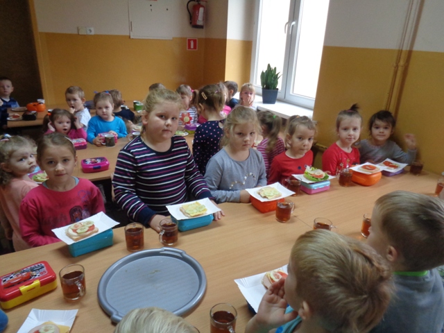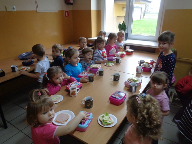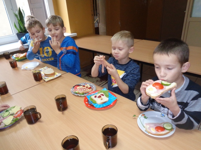 Śniadanie to najważniejszy posiłek dnia. Dzięki niemu dzieci mają energię do nauki, lepiej koncentrują się podczas zajęć i mają siłę do zabawy. To najlepszy start w nowy dzień! Dzieci z oddziału „O” uczestnicząc w programie profilaktycznym „Moje dziecko idzie do szkoły” w tym dniu samodzielnie przygotowywały zdrowe kanapki. W tym oddziale powstały kolorowe motyle, misie i wiele ciekawych zwierzątek.