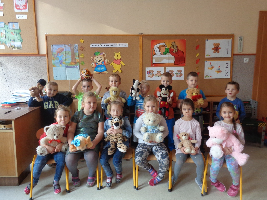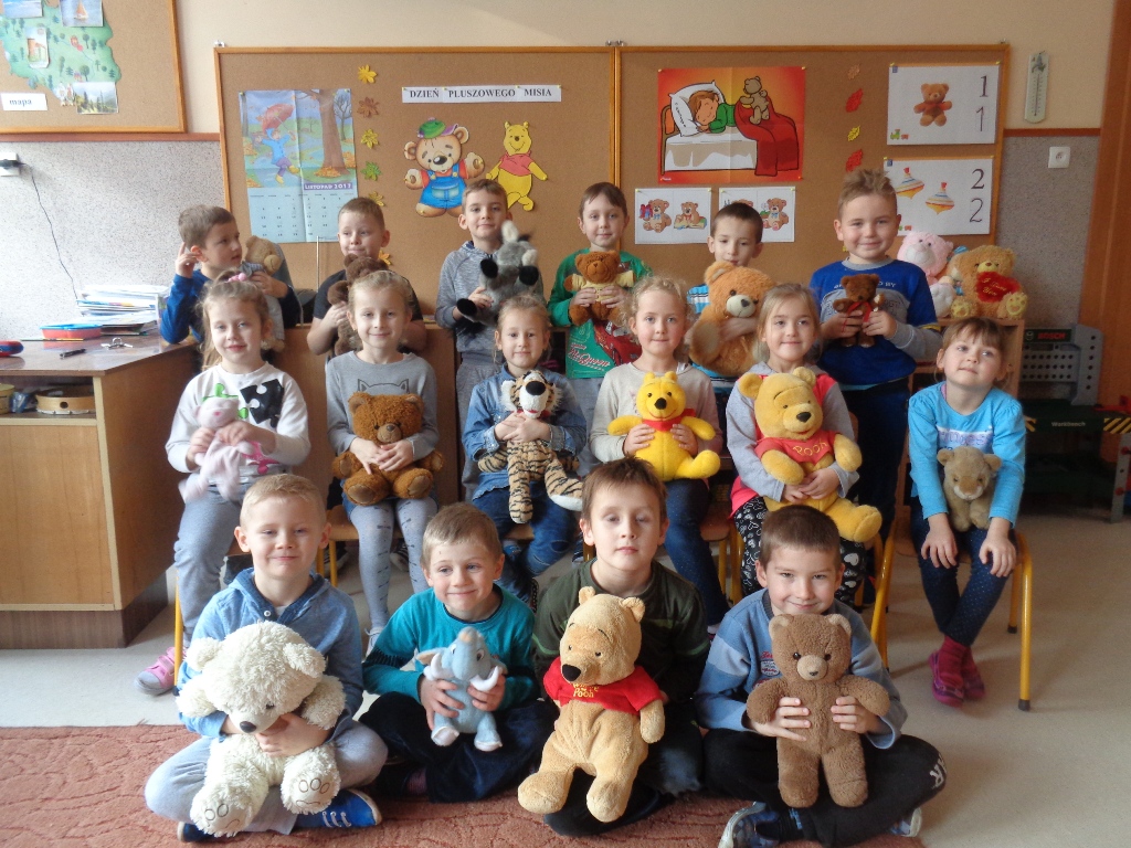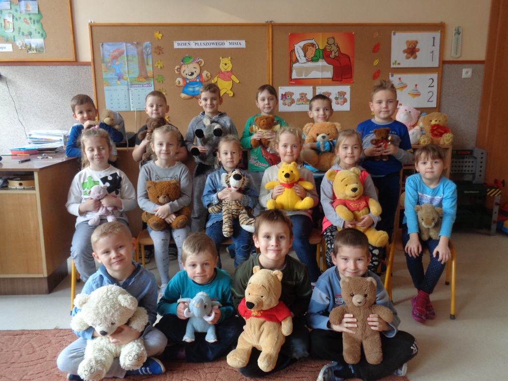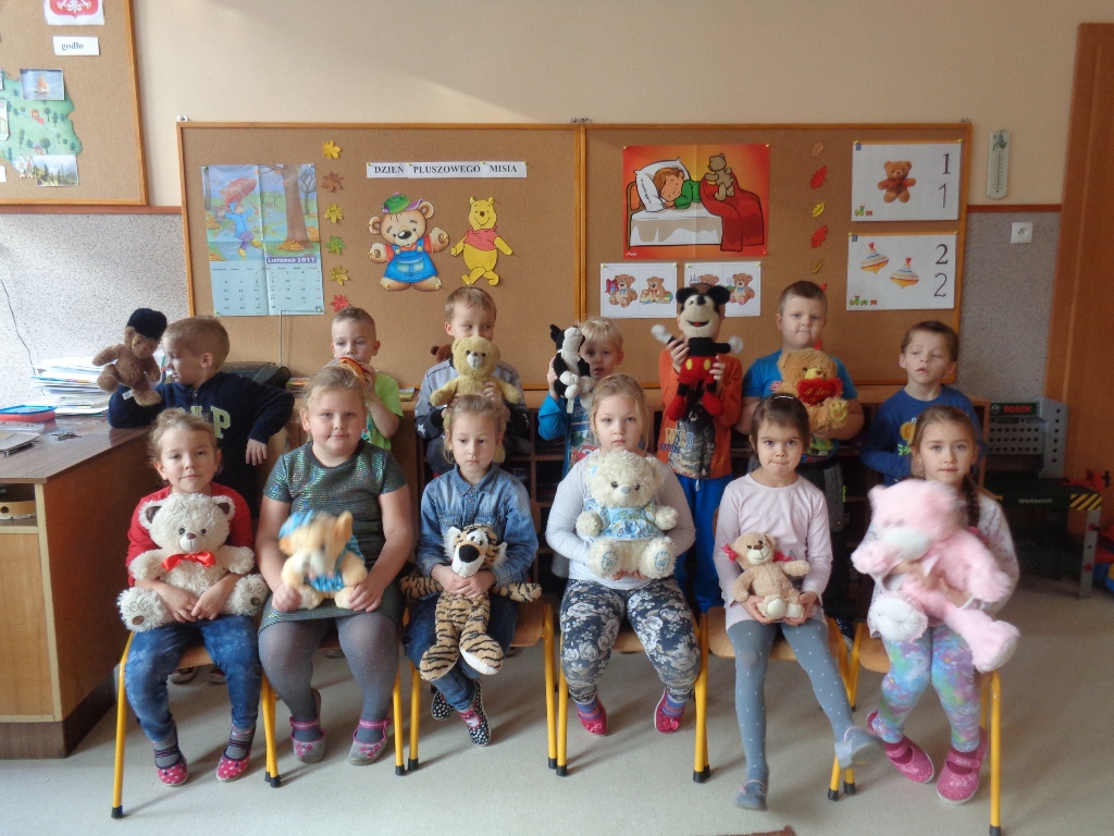 Dzieci z oddziałów przedszkolnych w Mokronosie dnia 24.11.2017 r. obchodziły dzień PLUSZOWEGO MISIA. W tym dniu w progi przedszkolnych sal zawitały kolorowe misie a zarazem przyjaciele przedszkolaków. Trudno sobie wyobrazić dzisiejszy świat bez Pluszowego Misia. Jest towarzyszem dzieci i dorosłych w świecie beztroskiej zabawy oraz przyjacielem-powiernikiem największych sekretów i tajemnic. Wszystkie grupy zapoznały się z krótką historią misia, wspólnie z misiami tańczyły, częstowały się misiowymi przysmakami i malowały farbami pluszaka.