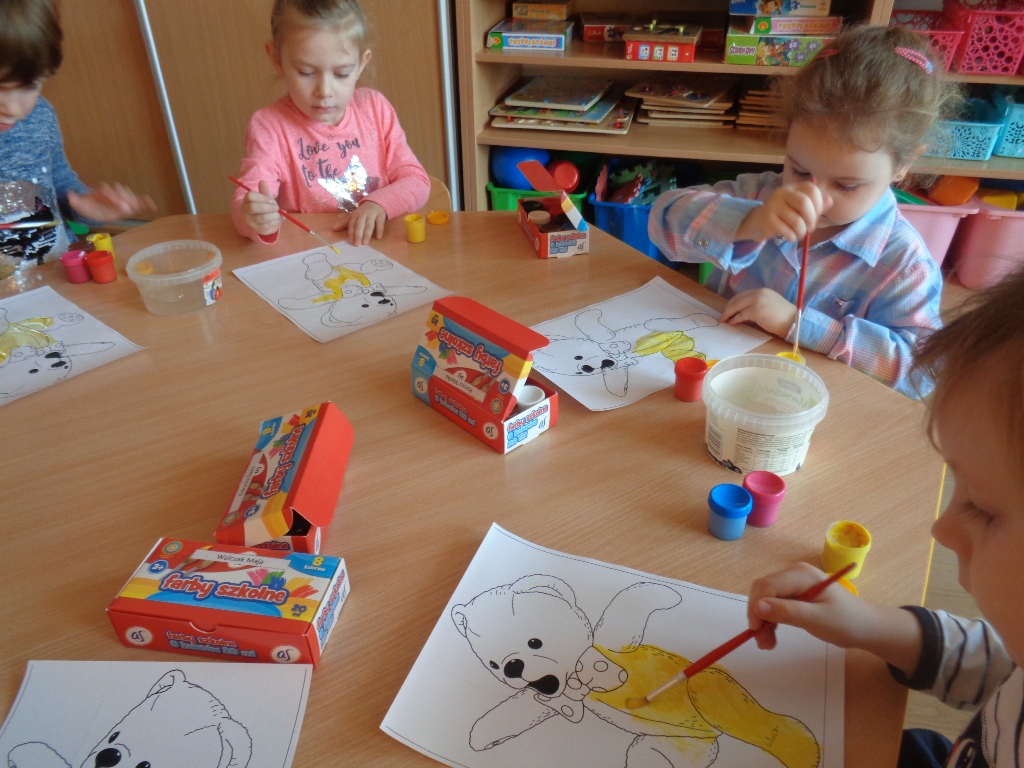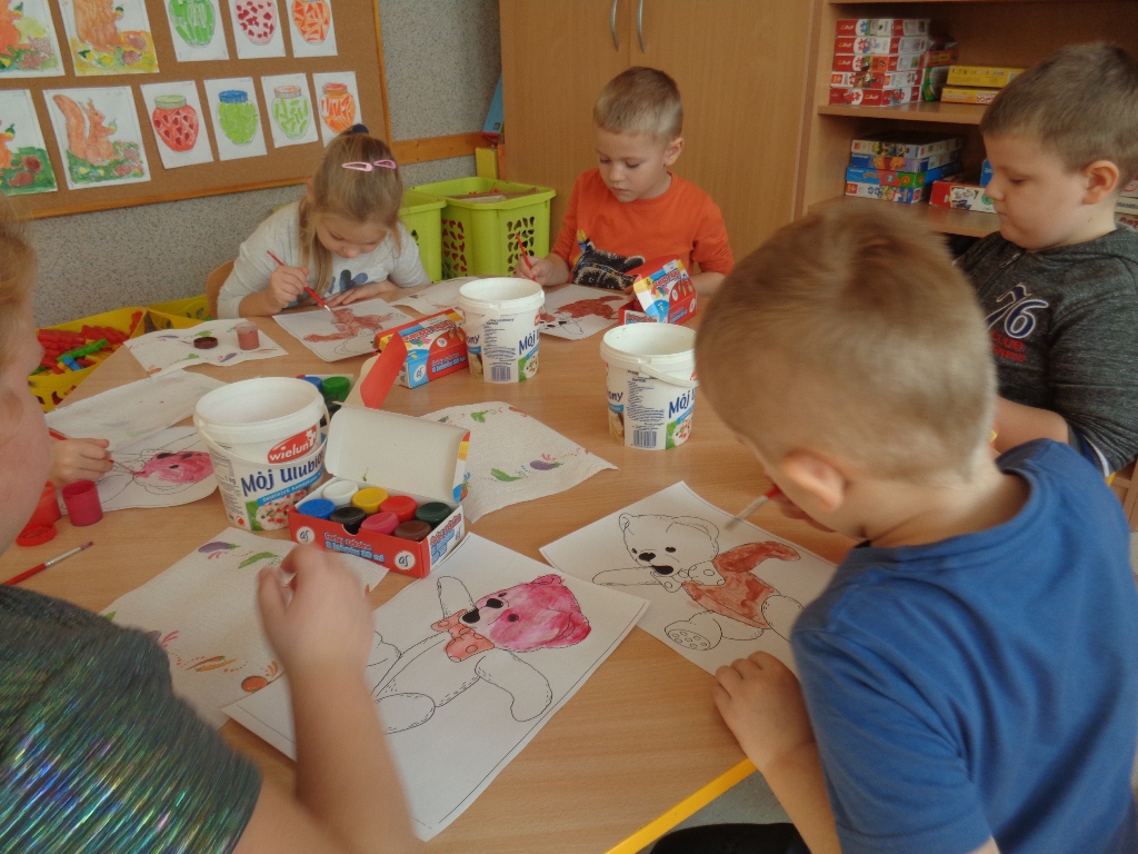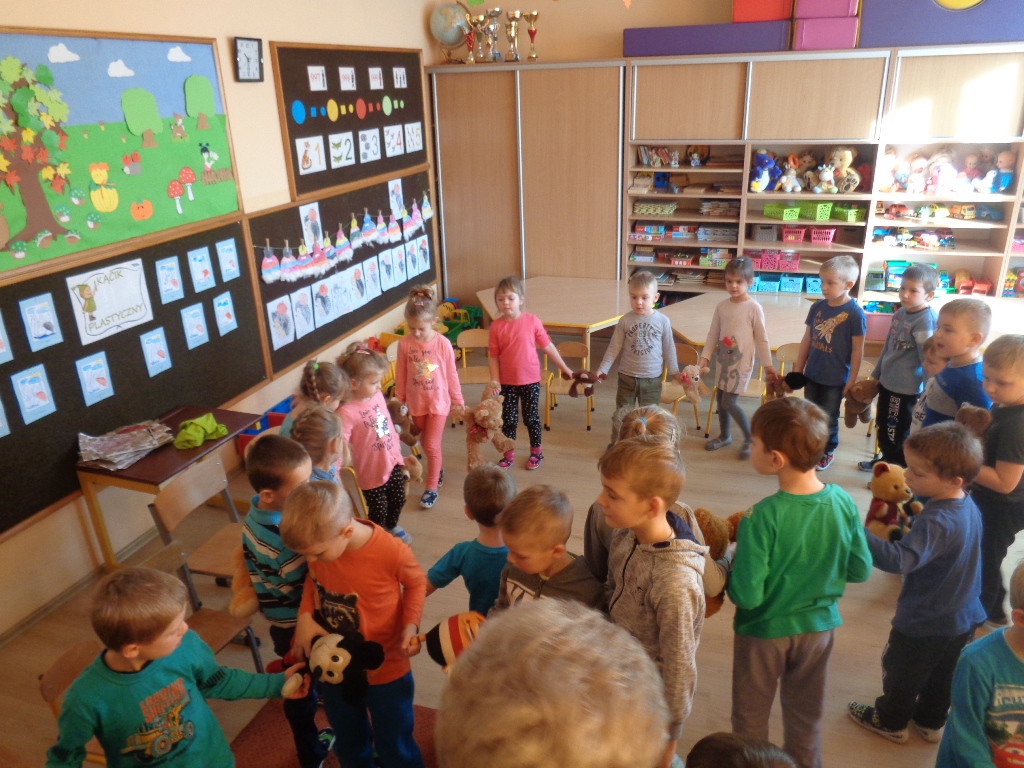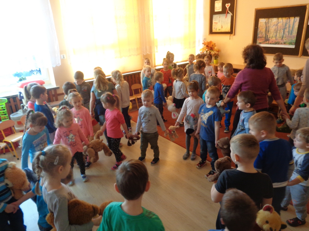 Dzieci z oddziałów przedszkolnych w Mokronosie dnia 24.11.2017 r. obchodziły dzień PLUSZOWEGO MISIA. W tym dniu w progi przedszkolnych sal zawitały kolorowe misie a zarazem przyjaciele przedszkolaków. Trudno sobie wyobrazić dzisiejszy świat bez Pluszowego Misia. Jest towarzyszem dzieci i dorosłych w świecie beztroskiej zabawy oraz przyjacielem-powiernikiem największych sekretów i tajemnic. Wszystkie grupy zapoznały się z krótką historią misia, wspólnie z misiami tańczyły, częstowały się misiowymi przysmakami i malowały farbami pluszaka.