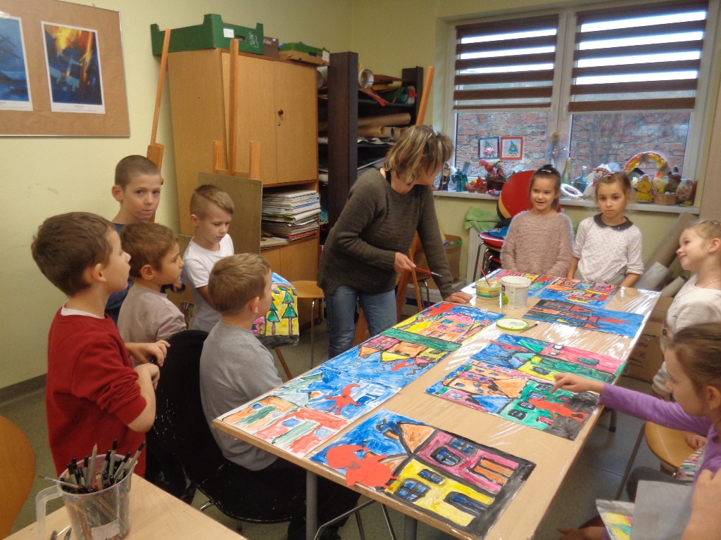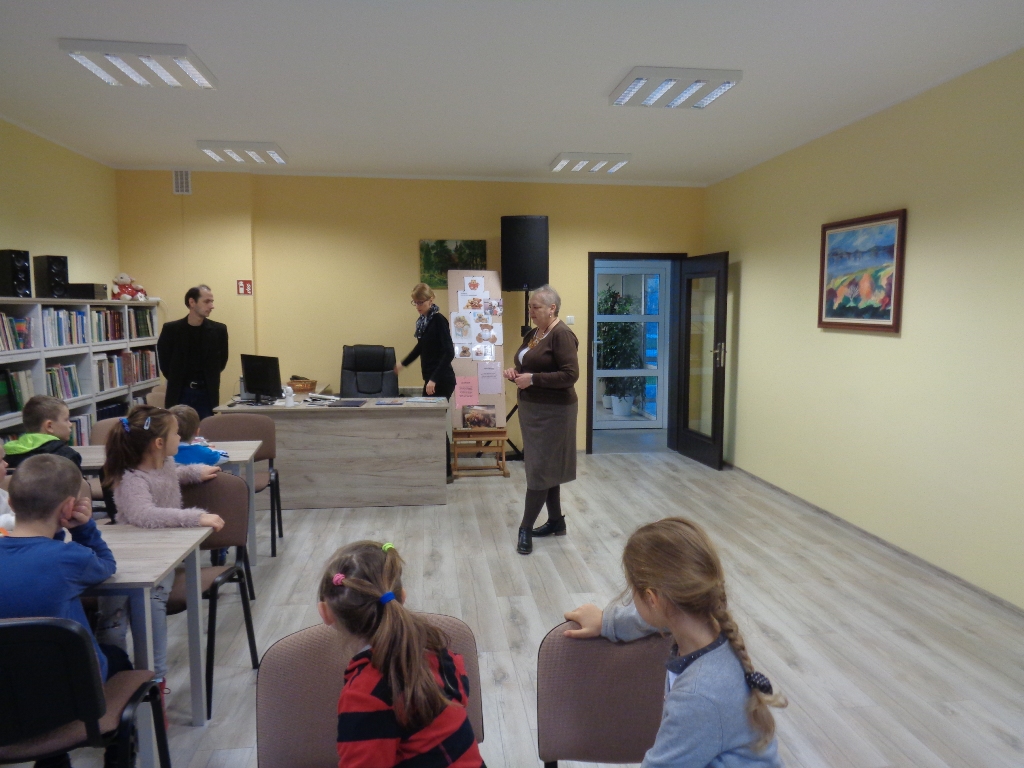 30 listopada 2017r. uczniowie klasy I wraz z wychowawczynią wzięli udział w zajęciach w bibliotece: czytali, rozwiązywali zagadki, śpiewali i tańczyli do znanych piosenek o misiach. Celem spotkania było zachęcenie najmłodszych uczniów do wypożyczania książek oraz nieustanne rozwijanie umiejętności czytania. Następnie udały się do Ośrodka Kultury, gdzie brały udział w warsztatach plastycznych pt.: „Święty Mikołaj”. Na początku spotkania Pani Mariola Malinowska przedstawiła dzieciom krótką historię o św. Mikołaju. W drugiej części dzieci wykonywały prace plastyczne, którego tematem było zobrazowanie postaci św. Mikołaja. Czas spędzony na twórczych działaniach przyniósł wszystkim wiele radości.