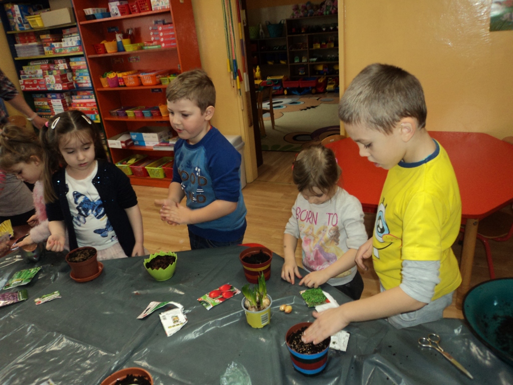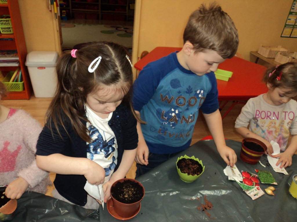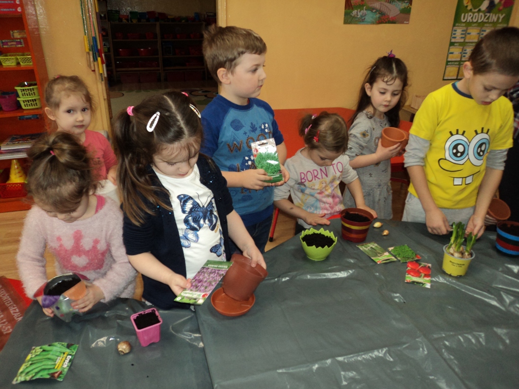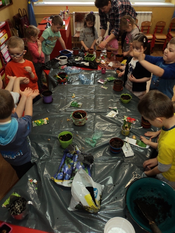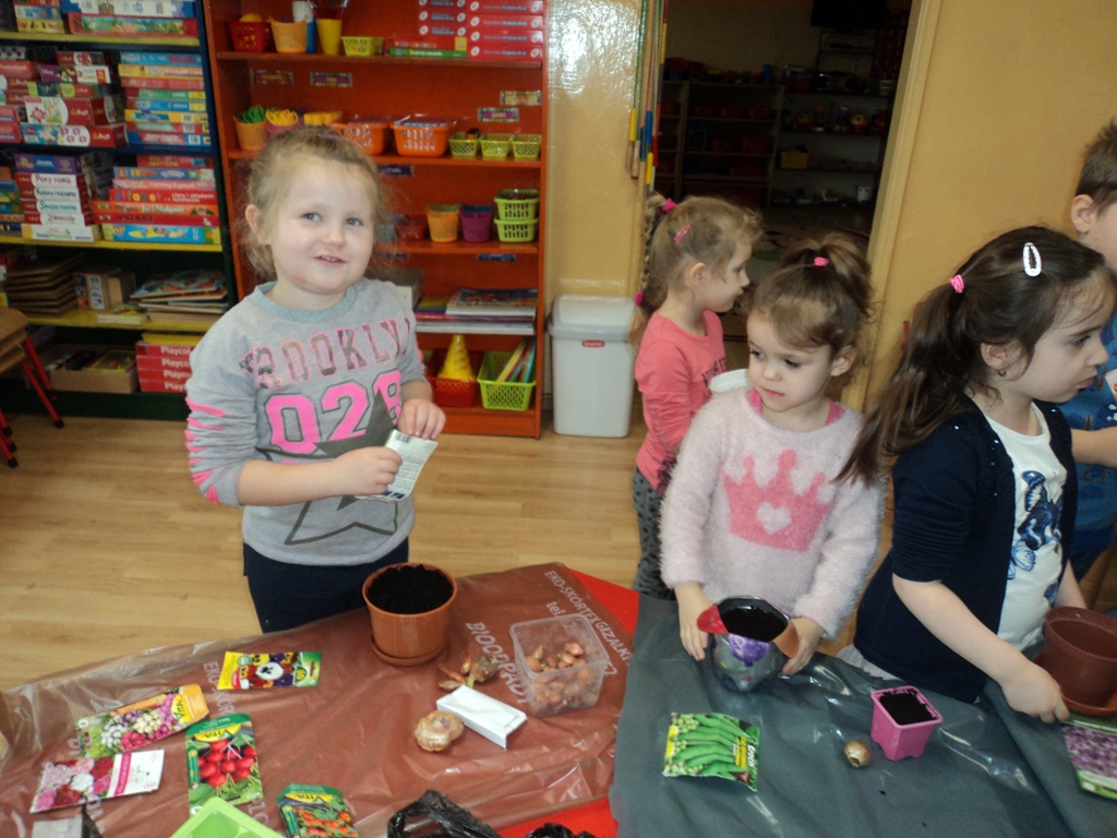 Wiosna już tuż tuż! :) Przedszkolaki z Wrotkowa rozpoczęły przygotowania na powitanie tej magicznej pory roku, sadząc, siejąc oraz prezentując nasionka lub sadzonki wraz z doniczkami, które przyniosły w tym dniu do przedszkola.