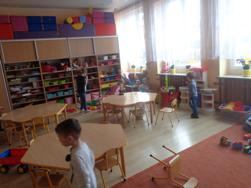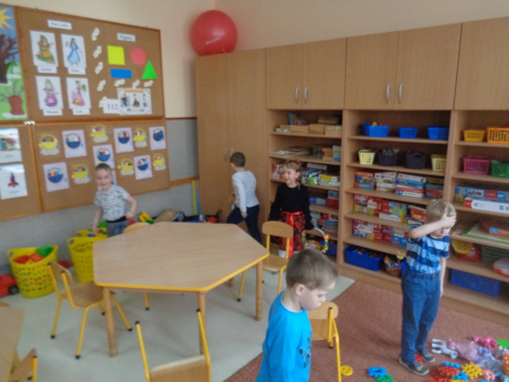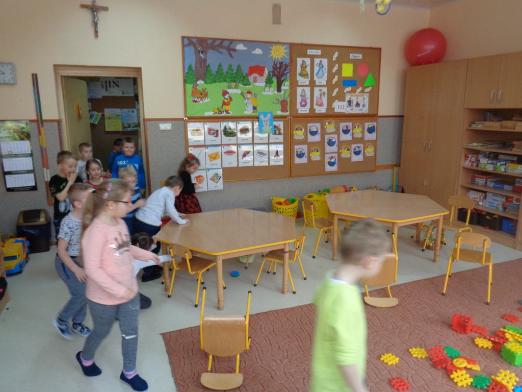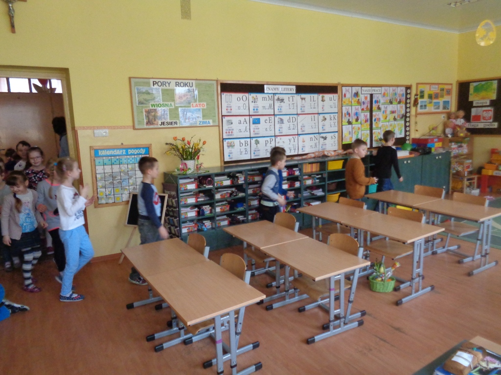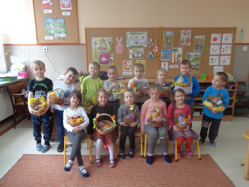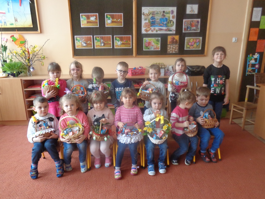 Tak było i w bieżącym roku. Najpierw dzieci ozdabiały swe koszyczki, aby „przyciągnąć” do nich wzrok czworonoga. Koszyczki zostały wystawione w centralnym miejscy sali. A potem było już tylko wielkie oczekiwanie i nuta niepewności, czy na pewno do nas zawita... Na szczęście wszystko odbyło się zgodnie z planem: zajączek po śladach dotarł do wszystkich oddziałów, napełnił koszyczki słodkościami, a potem bardzo zmęczony zatrzymał się w sali starszaków, by nieco odpocząć i schrupać marchewkę przed dalszą podróżą. Wszak pracy w okresie przedświątecznym mu nie brakuje...