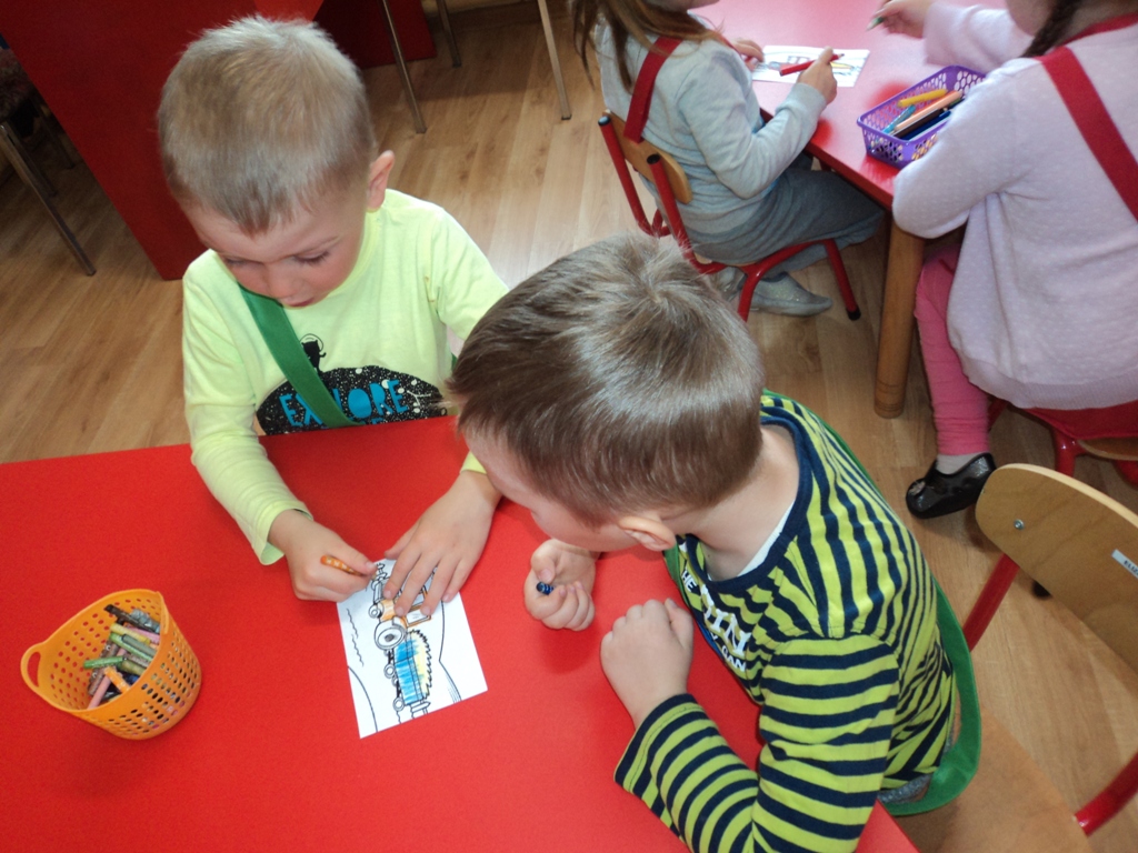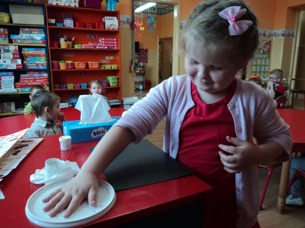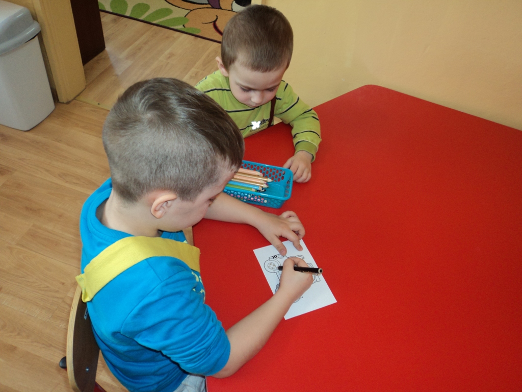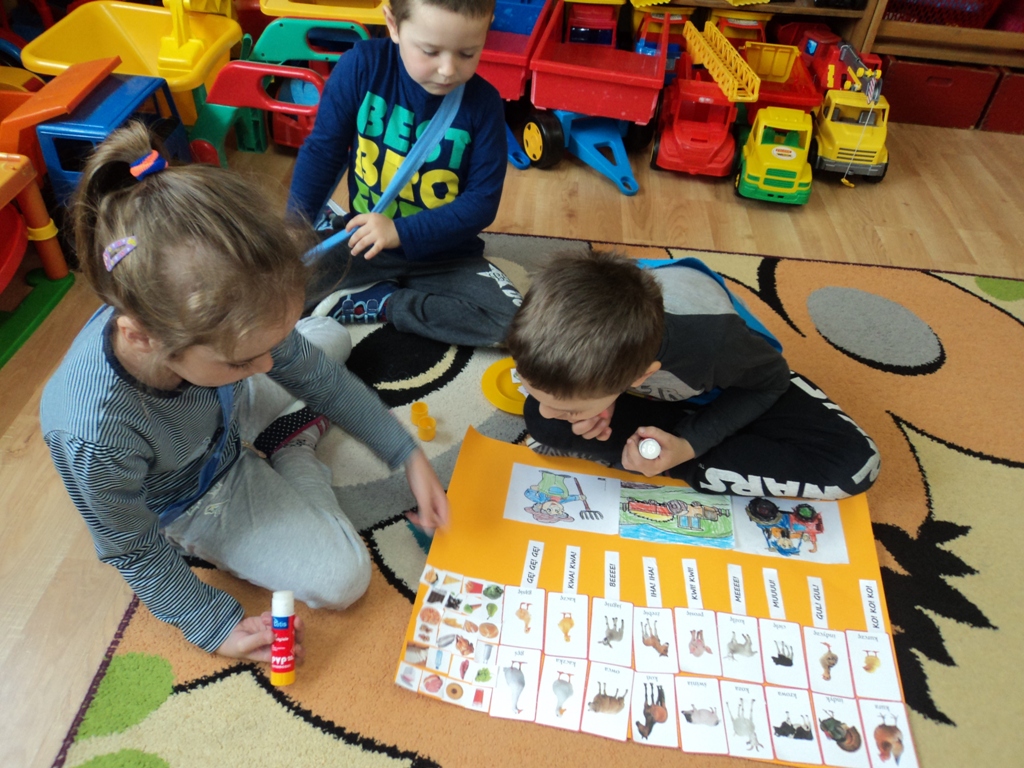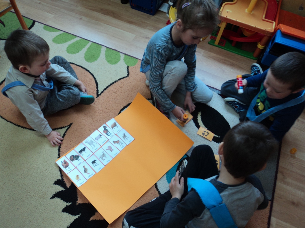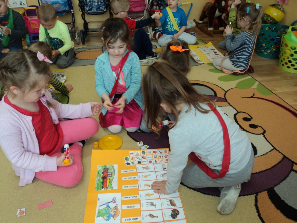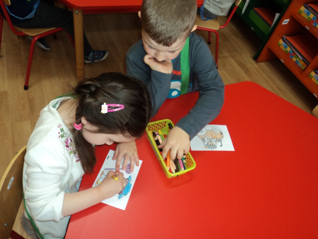 Przypomnieliśmy sobie jakie zwierzęta hodowane są na wsi, po co ludzie je hodują, gdzie one mieszkają, jakich dostarczają produktów. Przeanalizowaliśmy dzień z życia rolnika. Maluchy przeglądały ilustracje związane z tematem, słuchały odgłosów z gospodarstwa. Dzieci podzielone na grupy wykonały plakaty związane z życiem na wsi, zadaniem przedszkolaków było m. in. posegregowanie zwierząt wiejskich, pokolorowanie ilustracji związanych z pracą rolnika czy wybranie produktów spożywczych, które pochodzą właśnie ze wsi. Grupy bardzo solidnie wykonały powierzone im zadania.