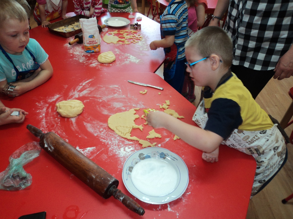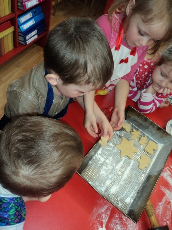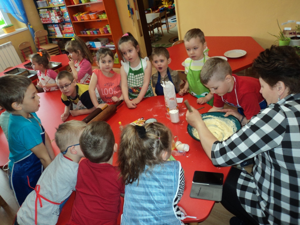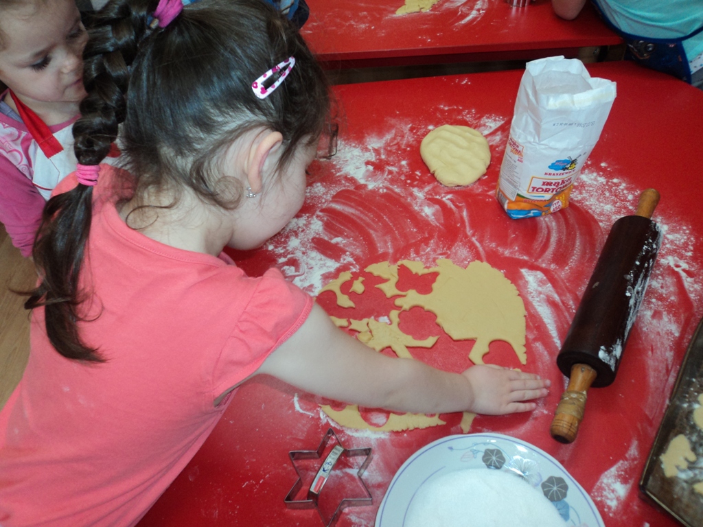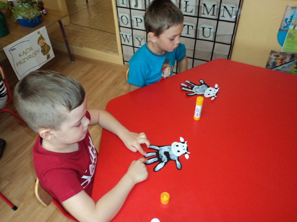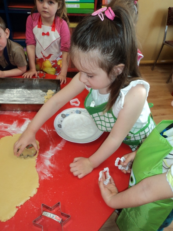 Podczas „wiejskiego” tygodnia wykonaliśmy kilka prac plastycznych związanych z daną tematyką, powstały łaciate krowy i puszyste owieczki. Jako podsumowanie tygodnia postanowiliśmy wspólnymi siłami upiec kruche ciasteczka. Pracy było co niemiara ale jej efektem był słodki zapach unoszący się w całym przedszkolu i pyszne ciasteczka, którymi na koniec dnia mogliśmy się delektować i którymi dzieci z miłą chęcią częstowały swoich rodziców. Dla dzieci był to bardzo aktywny tydzień, pełen wrażeń.
