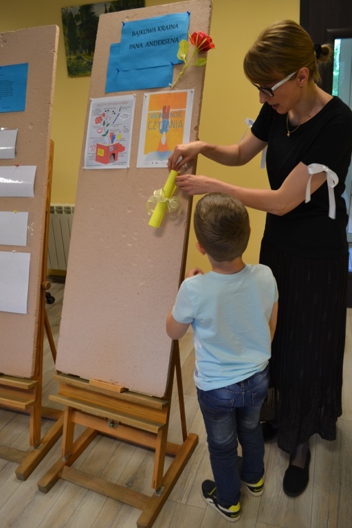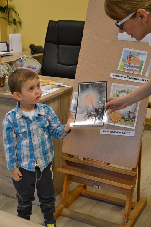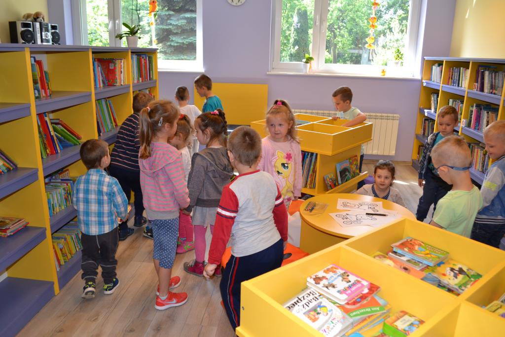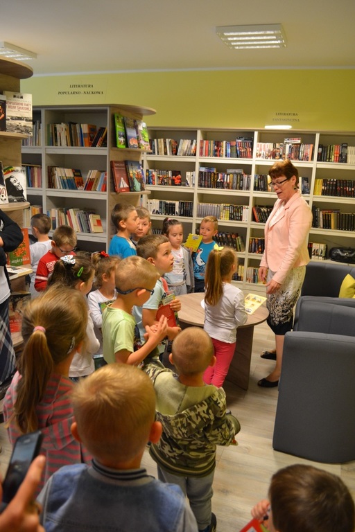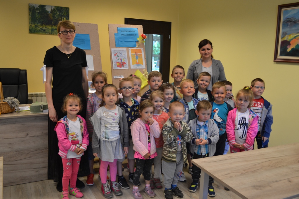 W czwartek dzieci wraz z opiekunkami, odwiedziły bibliotekę miejską. Przedszkolaki z zainteresowaniem zapoznały się z nowym dla nich miejscem. Kilkoro z nich, było wcześniej w bibliotece ze swoimi rodzicami, ale dla zdecydowanej większości była to pierwsza wizyta wśród tylu książek. Wizytę rozpoczęliśmy od udziału w zajęciach pt. „Bajkowa kraina pana Andersena”, w których przygotowane było wiele atrakcji i ciekawostek związanych z baśniami tego właśnie autora. Dzieciaki bawiły się przednio. Podczas wizyty w bibliotece dzieci miały możliwość przejść między regałami w wypożyczalni i zapoznać się z biblioteką. Przedszkolaki z wielkim zainteresowaniem przeglądały książki znajdujące się na półkach, ale szczególne zainteresował ich dział dla dzieci. Wszystkim spodobały się kolorowe i bogato ilustrowane książeczki, które z chęcią oglądały i komentowały. Panie bibliotekarki w przystępny sposób opowiadała o bibliotece i o zbiorach znajdujących się na półkach. Dzieci zobaczyły jak wygląda karta czytelnika oraz poznały zasady wypożyczania książek. Dowiedziały się także, jak należy dbać o książki. Każdy przedszkolak otrzymał od pani bibliotekarki zakładkę do książki. Jesteśmy bardzo wdzięczni za tak miłe przyjęcie nas. Dziękujemy!