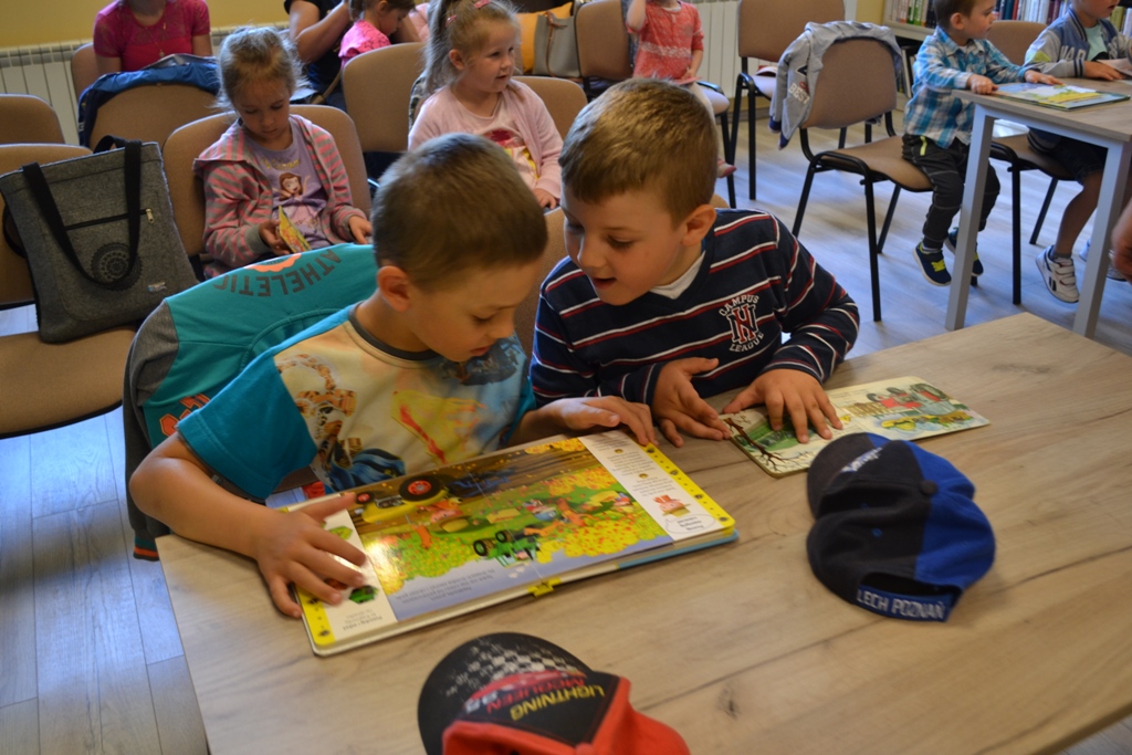 Podczas „OGÓLNOPOLSKIEGO TYGODNIA BIBLIOTEK”, dnia 10 maja br. przedszkolaki z Wrotkowa umówiły się na specjalne spotkanie i wybrały się do Publicznej Biblioteki Miasta i Gminy Koźmin Wlkp. Była to bardzo ciekawa wizyta a wszystko to było połączone z tematyką tygodnia: „Jak powstaje książka?”. W tych dniach dzieci przynosiły do przedszkola swoje ulubione książeczki z domu, tworząc w ten sposób Przedszkolną Biblioteczkę, z której następnie mogły wypożyczać wybrane przez siebie egzemplarze do domu. Maluchy wykonywały swoje własne zakładki do książek oraz wiele prac plastycznych związanych z tematyką tygodnia.