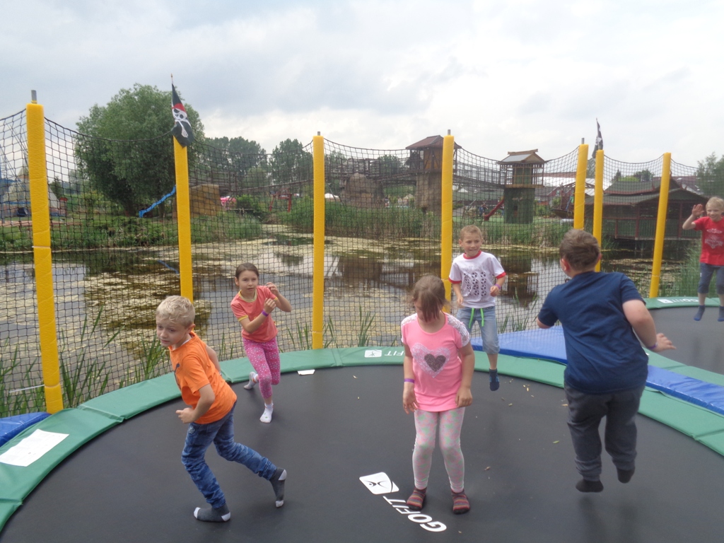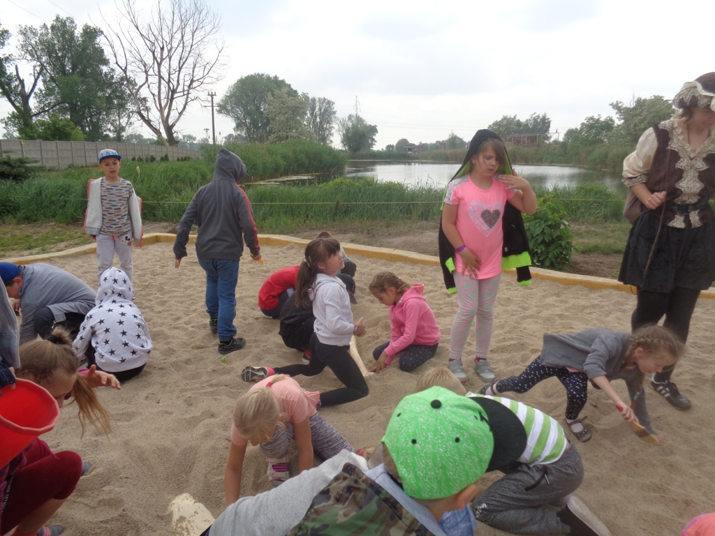 W środę 16 maja uczniowie klasy I i II wraz z piratka Piranią płyneli tratwą i szukali skarbu zatopionego wraz z Białym Nenufarem w Kościanie. Pomagali piratce wiosłowac. Wcześniej każdy z nich przeszedł "chrzest" - pasowania na pirata. Skarb odnaleźli, a w nagrodę otrzymali worek cukierków i lody. Urozmaiceniem pirackiej wyprawy był pobyt na nowoczesnym placu rozrywki.