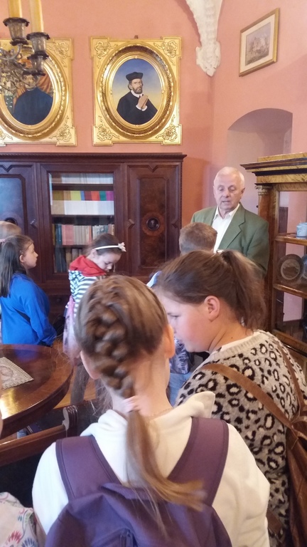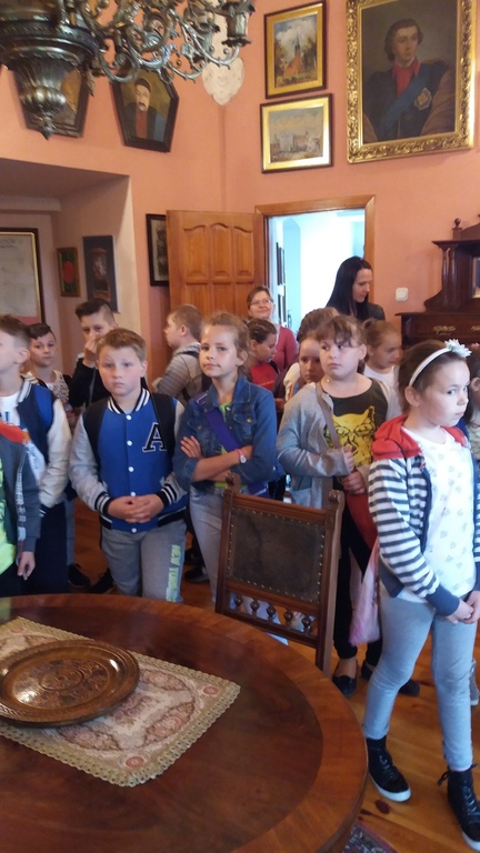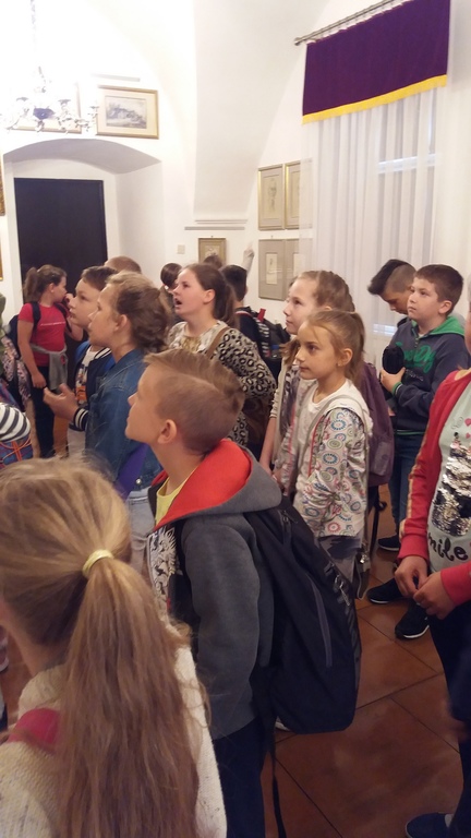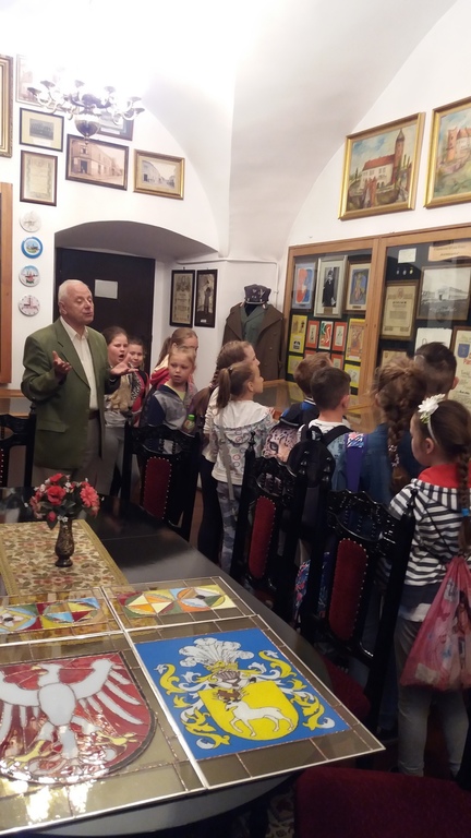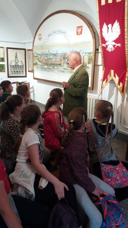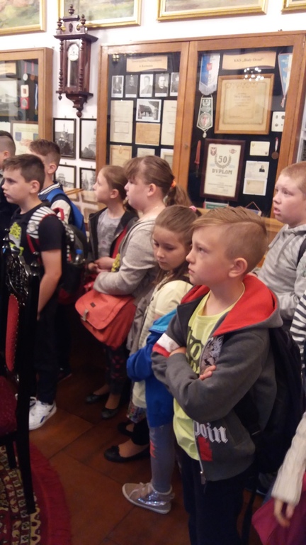 W środę 16 maja 2018 roku uczennice i uczniowie klasy IV b odwiedzili wraz z panią polonistką Muzeum Regionalne w Koźminie Wlkp. Lekcję muzealną prowadził kustosz. Dzieci z ogromnym zainteresowaniem obejrzały film dotyczący historii grodu przekazanego w 1232 roku zakonowi templariuszy przez księcia Władysława Odonica. Największą ciekawość wzbudziła jednak postać niesławnego, późniejszego właściciela Koźmina i jego okolic, Maćka Borkowica. Oglądaliśmy również obrazy przedstawiające owego wojewodę, wysłuchaliśmy o nim miejscowych legend, a na koniec zaglądaliśmy do lochu, w którym zmarł śmiercią głodową. Oczywiście jest on rekonstrukcją oryginalnego miejsca kary Maćka Borkowica, znajdującego się w Olsztynie pod Częstochową.