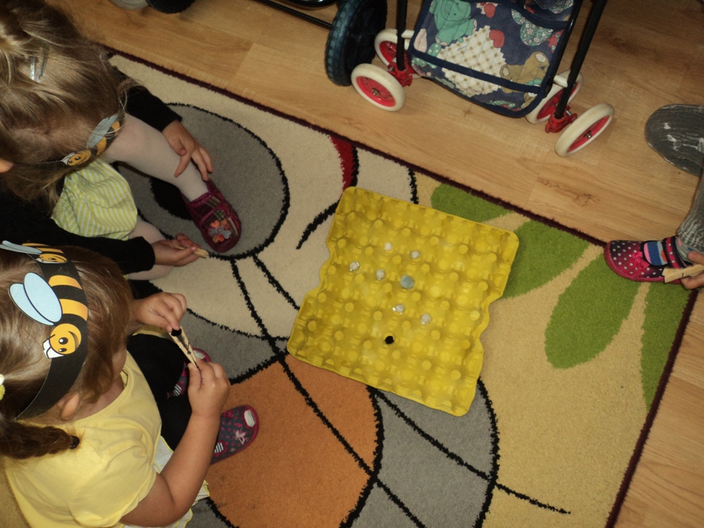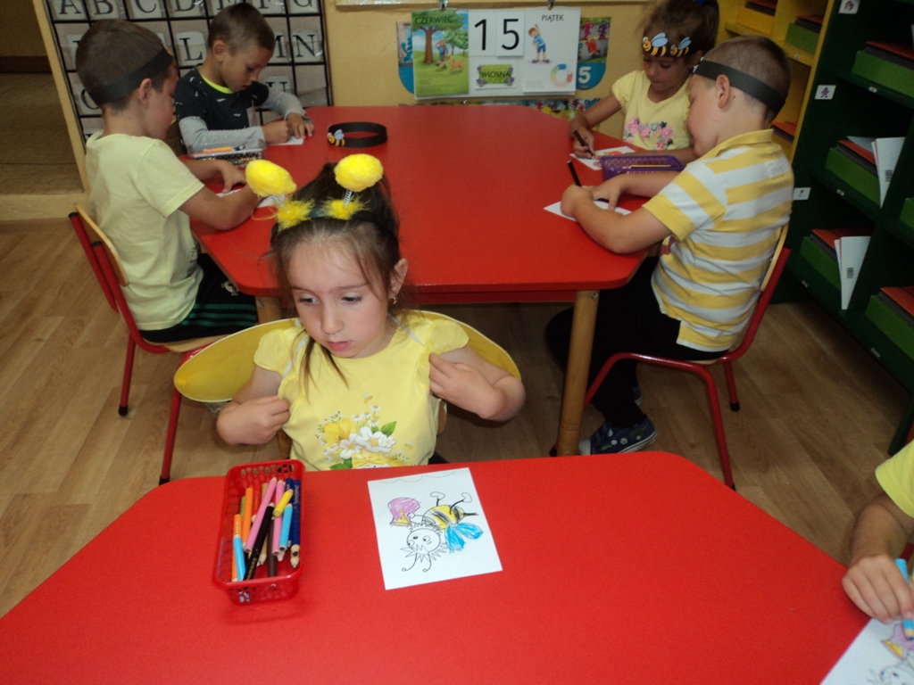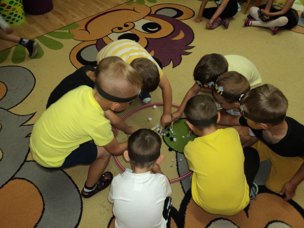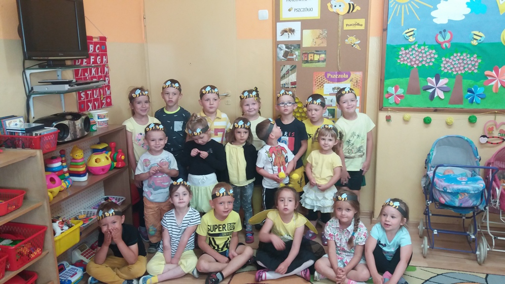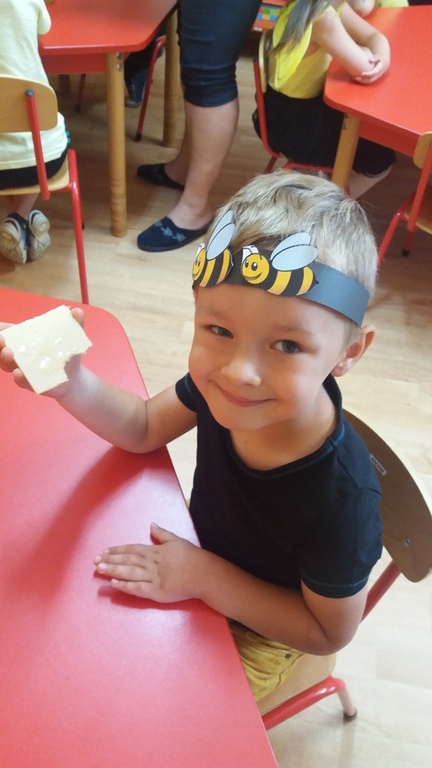 Dzieci na przykładzie tych małych owadów miały okazję poznać znaczenie pracy i tego jak ważna w przyrodzie jest rola pszczół. Maluchy w tym dniu same upodobniły się do pszczółek, poprzez żółto-czarne stroje i opaski z pszczółkami. Miały okazję poznać pracę pszczelarza, sposoby pozyskiwania miodu, budowę ula, oraz znaczenie poszczególnych pszczół w ich roju. Przedszkolaki tak jak pszczoły zbierały nektar, a w nagrodę miały okazję degustować pyszny miód. Wykonały również swoje własne pszczółki, które szybo zapełniły plaster miodu na przedszkolnej wystawce. Dzięki tym zajęciom upewniliśmy się tylko że bez pszczół nasz świat byłby ubogi, smutny, pozbawiony kolorów i smaków.