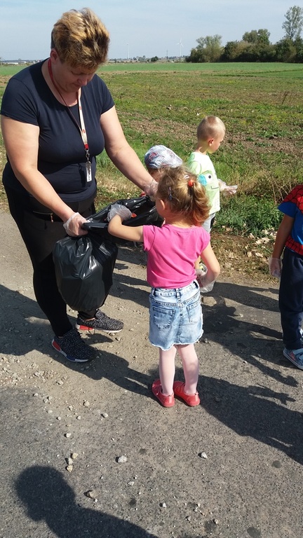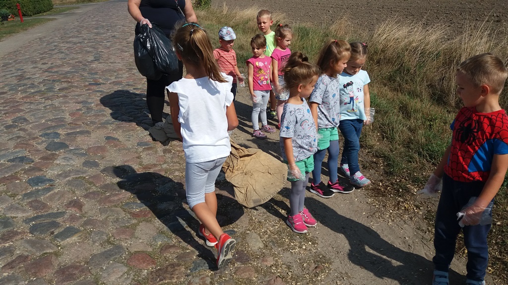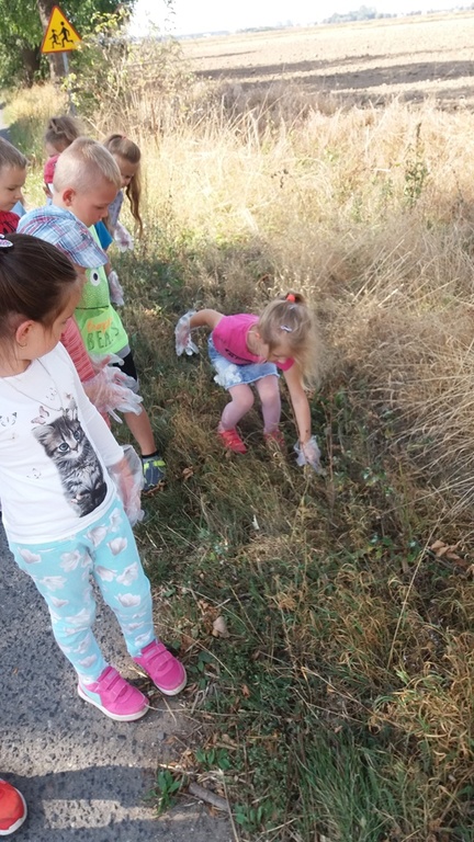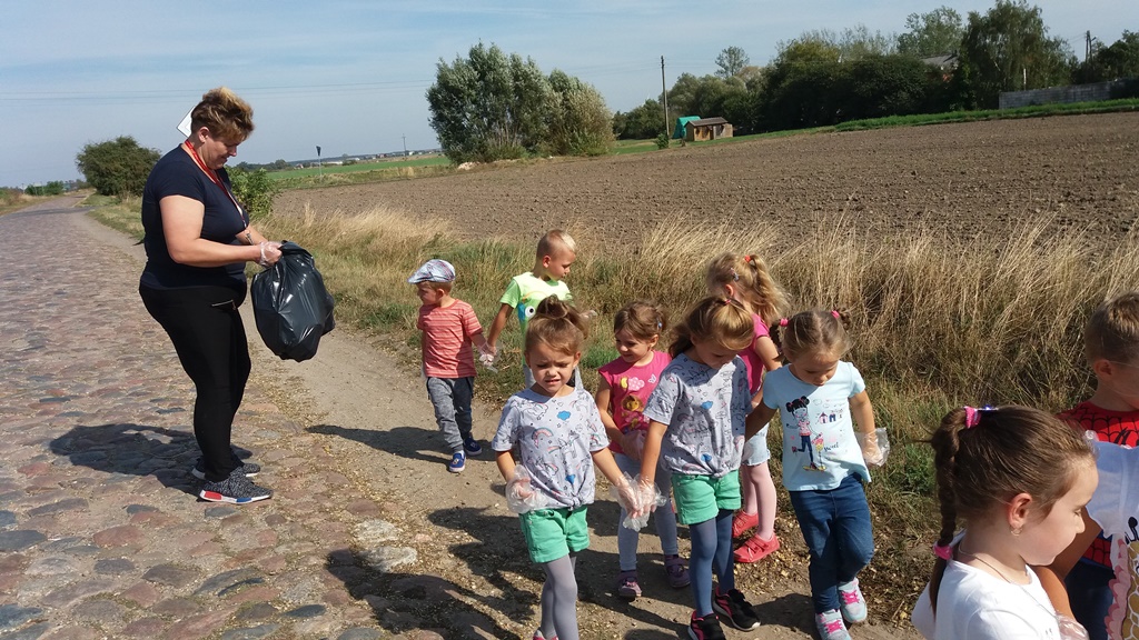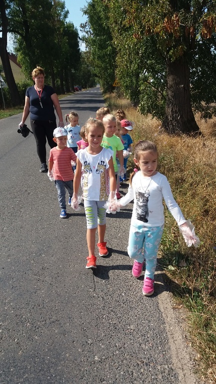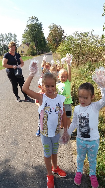 Dzieci były pełne entuzjazmu, prześcigały się w odszukiwaniu odpadów. „Uzbrojone” w rękawice ochronne i worki na odpady przemierzały znajome ulice. Mimo, że mieszkańcy generalnie dbają o swoje posesje, śmieci niestety nie brakuje. Wyrzucają je przypadkowi przechodnie i przejezdni. Po akcji przedszkolaki zapytane, jakich odpadów było najwięcej, odpowiedziały, że puszek i butelek. Poprzez udział w akcji rozwijamy w dzieciach potrzebę dbania o przyrodę po to, aby mogły korzystać z jej uroków.