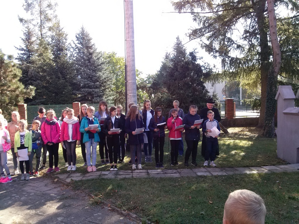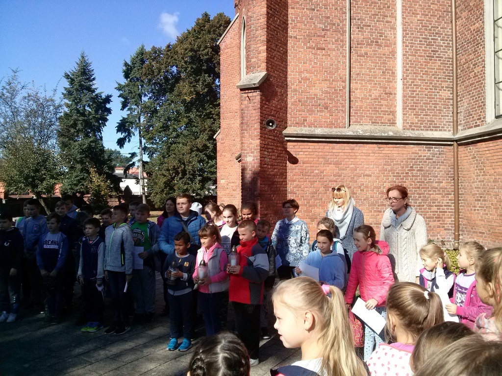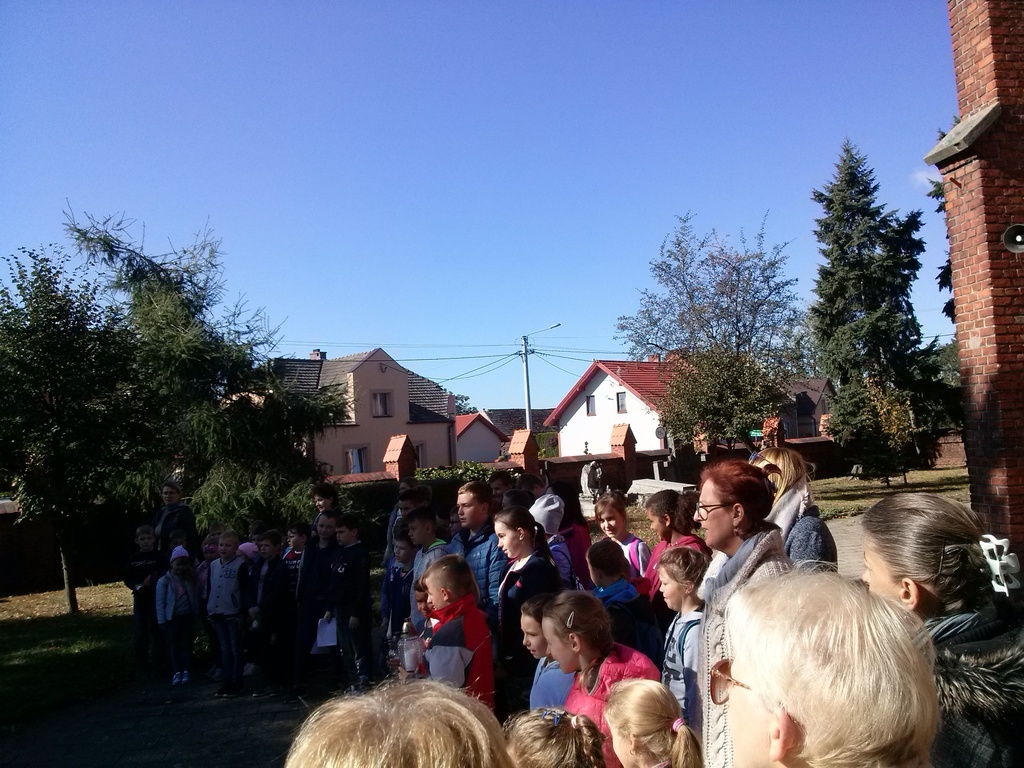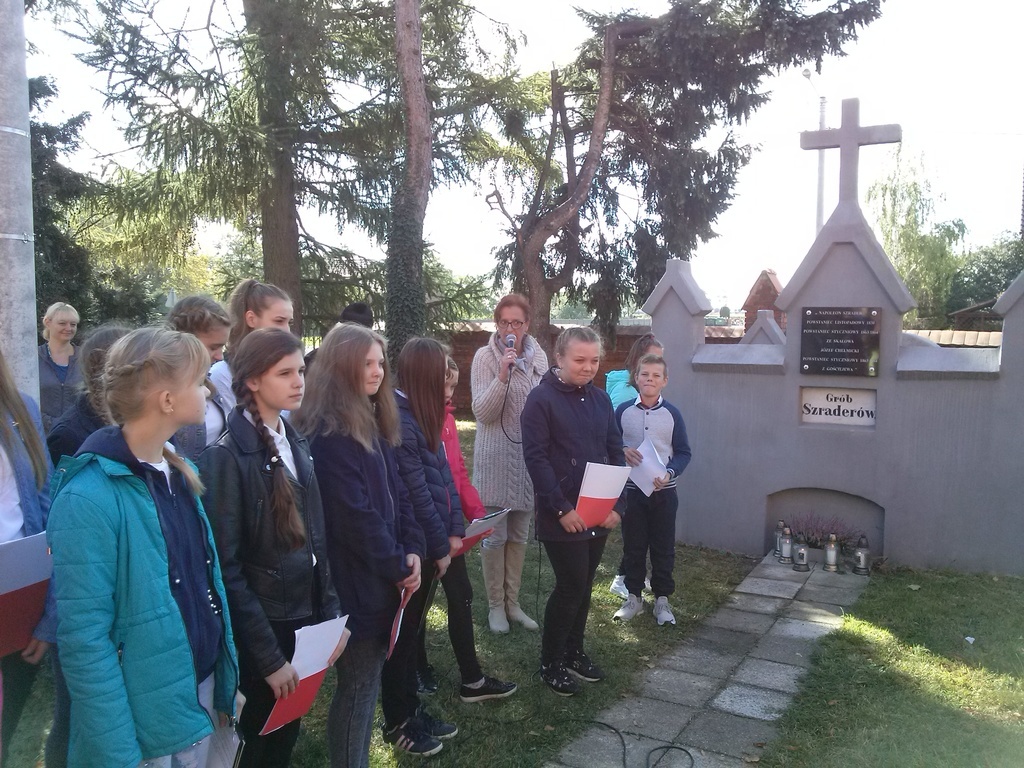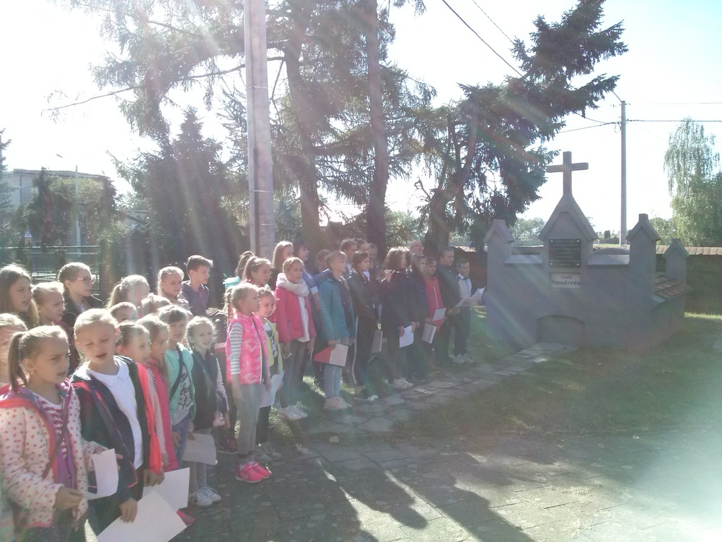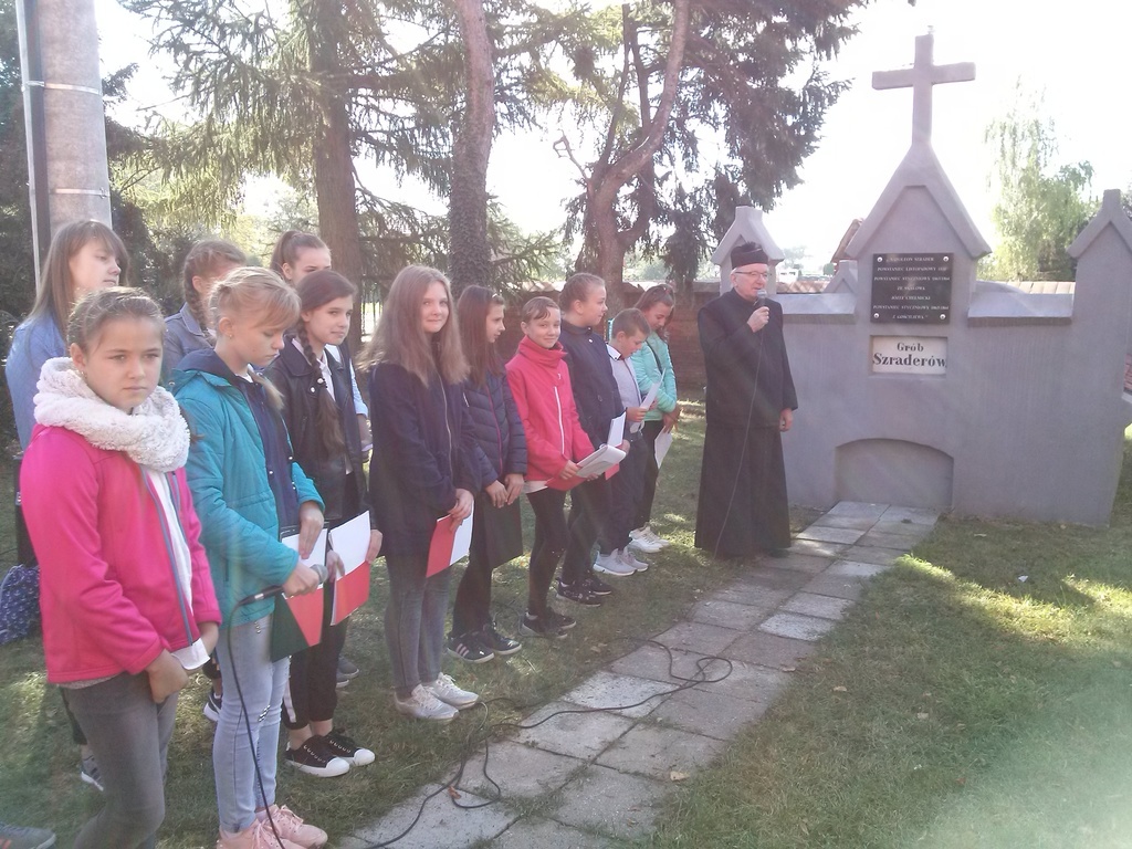 Niemal setka dzieci stawiła się na boisku szkolnym, skąd pod opieką nauczycieli wszyscy udali się na cmentarz koło Kościoła. Tam odbył się uroczysty apel ku czci bohaterów Powstania Styczniowego: Napoleona Szradera i Józefa Chełmickiego przygotowany przez panią Hannę Poniatowską. Całość dopełniły pieśni wykonane przez wszystkich uczestników rajdu.