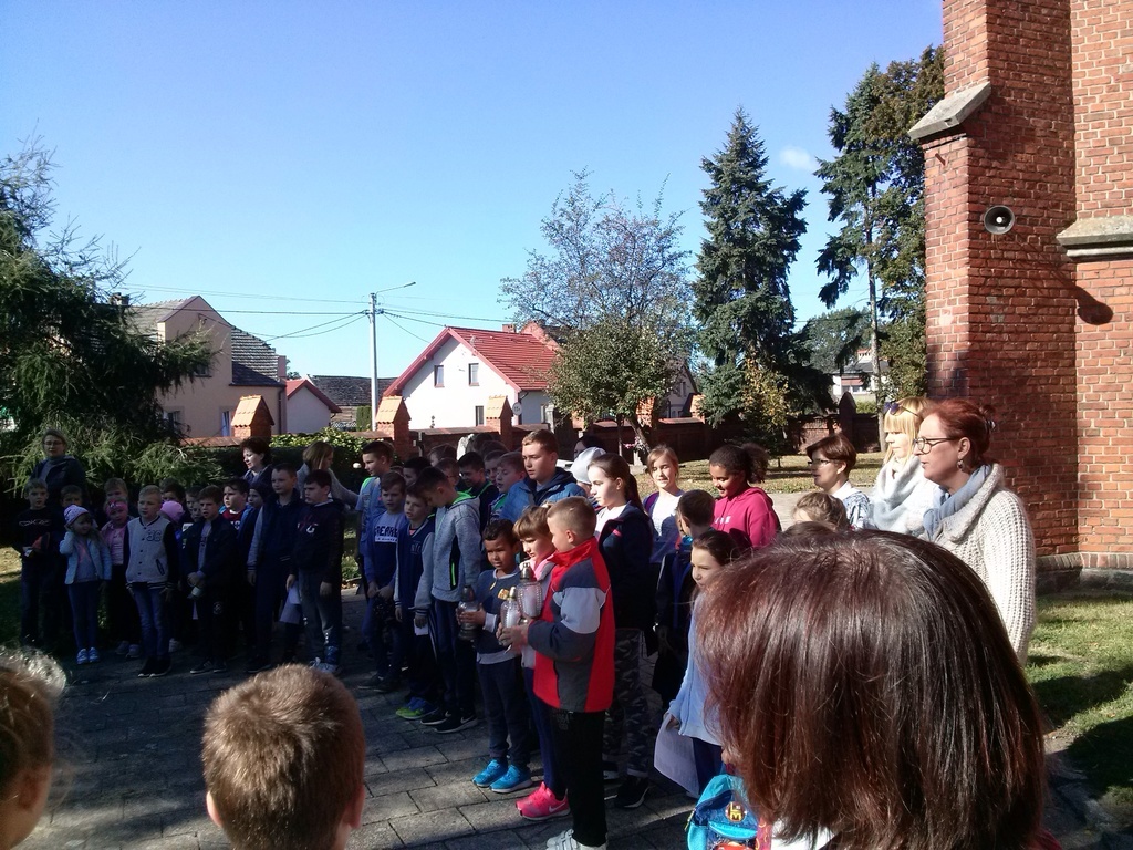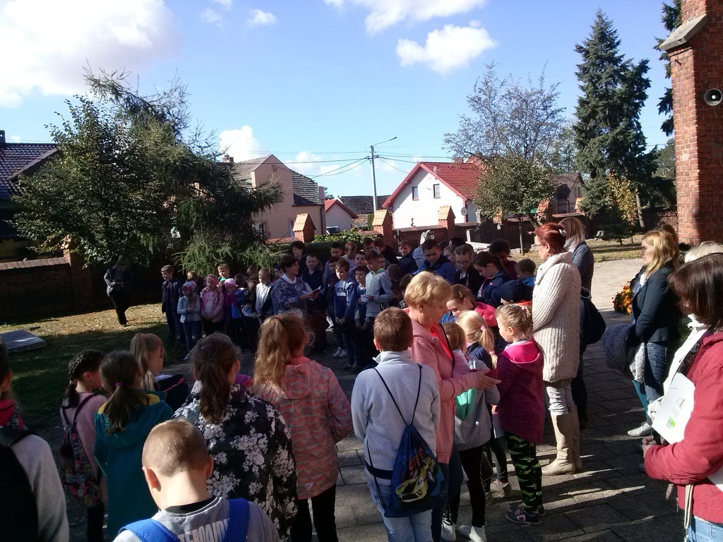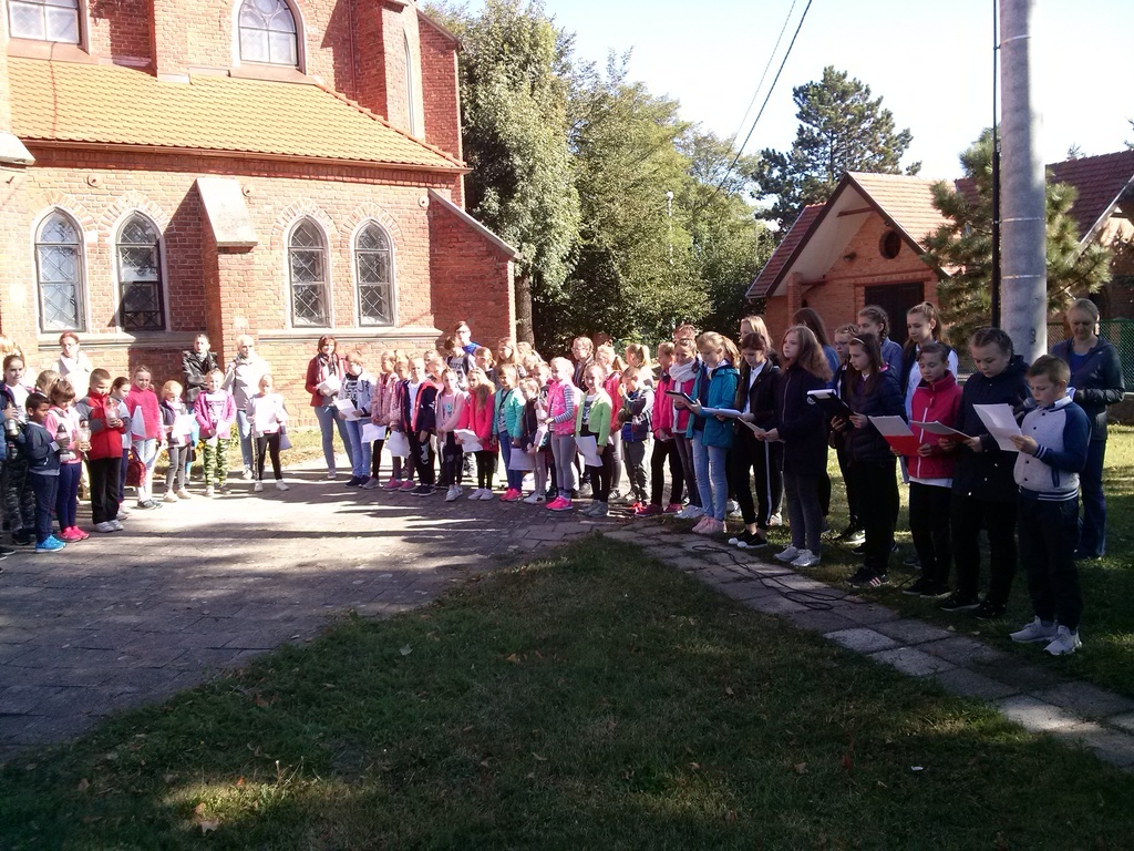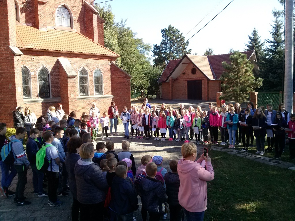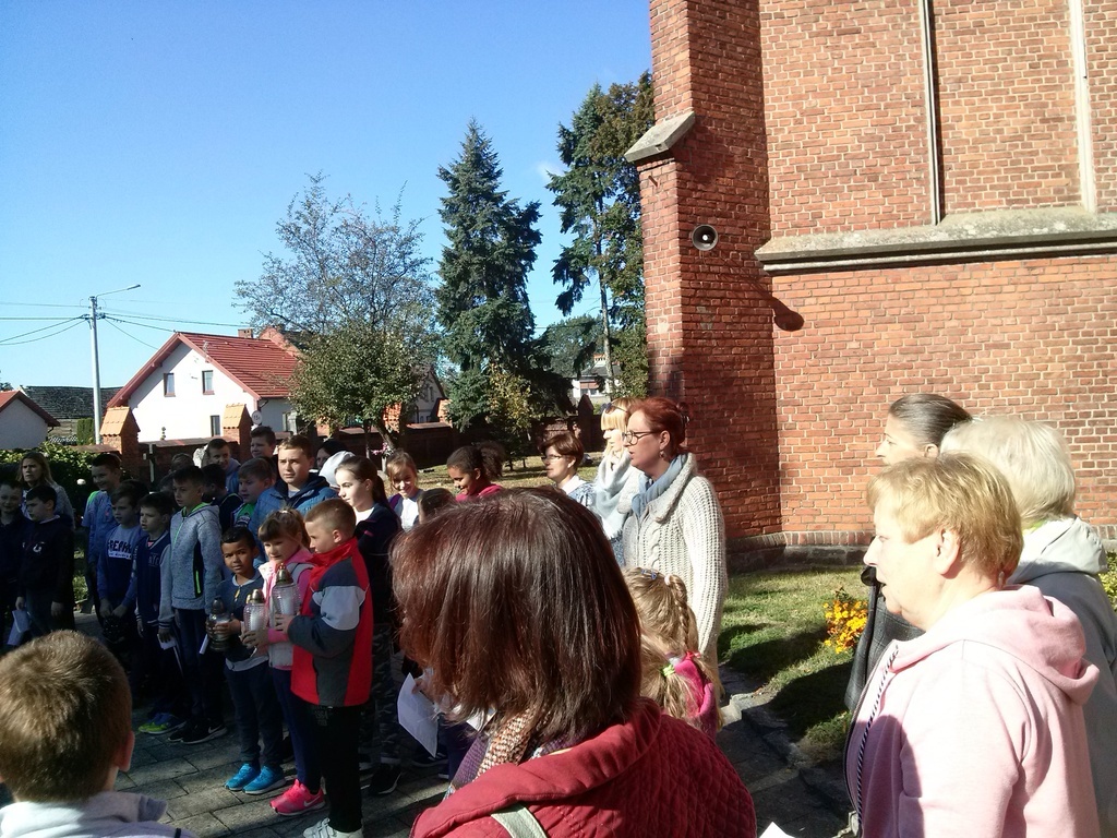 Niemal setka dzieci stawiła się na boisku szkolnym, skąd pod opieką nauczycieli wszyscy udali się na cmentarz koło Kościoła. Tam odbył się uroczysty apel ku czci bohaterów Powstania Styczniowego: Napoleona Szradera i Józefa Chełmickiego przygotowany przez panią Hannę Poniatowską. Całość dopełniły pieśni wykonane przez wszystkich uczestników rajdu.