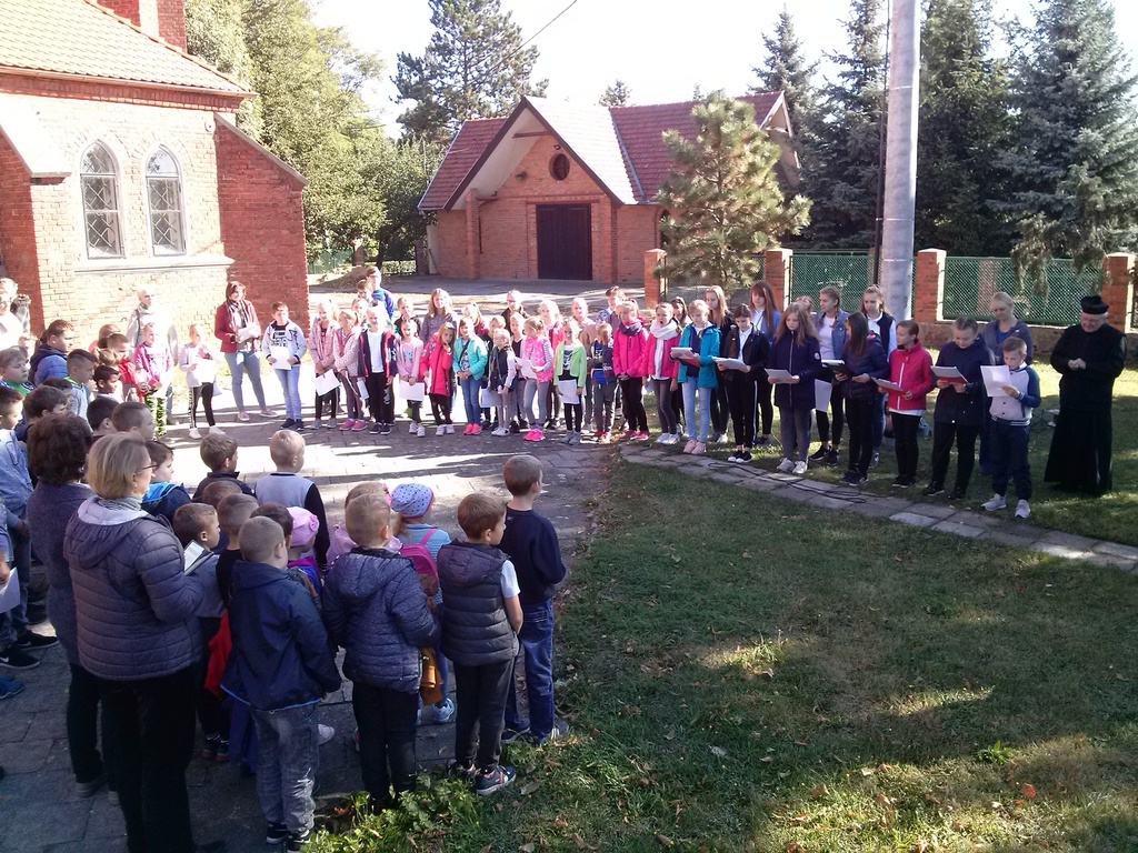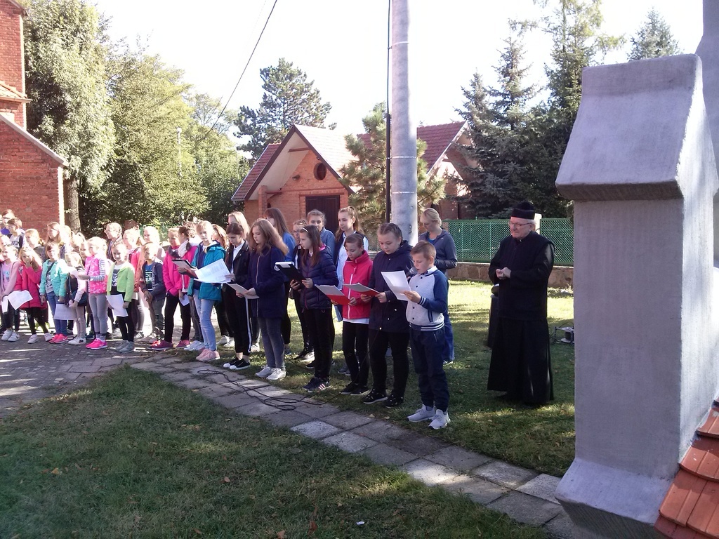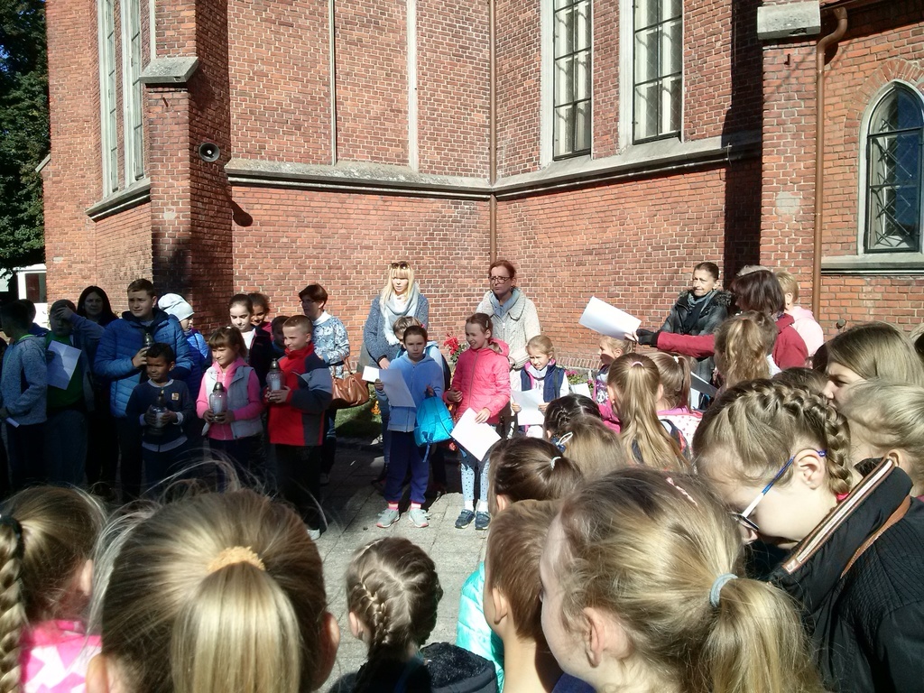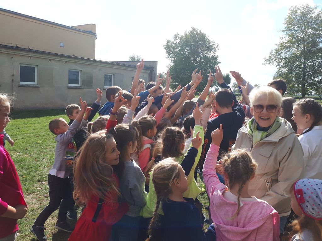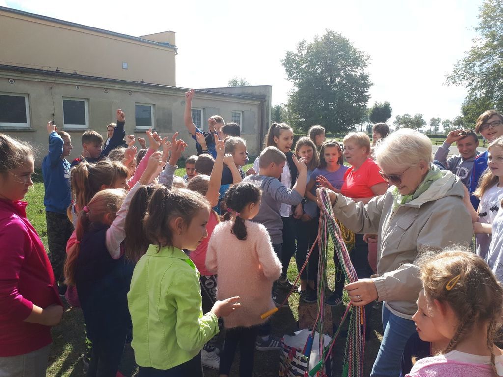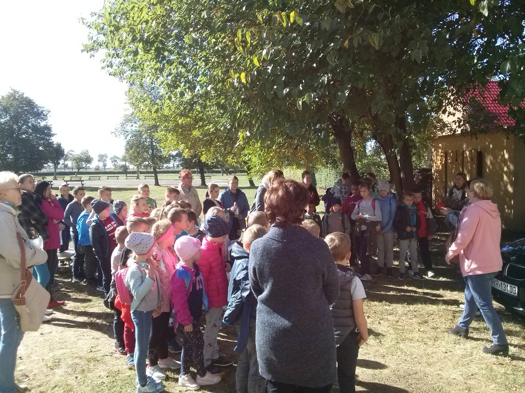 Niemal setka dzieci stawiła się na boisku szkolnym, skąd pod opieką nauczycieli wszyscy udali się na cmentarz koło Kościoła. Tam odbył się uroczysty apel ku czci bohaterów Powstania Styczniowego: Napoleona Szradera i Józefa Chełmickiego przygotowany przez panią Hannę Poniatowską. Całość dopełniły pieśni wykonane przez wszystkich uczestników rajdu.