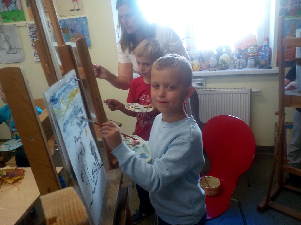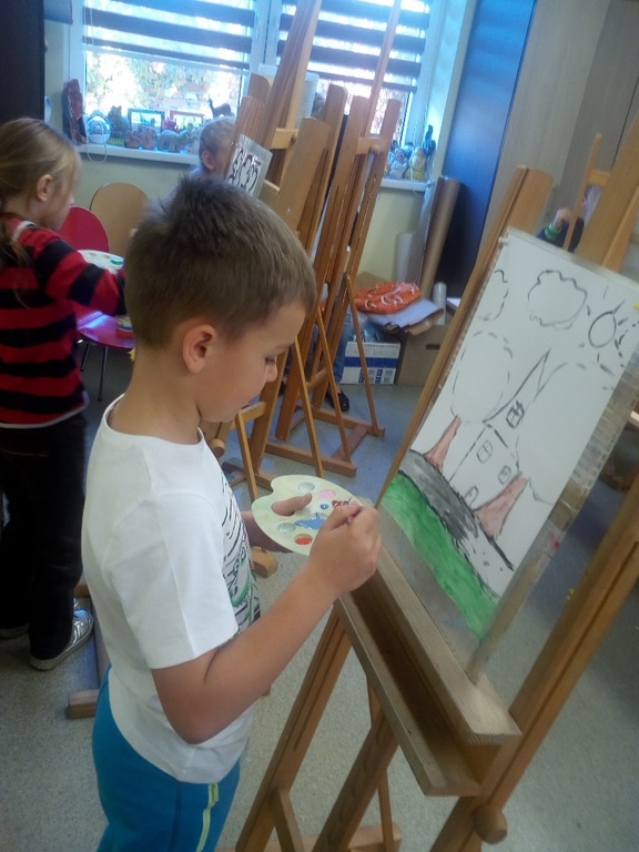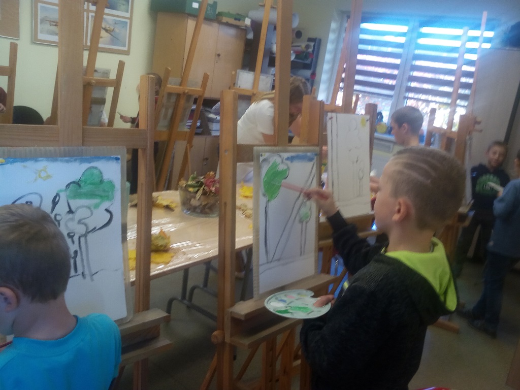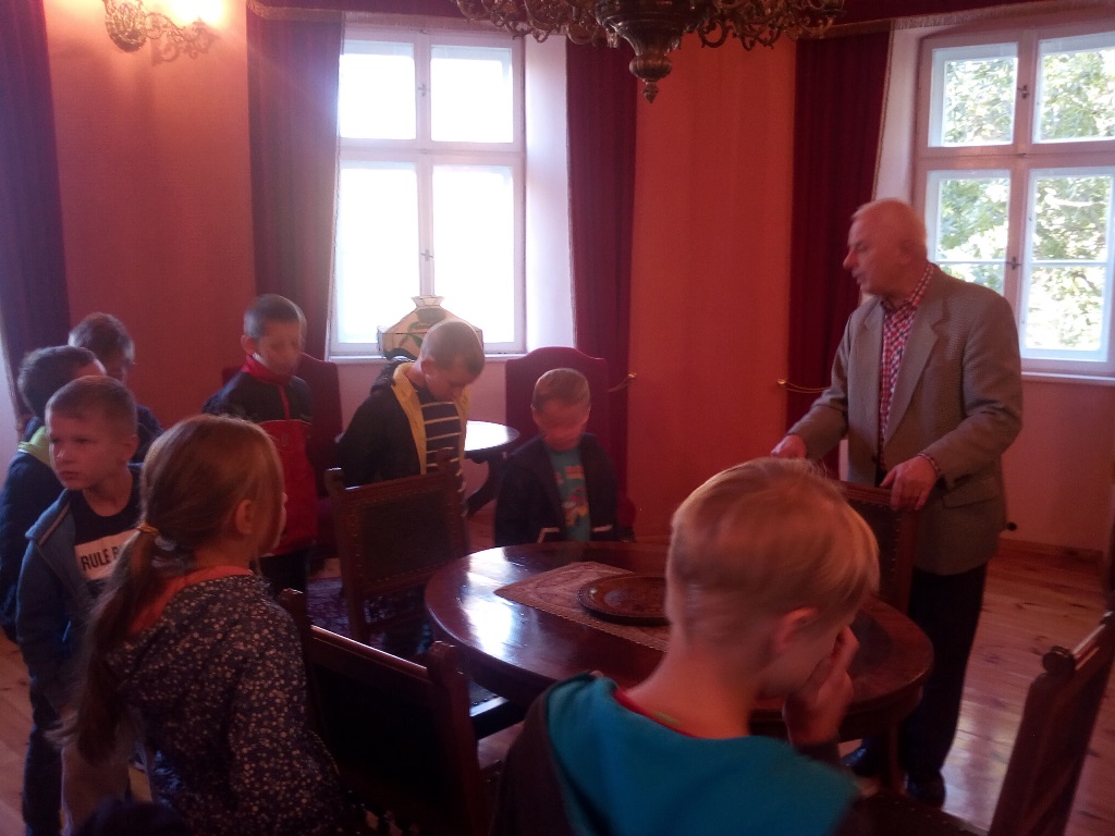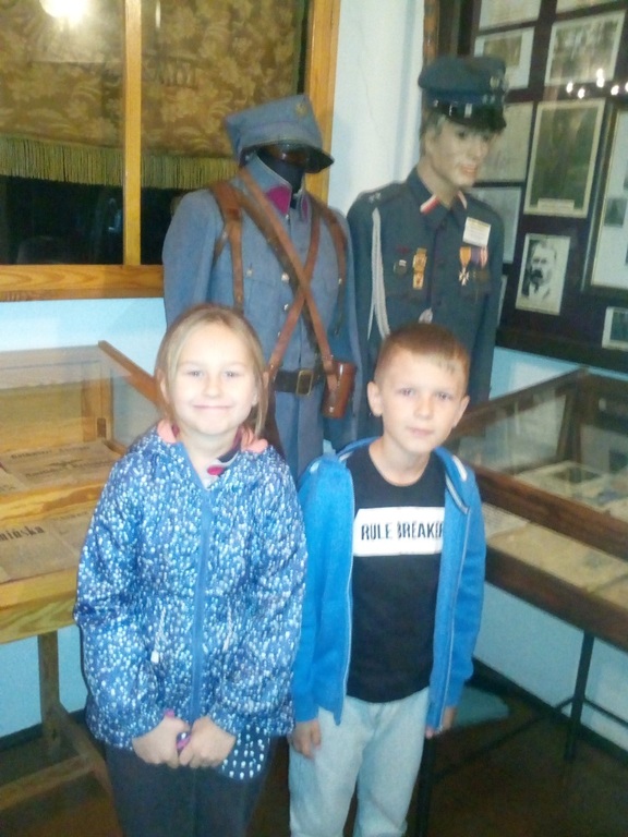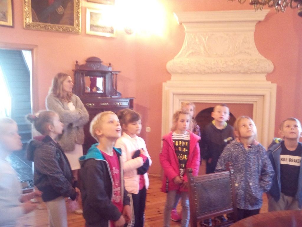 10 października 2018r. klasa II wraz z wychowawczynią i Panią Dyrektor wzięła udział w lekcji muzealnej prowadzonej przez dr Michała Pietrowskiego. Zwiedzając poszczególne pomieszczenia muzealne oglądaliśmy zgromadzone eksponaty i słuchaliśmy opowieści pana kustosza. Niezwykłą atrakcją muzeum stała się rekonstrukcja lochu, w którym poniósł karę słynny Maćko Borkowic. Następnie udaliśmy się do pięknego koźmińskiego parku, aby zbierać liście na zajęcia plastyczne, które odbyły się w Miejsko Gminnym Ośrodku Kultury. Tematem zajęć był "Park jesienią". Największą atrakcją było malowanie przy sztalugach, gdzie dzieci poczuły się jak prawdziwi artyści. Czas spędzony na twórczych działaniach przyniósł wszystkim wiele radości. Pełni wrażeń wróciliśmy do szkoły.