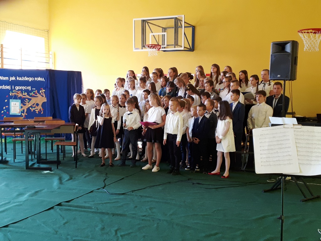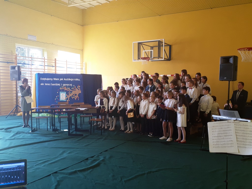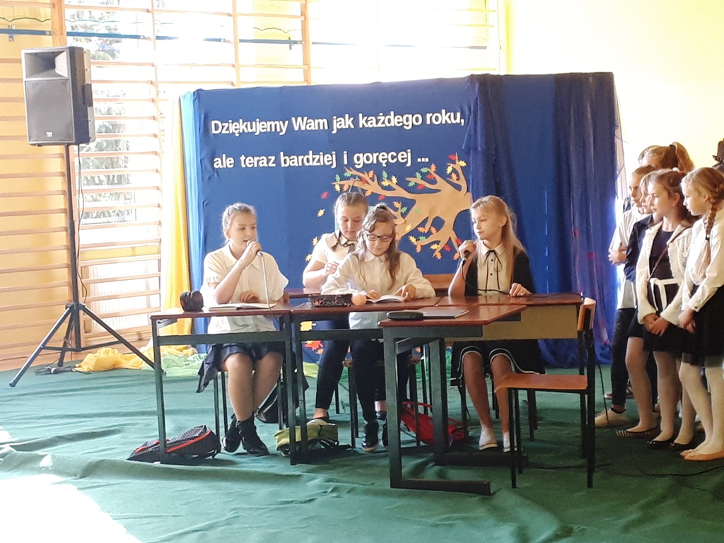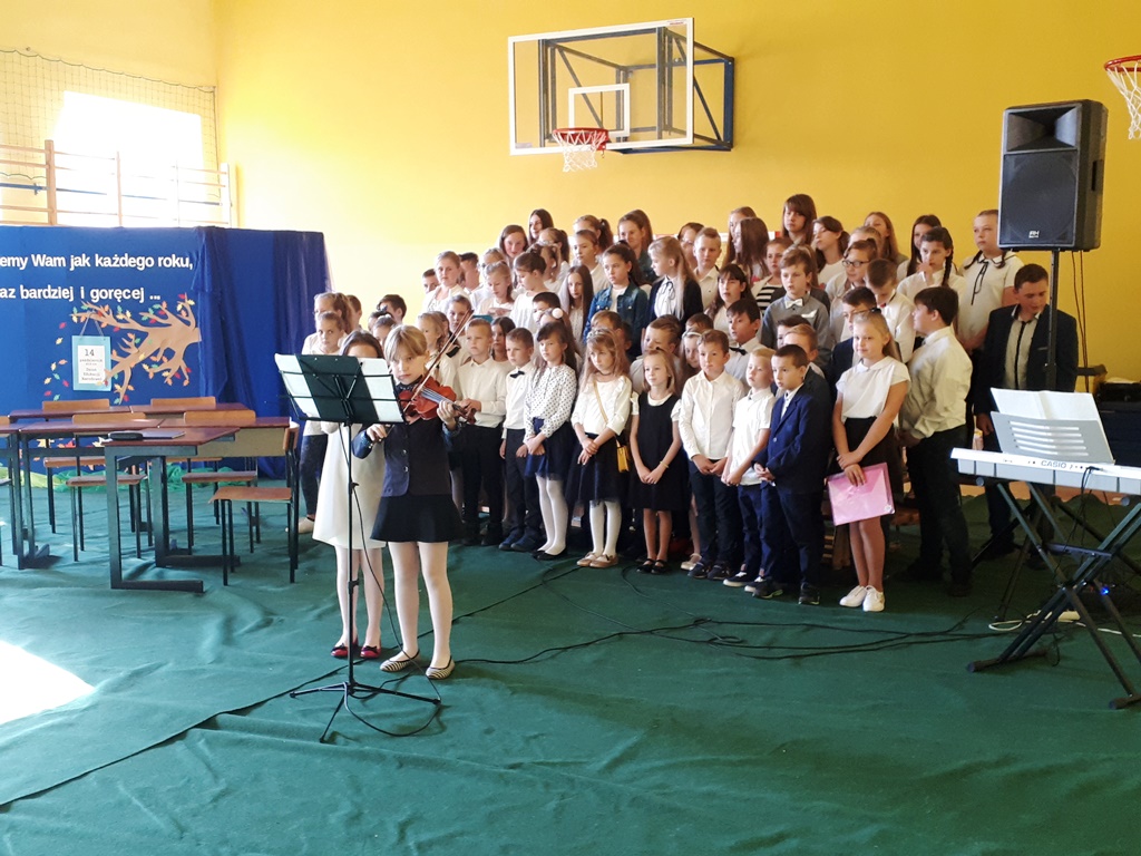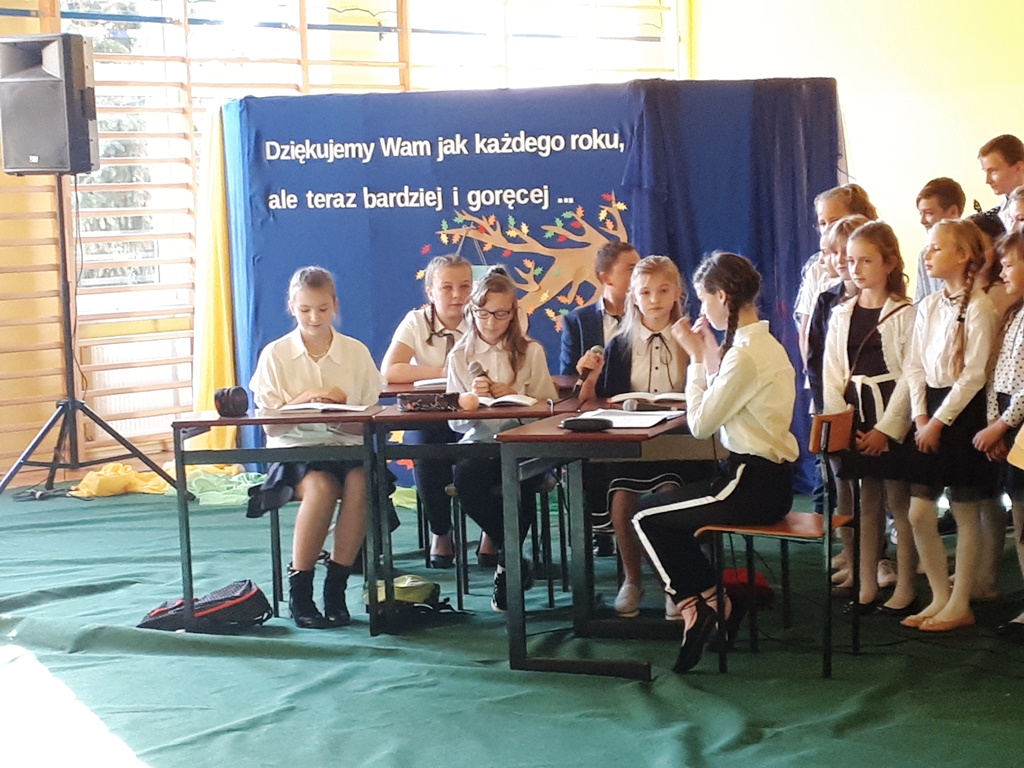 12 października 2018 r. obchodziliśmy Dzień Edukacji Narodowej. Uczniowie w tym dniu w sposób szczególny dziękowali nauczycielom za trud włożony w kształtowanie serc i umysłów młodych ludzi. Podczas uroczystej akademii dzieci wyrecytowały piękne wiersze oraz w humorystyczny sposób przedstawiły scenkę z trudnej pracy nauczyciela. Całość akademii dopełnił chór szkolny, który wyśpiewał wiele pięknych piosenek.