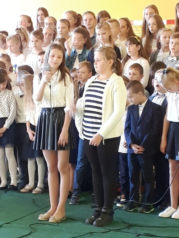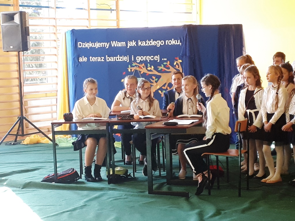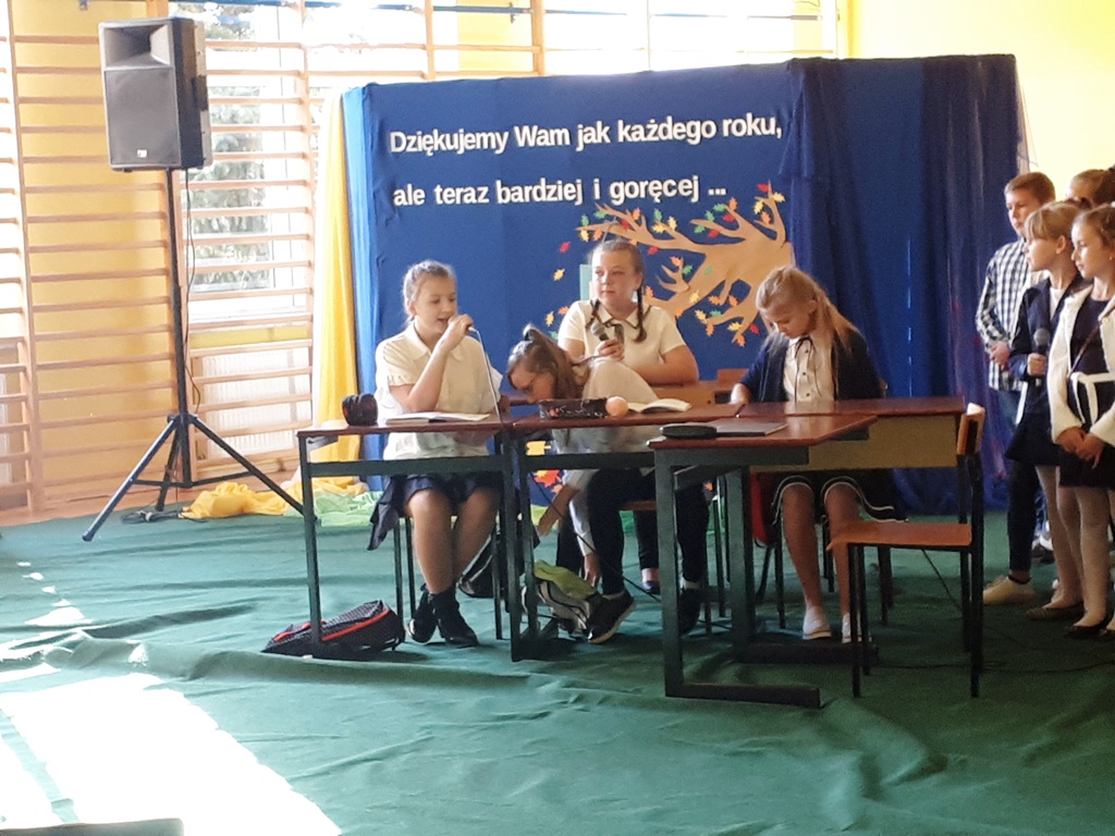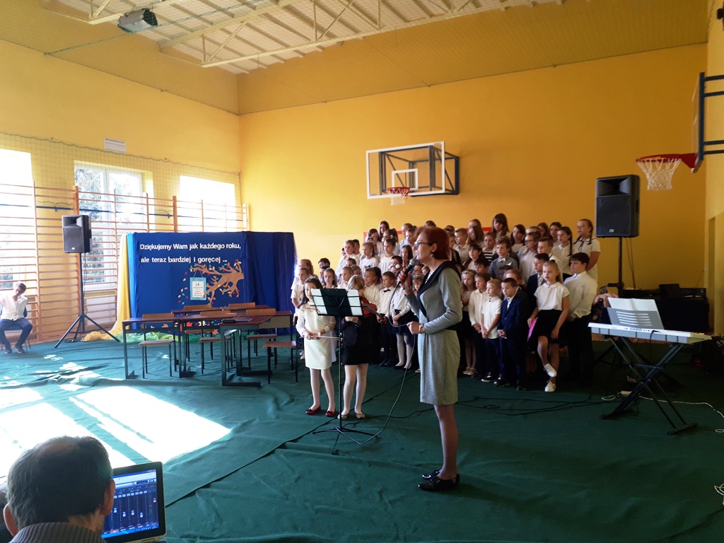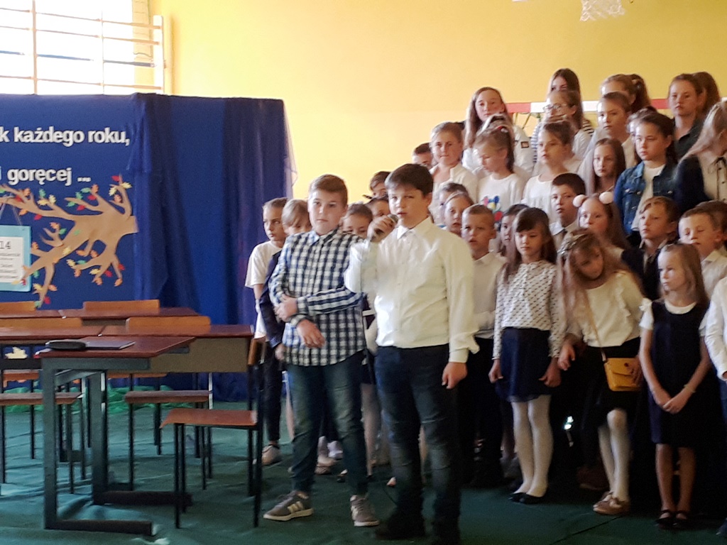 12 października 2018 r. obchodziliśmy Dzień Edukacji Narodowej. Uczniowie w tym dniu w sposób szczególny dziękowali nauczycielom za trud włożony w kształtowanie serc i umysłów młodych ludzi. Podczas uroczystej akademii dzieci wyrecytowały piękne wiersze oraz w humorystyczny sposób przedstawiły scenkę z trudnej pracy nauczyciela. Całość akademii dopełnił chór szkolny, który wyśpiewał wiele pięknych piosenek.