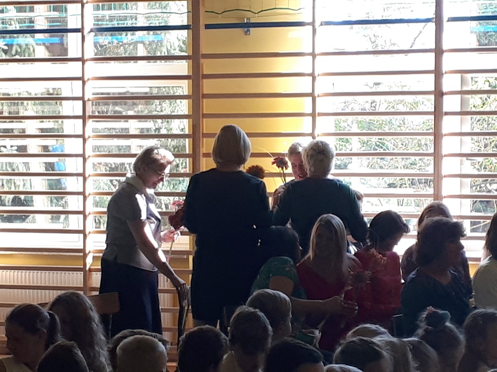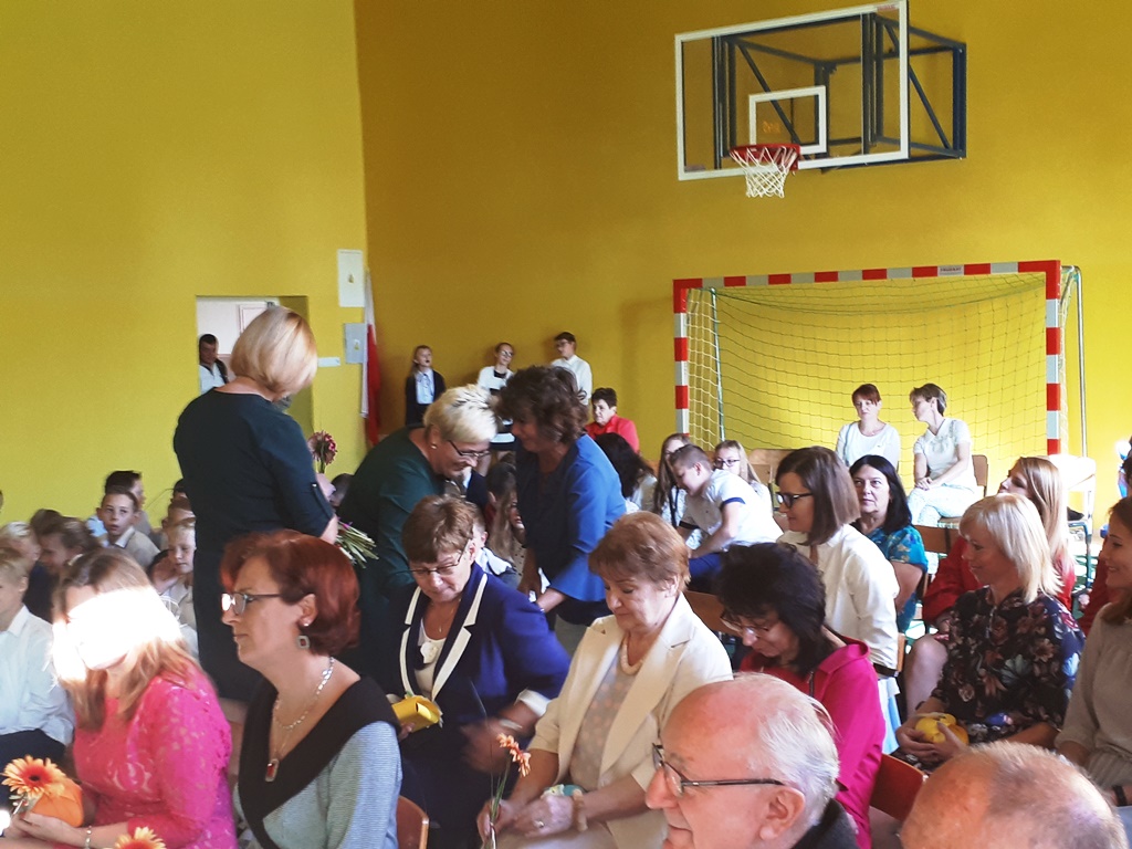 Zaproszeni goście, zwłaszcza emerytowani nauczyciele i pracownicy obsługi nie kryli wzruszenia. Na koniec uczniowie podarowali wszystkim nauczycielom i pracownikom obsługi słodki upominek.
