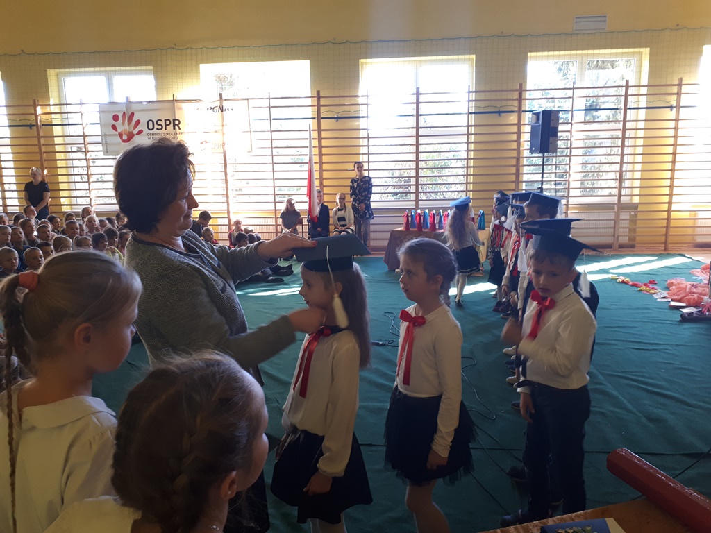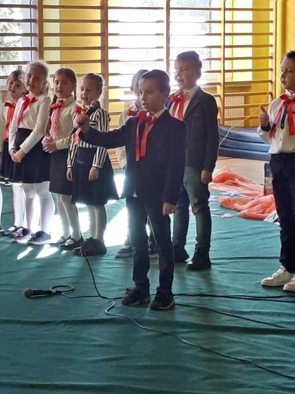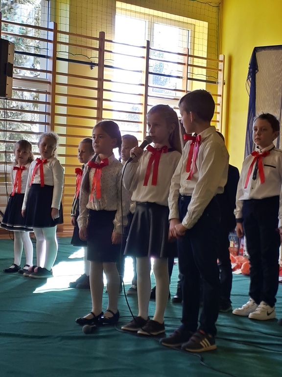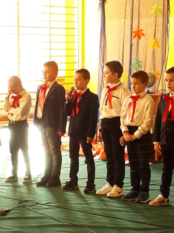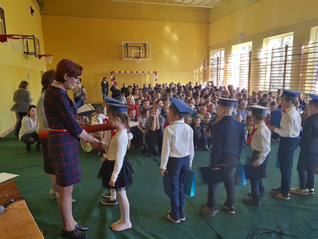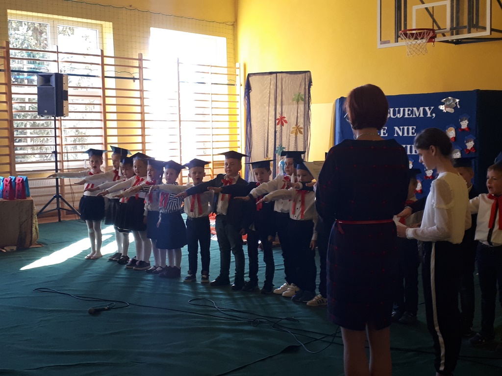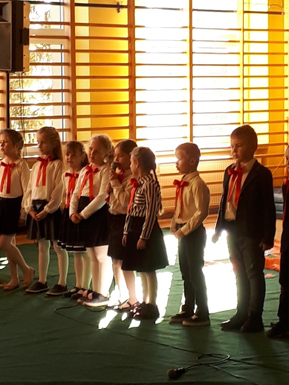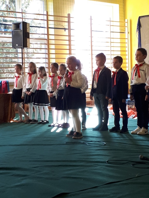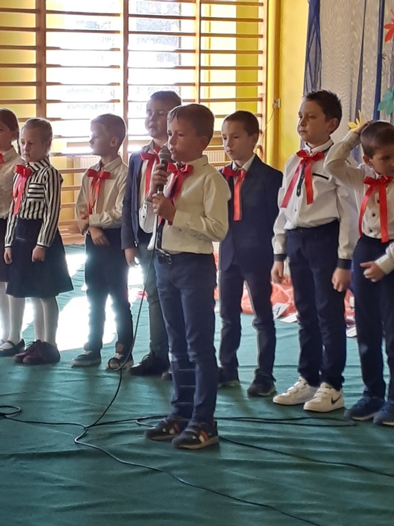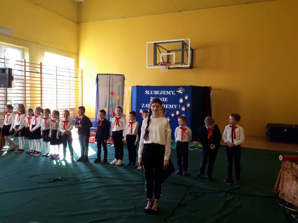 Głównymi bohaterami dnia byli oni – pierwszaki, które poznały już uroki szkolnego życia, a teraz odpowiedzialnie ślubowali, że nie zawiodą. Choć upłynęło dopiero kilka tygodni, jak zasiedli w szkolnych ławach, już dowiedli, że są gotowi sprostać najtrudniejszym zadaniom. Pięknie recytowali wiersze, śpiewali piosenki, tańczyli; po mistrzowsku prezentowali posiadaną wiedzę ze wszystkich edukacji. Dokonali też autoprezentacji mówiąc otwarcie o sobie, swych atutach i minusach. Wspierani obecnością bliskich pokazali wachlarz swych możliwości, aż w oczach niejednego rodzica zakręciła się łza wzruszenia.