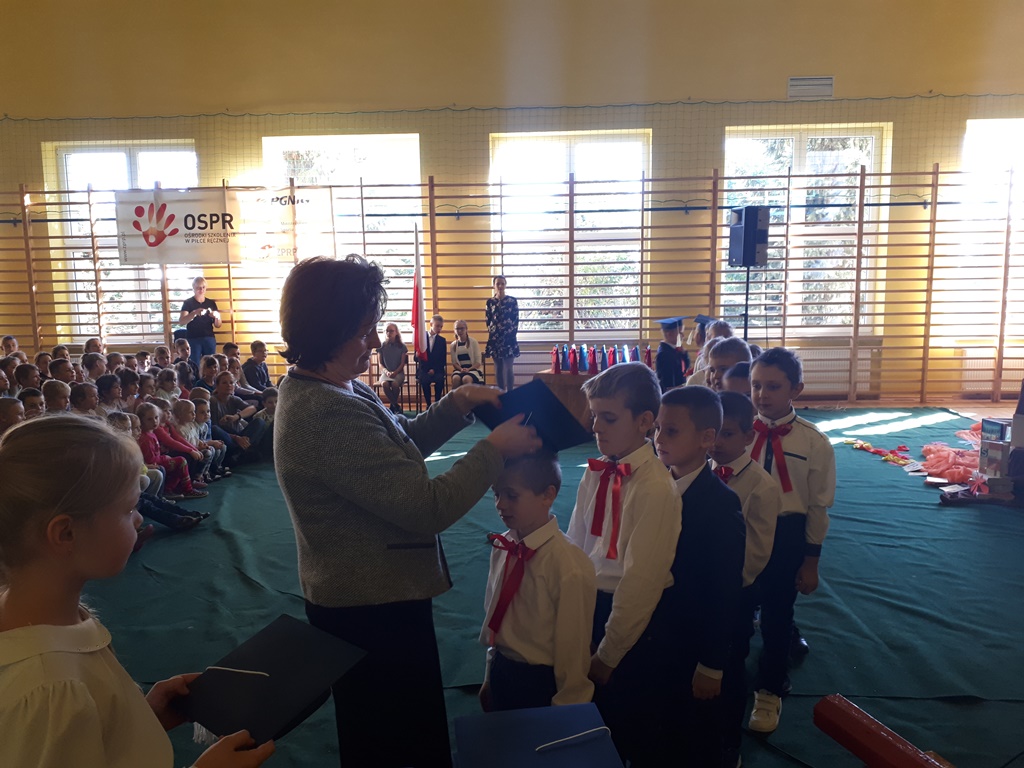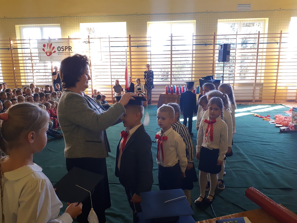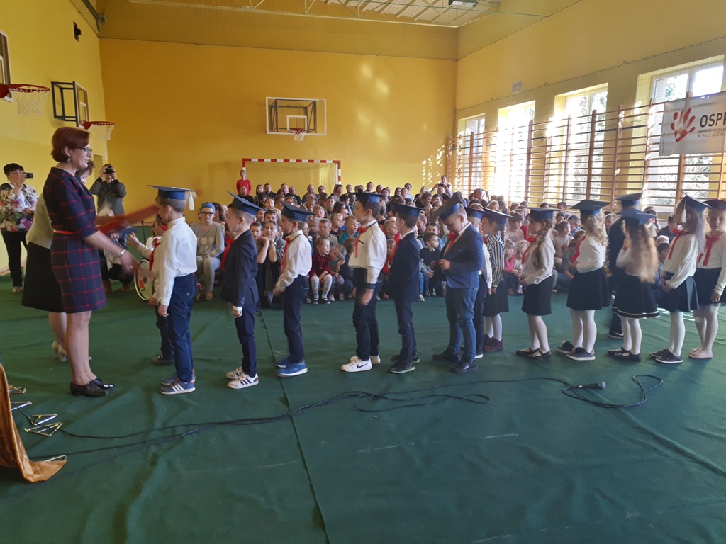 Dnia 24.10.2018r. to ważny dzień w kalendarzu imprez szkolnych. W tym bowiem dniu w szeregi szkolnej braci wstąpiło 17 pierwszoklasistów stając się pełnoprawnymi uczniami Szkoły Podstawowej w Mokronosie. Uroczystość licznie zgromadziła rodziców i bliskich, reprezentantów Rady Rodziców, Dyrekcję, Grono Pedagogiczne oraz całą społeczność szkolną.