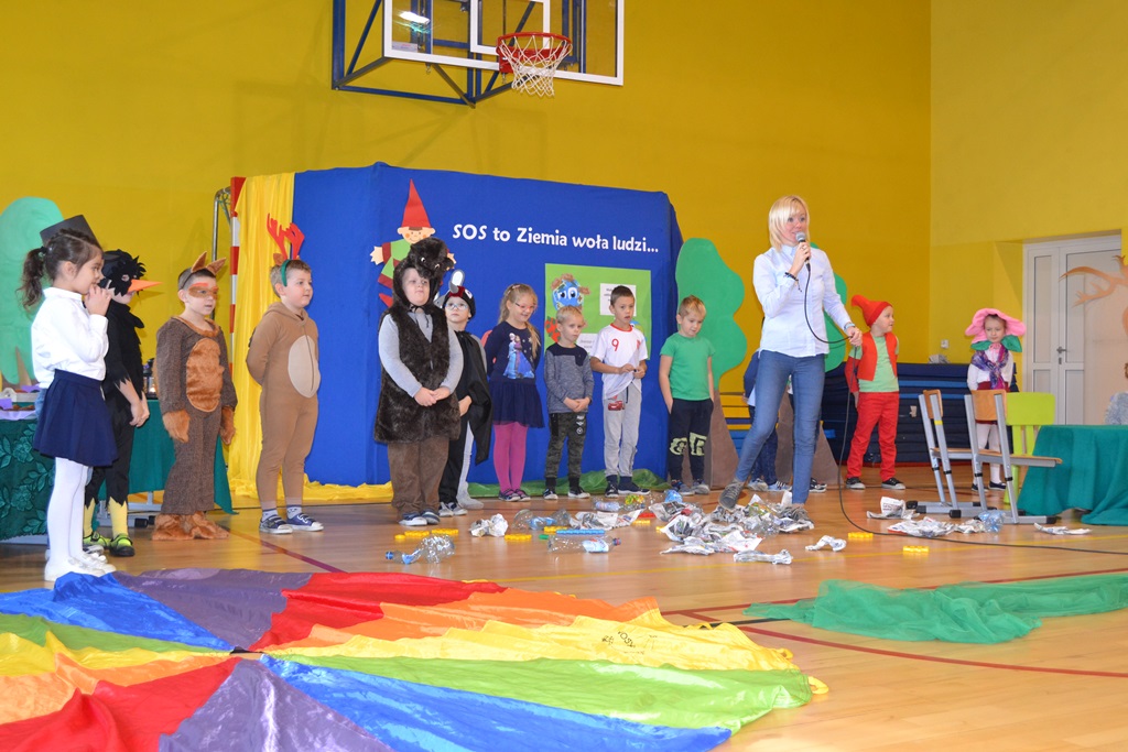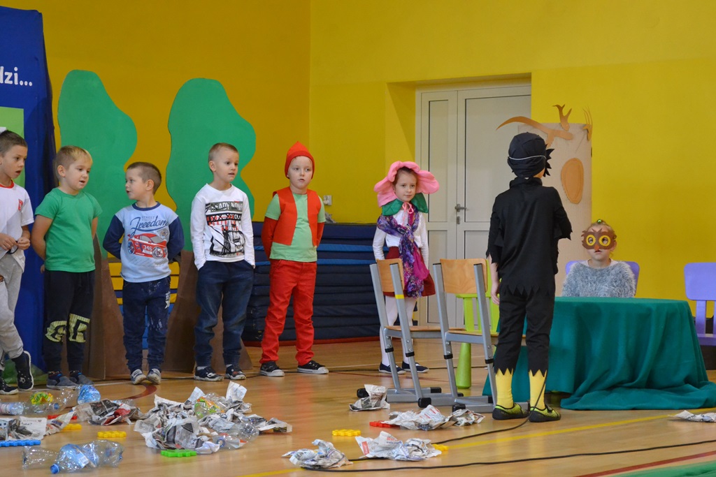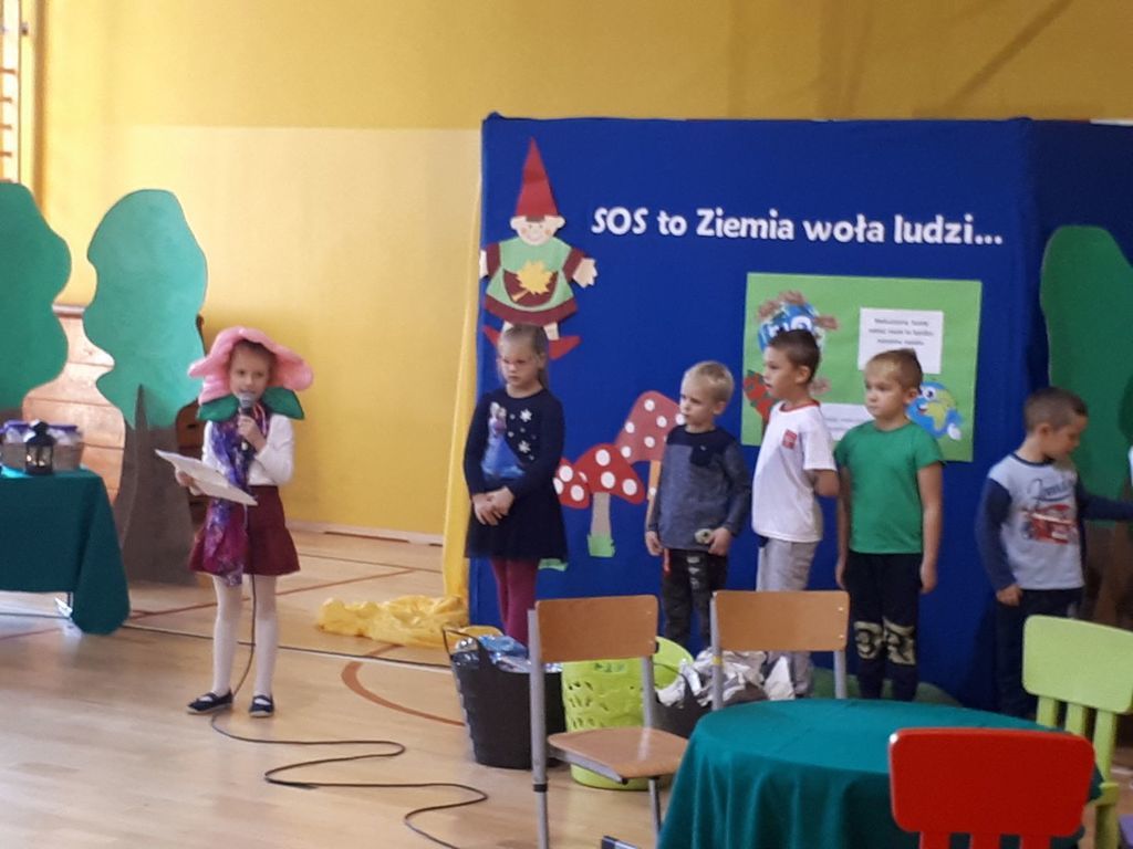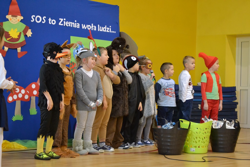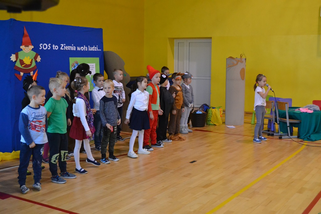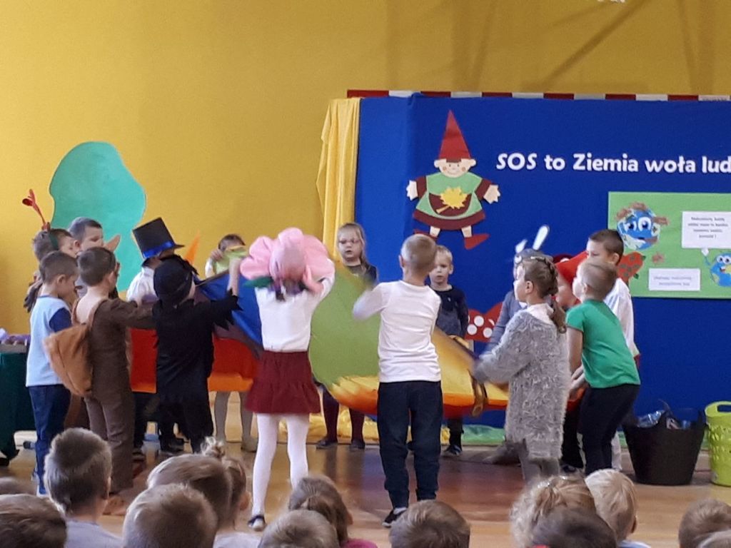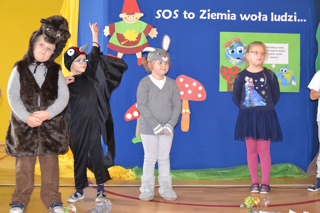 20 listopada w murach naszej szkoły odbyło się przedstawienie ekologiczne pt. "Leśna opowieść" w wykonaniu dzieci sześcioletnich mające na celu uwrażliwienie najmłodszych na przestrzeganie zasad proekologicznych. Sześciolatki wraz z wychowawczynią przygotowały ciekawe przedstawienie. Przedszkolaki były przebrane w różnorodne stroje, wczuły się w swoje role co spowodowało, że występ był bardzo udany. Uwagę zwracała dekoracja, która pomogła wprowadzić widza w cały zamysł widowiska. Jednak najważniejszy w przedstawieniu był jego przekaz. Miał on uwrażliwić dzieci i dorosłych na szkody spowodowane zanieczyszczeniem naszej planety. Jest to bardzo ważny temat, który powinien być rozpowszechniany i każdemu bardzo dobrze znany. Podczas przedstawienia przedszkolaki pokazały jakie negatywne skutki powoduje niewłaściwe zachowanie związane z zaśmiecaniem naszego środowiska oraz jak powinno być i co powinniśmy robić aby im zapobiec. Między innymi pojawiła się lekcja segregacji śmieci, ukazanie jaki wpływ ma na nasze zdrowie zanieczyszczone środowisko oraz jakie negatywne skutki ma dla naszej planety.
