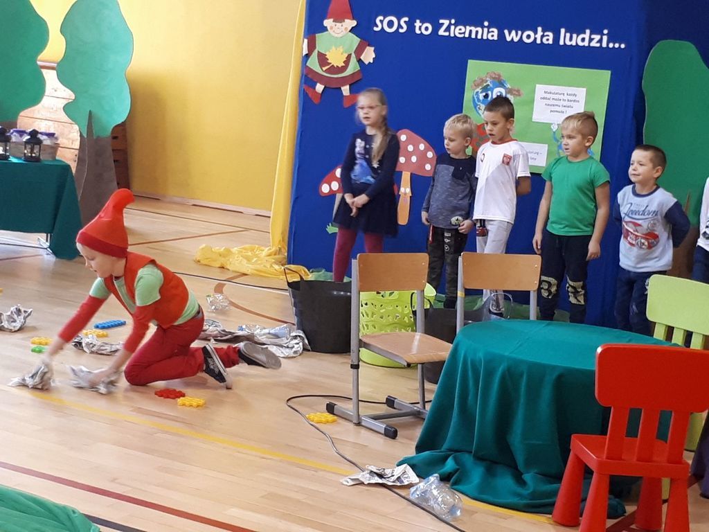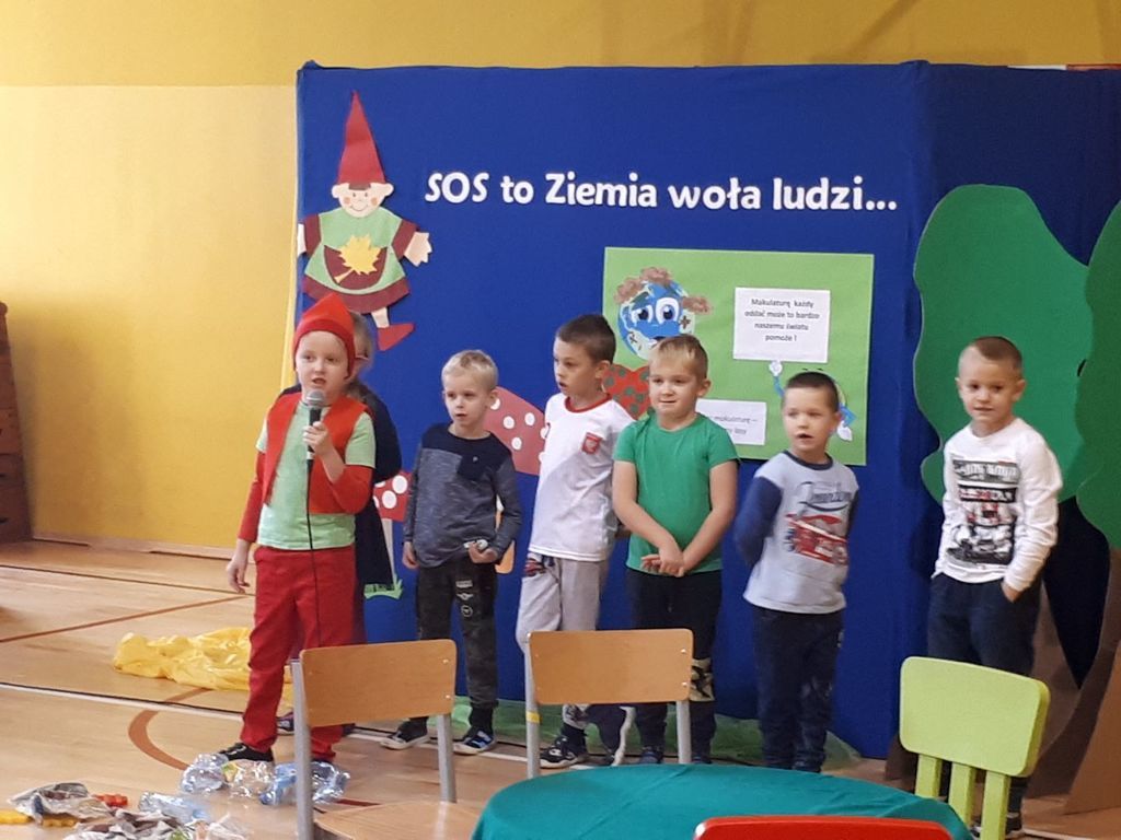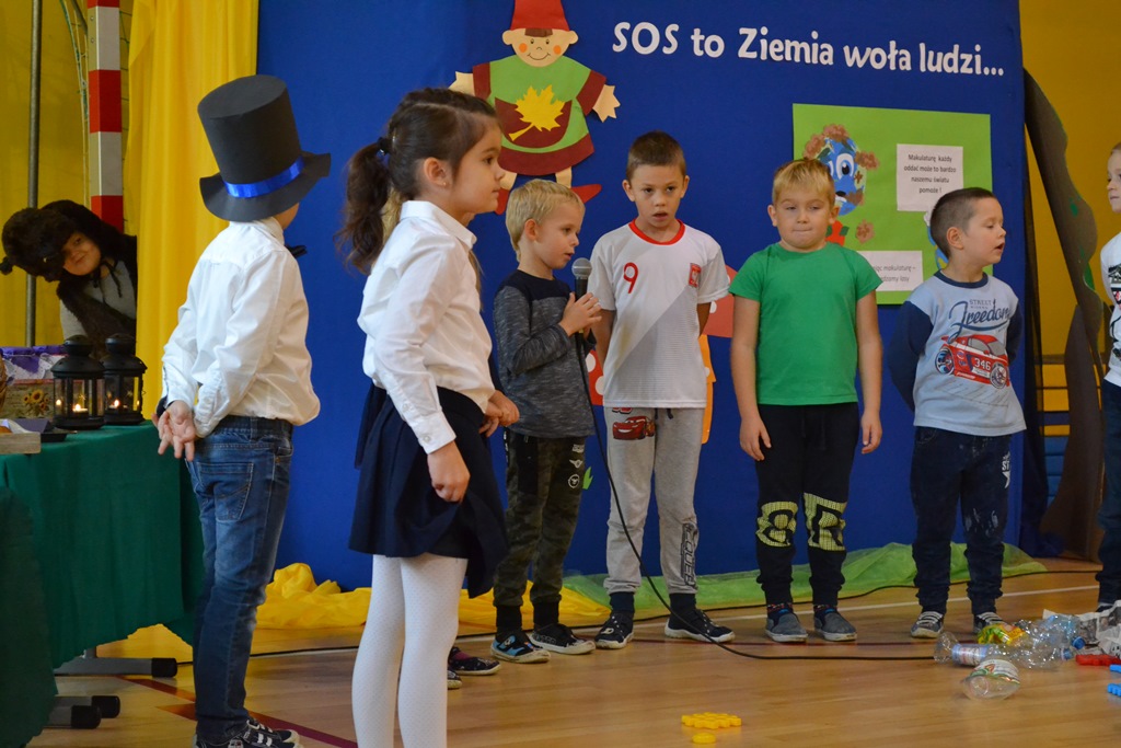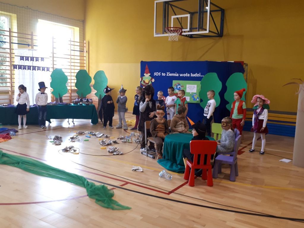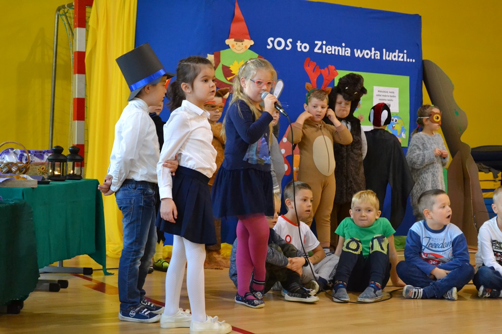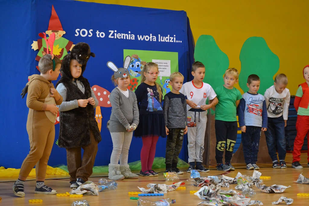 20 listopada w murach naszej szkoły odbyło się przedstawienie ekologiczne pt. "Leśna opowieść" w wykonaniu dzieci sześcioletnich mające na celu uwrażliwienie najmłodszych na przestrzeganie zasad proekologicznych. Sześciolatki wraz z wychowawczynią przygotowały ciekawe przedstawienie. Przedszkolaki były przebrane w różnorodne stroje, wczuły się w swoje role co spowodowało, że występ był bardzo udany. Uwagę zwracała dekoracja, która pomogła wprowadzić widza w cały zamysł widowiska. Jednak najważniejszy w przedstawieniu był jego przekaz. Miał on uwrażliwić dzieci i dorosłych na szkody spowodowane zanieczyszczeniem naszej planety. Jest to bardzo ważny temat, który powinien być rozpowszechniany i każdemu bardzo dobrze znany. Podczas przedstawienia przedszkolaki pokazały jakie negatywne skutki powoduje niewłaściwe zachowanie związane z zaśmiecaniem naszego środowiska oraz jak powinno być i co powinniśmy robić aby im zapobiec. Między innymi pojawiła się lekcja segregacji śmieci, ukazanie jaki wpływ ma na nasze zdrowie zanieczyszczone środowisko oraz jakie negatywne skutki ma dla naszej planety.