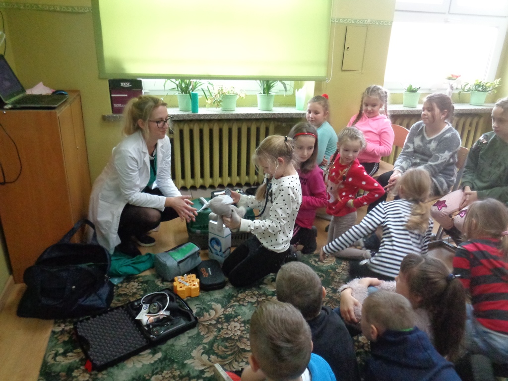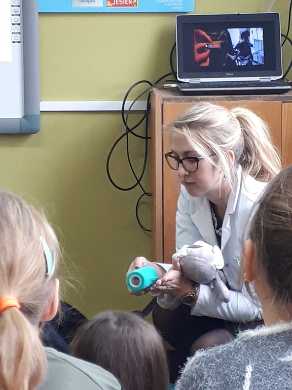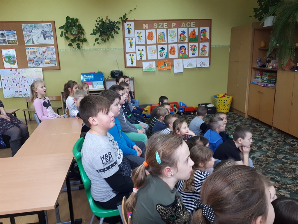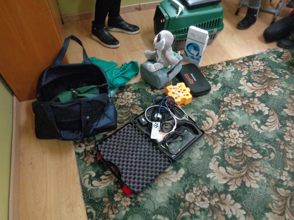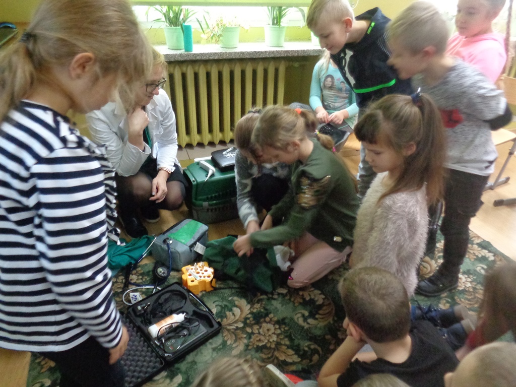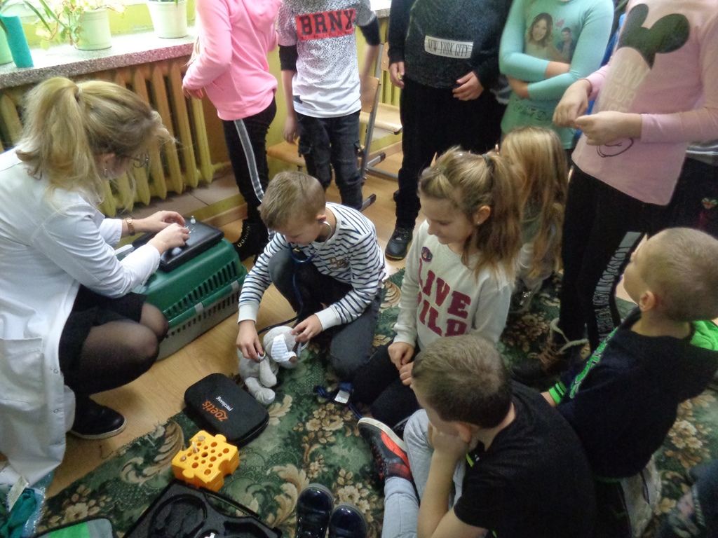 28 listopada 2018r. klasę II i III odwiedziła pani weterynarz Olga Pietrasina. Celem spotkania było poznanie pracy weterynarza i zdobycie wiedzy na temat dbania i pielęgnowania zwierząt domowych, a także kształtowanie postaw humanitarnych w stosunku do zwierząt. Dzieci brały aktywny udział w spotkaniu, szukały odpowiedzi na nurtujące ich wątpliwości dotyczące pielęgnacji zwierząt i chorób, które je dotykają. Dowiedziały się rówznież co zawiera torba lekarska. Mogły obejrzeć wiele narzędzi lekarskich, którymi na co dzień posługuje się weterynarz.