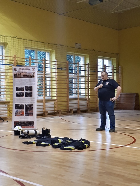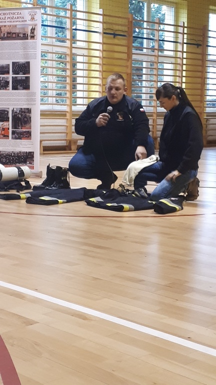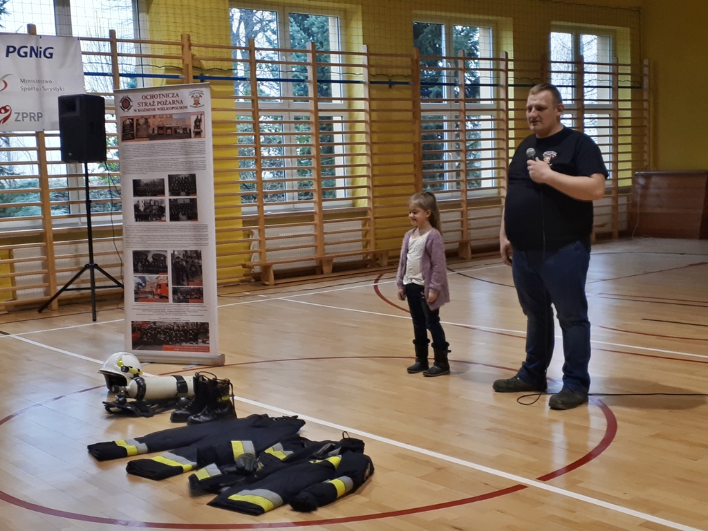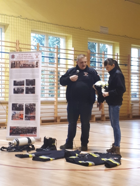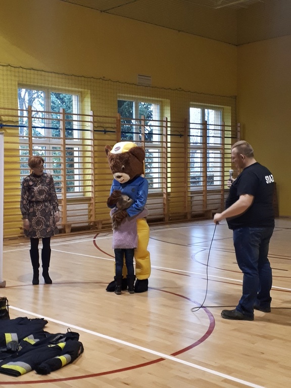 W dniu dzisiejszym 14.12.2018r. odbyło się spotkanie z przedstawicielem nadleśnictwa Jarocin panem M. Tomczakiem oraz przedstawicielami Ochotniczej Straży Pożarnej w Koźminie Wlkp. w ramach projektu „Żyj zdrowo, bezpiecznie i ekologicznie – OSP Koźmin Wlkp. nie tylko gasi i ratuje”. Ogromną niespodzianką było poznanie Maskotki „ Alarm Miś „. Było to pierwsze spotkanie projektantki maskotki Magdaleny Stal – zwyciężczyni konkursu plastycznego na projekt maskotki dla straży pożarnej.