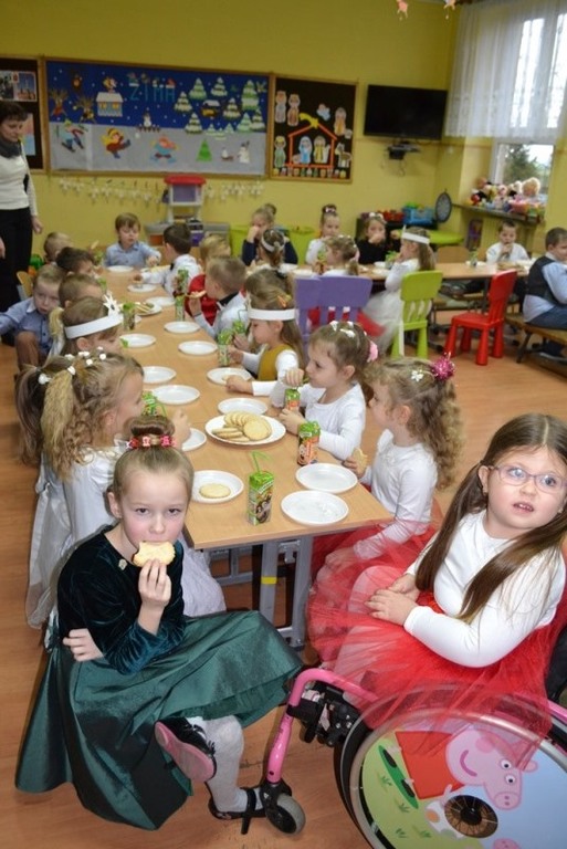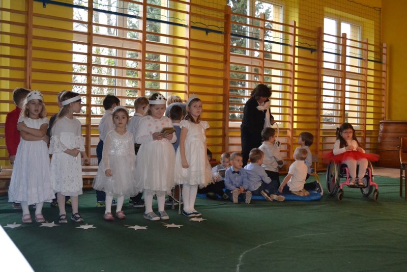 Babcia i Dziadek to słowa , które każdemu kojarzą się z ciepłem i miłością. Dlatego 12 stycznia br. dzieci z oddziałów przedszkolnych w Mokronosie, zaprosiły swoje Babcie i Dziadków na uroczystość z okazji Ich Święta . W przepięknej scenografii oraz miłej atmosferze przedstawiły inscenizację w oparciu o baśń H. Ch. Andersena „ Dziewczynka z zapałkami ‘’.Dumni dziadkowie ze wzruszeniem podziwiali występy wnucząt a dzieci odważnie i bez tremy prezentowały swoje umiejętności. Na zakończenie złożyły szanownym gościom życzenia i zaśpiewały piosenkę „ Moja Babcia i mój Dziadek – to wspaniali są Dziadkowie ‘’. Następnie obdarowały swoich bliskich skromnym upominkiem. Dopełnieniem uroczystości był słodki poczęstunek .