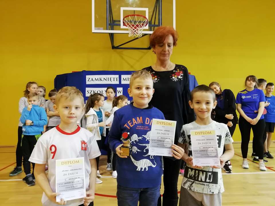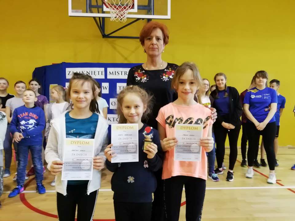 Pamiątkowe puchary oraz dyplomy wręczyła Pani Dyrektor Alina Rączka.