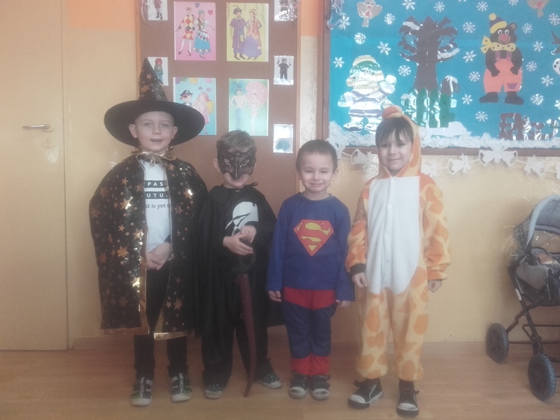 Dnia 15 lutego w przedszkolu we Wrotkowie odbył się Bal Karnawałowy. Tego dnia już od rana w Przedszkolu pojawiały się kolorowe postacie. Dzieci przebrane były za bohaterów znanych bajek. Po wielkiej prezentacji strojów rozpoczęły się tańce, zabawy i konkursy – przy rytmach wesołej muzyki. Oczywiście znalazło się coś dla spragnionych i zmęczonych- chwila relaksu przy wspólnym poczęstunku i pamiątkowe zdjęcie. Do domu dzieci wracały we wspaniałych humorach, dzieląc się z rodzicami swoimi przeżyciami.