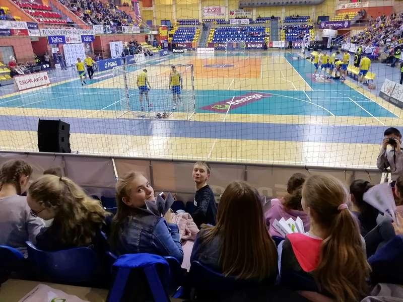 Blisko trzy tysiące widzów, a wśród nich liczna grupa dzieci z naszej szkoły kibicowała zmaganiom piłkarzy ręcznych, gdzie miejscowa drużyna Energa MKS Kalisz podejmowała aktualnego mistrza Polski PGE VIVE Kielce.
