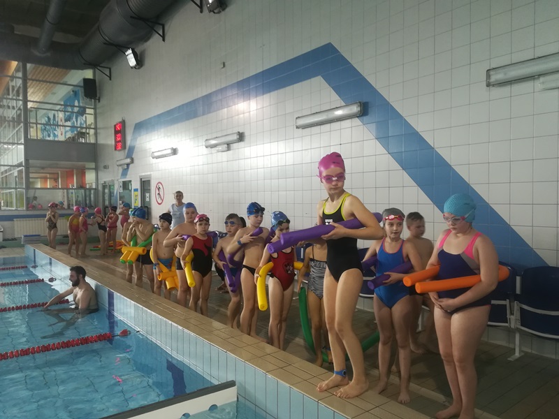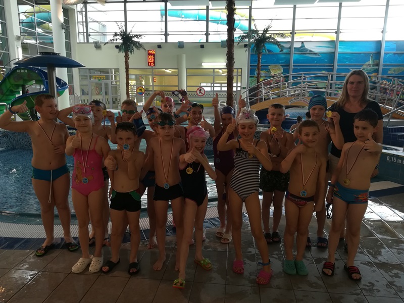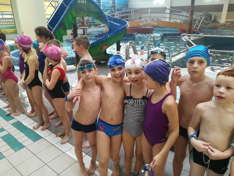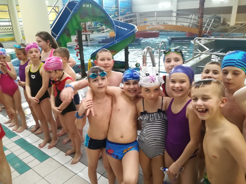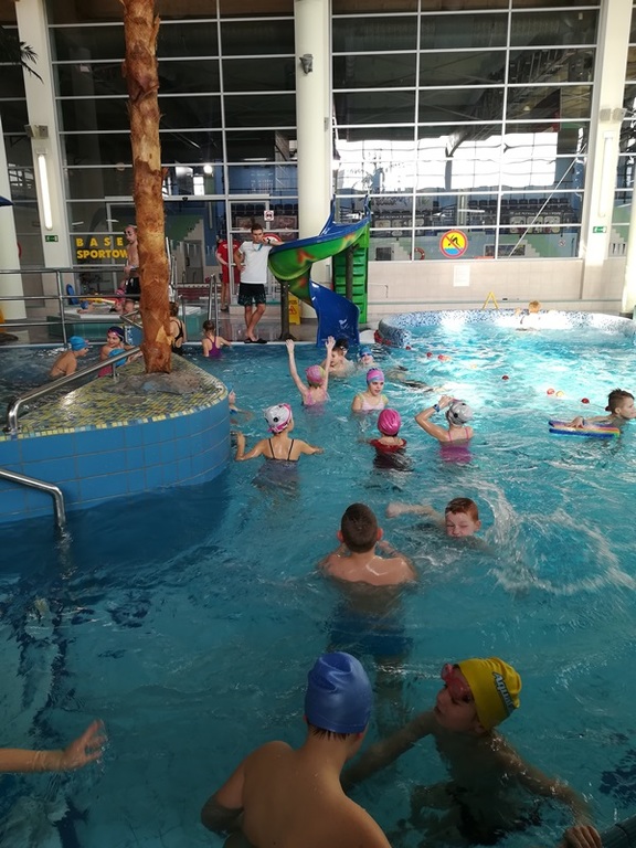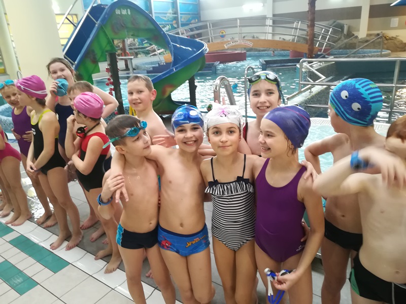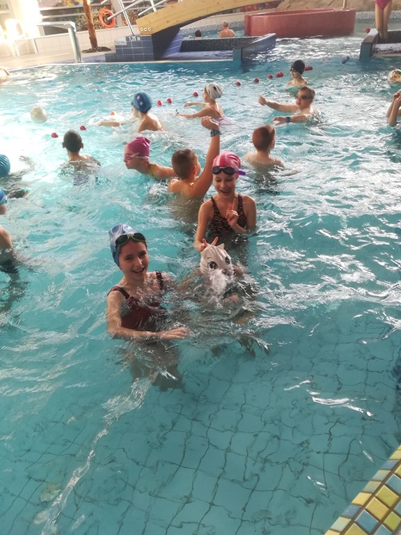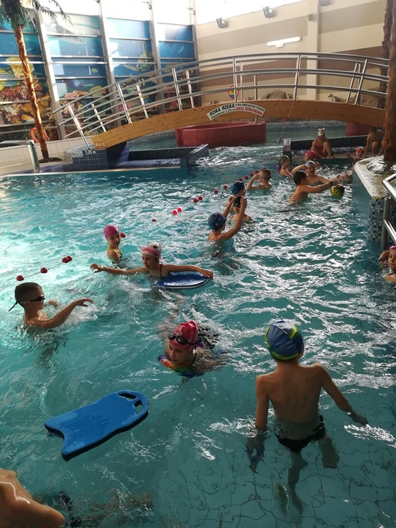 Przez 2 tygodnie począwszy od 25 lutego 2019r. uczniowie klasy II mieli okazję uczestniczenia w bezpłatnych zajęciach w ramach programu powszechnej nauki pływania "Umiem pływać". Zajęcia sportowe realizowane w ramach tego programu to przede wszystkim nauka podstawowych umiejętności pływackich, jak też możliwości rozwijania i podnoszenia sprawności fizycznej. Zajęcia odbywały się na pływalni w Jarocinie. Pod okien instruktorów uczniowie naszej szkoły doskonalili umiejętności pływackie, wielu pokonało strach przed wodą, czy skoki do wody. Najwięcej radości sprawiły dzieciom zabawy na basenie. Na zakończenie nauki pływania każdy uczestnik otrzymał pamiątkowy medal.