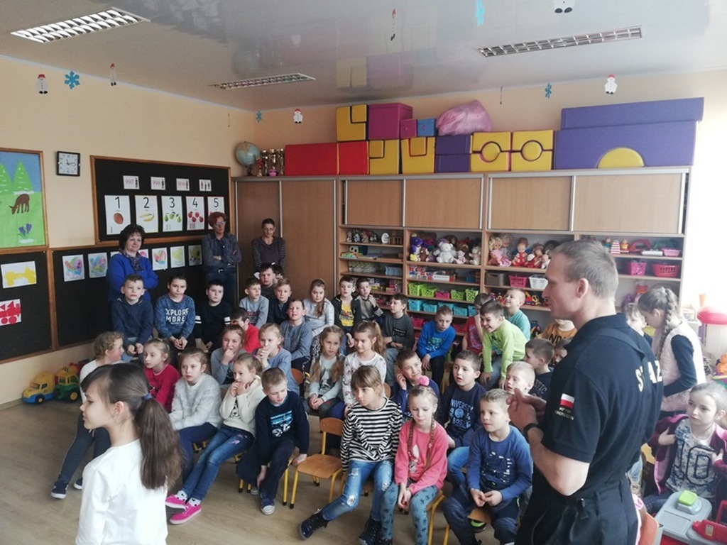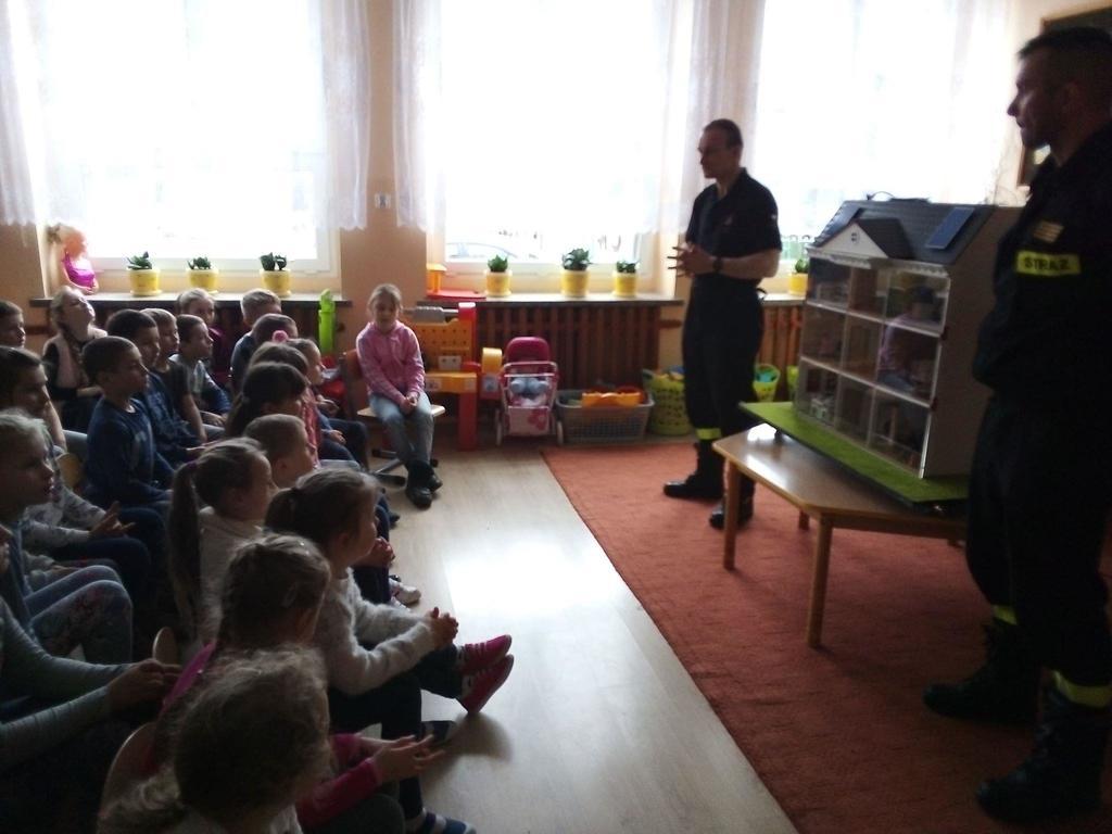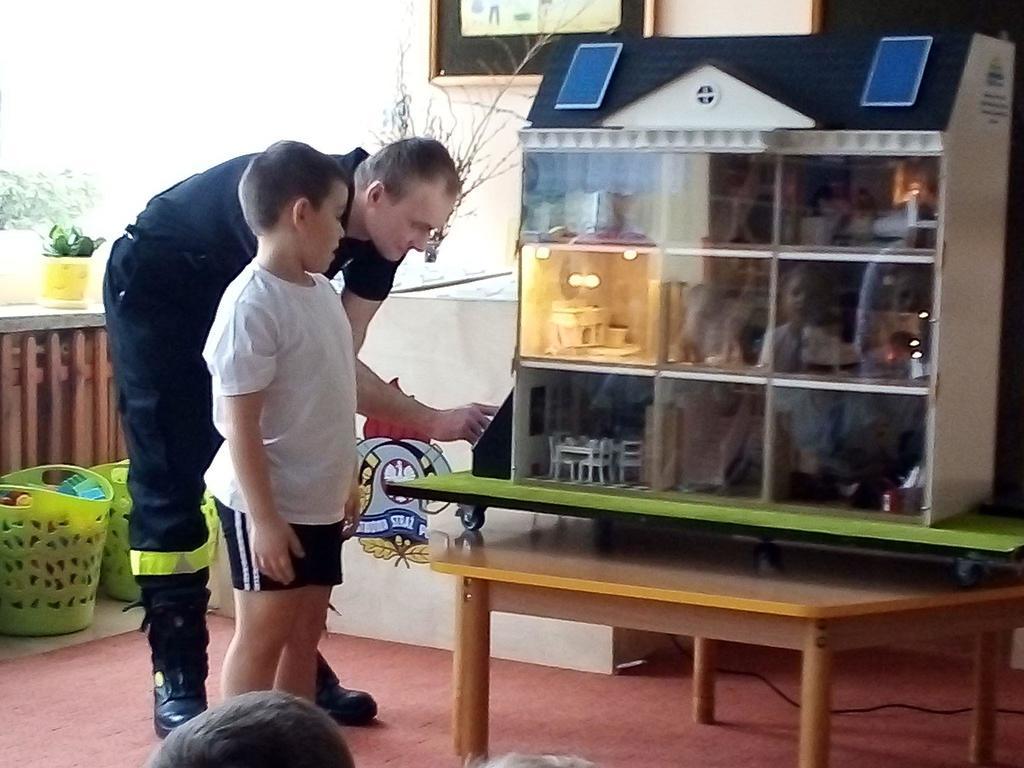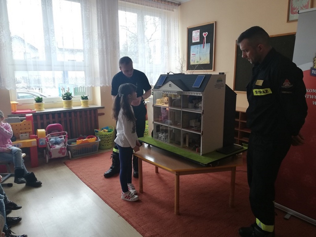 Dnia 11 marca 2019r. naszą szkołę odwiedzili strażacy z Komendy Powiatowej Straży Pożarnej w Krotoszynie. Pojawili się z niezwykłym wynalazkiem – MOBILNY SYMULATOR ZAGROŻEŃ. Gdy tylko dzieci zobaczyły ten niezwykły przedmiot zadawały mnóstwo pytań. Mogły się przekonać jak wiele potencjalnych zagrożeń czeka w naszych domach. Wystarczy bowiem chwila nieuwagi i braku skupienia przy korzystaniu z różnych urządzeń domowych by wywołać pożar. Symulator wyposażony był w czujnik dymu czadu, które natychmiast alarmowały domowników o tym, gdy pojawiło się niebezpieczeństwo. Zagrożenia zaprezentowane za pomocą symulatora w przystępny i rzeczowy sposób uświadomiły dzieciom jak niewiele trzeba by wywołać pożar.