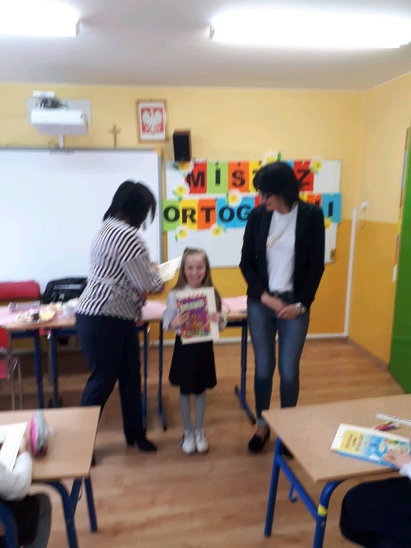 z klasy II. Mistrzem ortografii została Marta Marcinek zajmując I miejsce w kategorii klas III, Monika Paterek zdobyła III miejce w kategorii klas III, Martyna Klause zdobyła II miejsce w kategorii klas II.