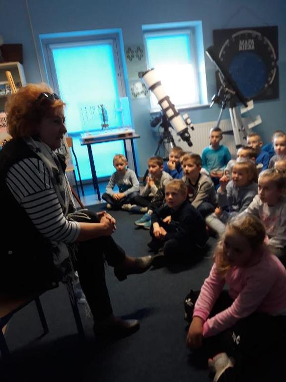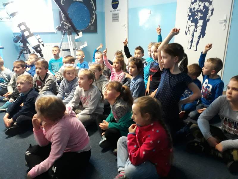 2 kwietnia uczniowie klasy I oraz sześciolatki udali się na wycieczkę do planetarium w Potarzycy. Celem wyjazdu było utrwalenie wiedzy o Wszechświecie oraz poznanie konstelacji gwiazd znajdujących się na naszym niebie. Na miejscu pani przewodniczka opowiedziała o historii powstania planetarium. Najpierw zaprowadziła nas do ogrodu astronomicznego, składającego się z ośmiu betonowych kul, wiernie imitujących planety Układu Słonecznego. Kulminacyjnym punktem pobytu w planetarium był udział w pokazie. Oglądaliśmy niebo w różnych porach roku, gwiazdy, gwiazdozbiory i galaktyki. Uczniowie zafascynowani wyglądem nieba nocą, z zaciekawieniem obserwowali zmianę wyglądu nieba w zależności od pory roku. Prowadzący pokazał zjawisko zaćmienia Księżyca, zaćmienia Słońca oraz zorzę polarną.