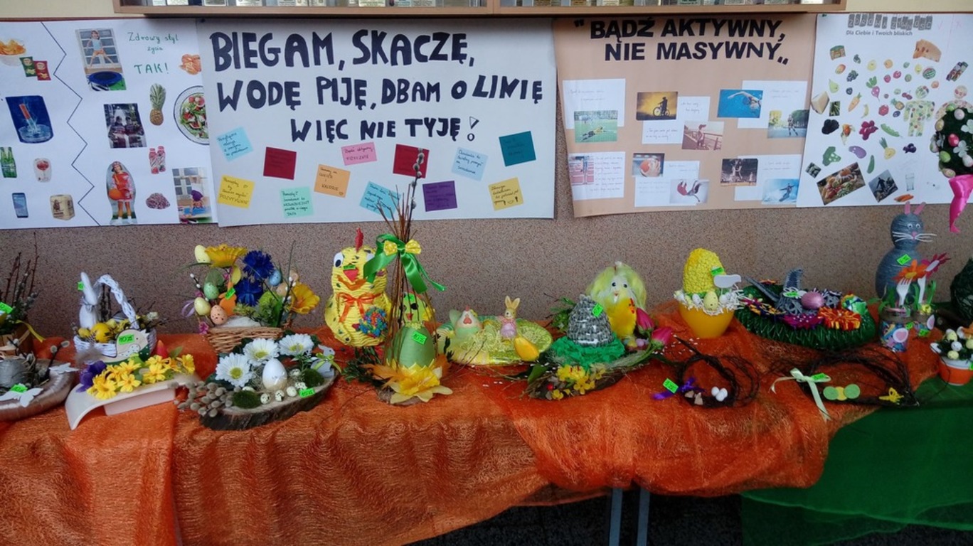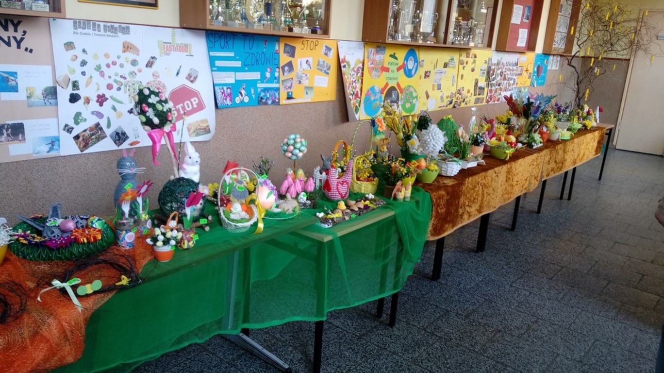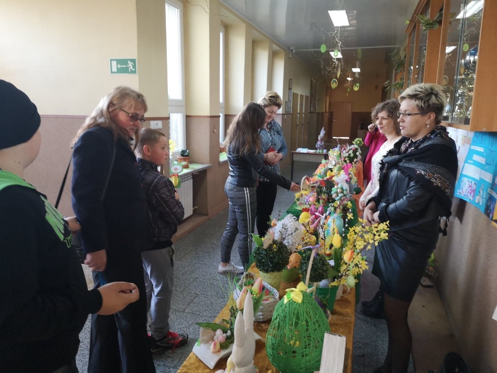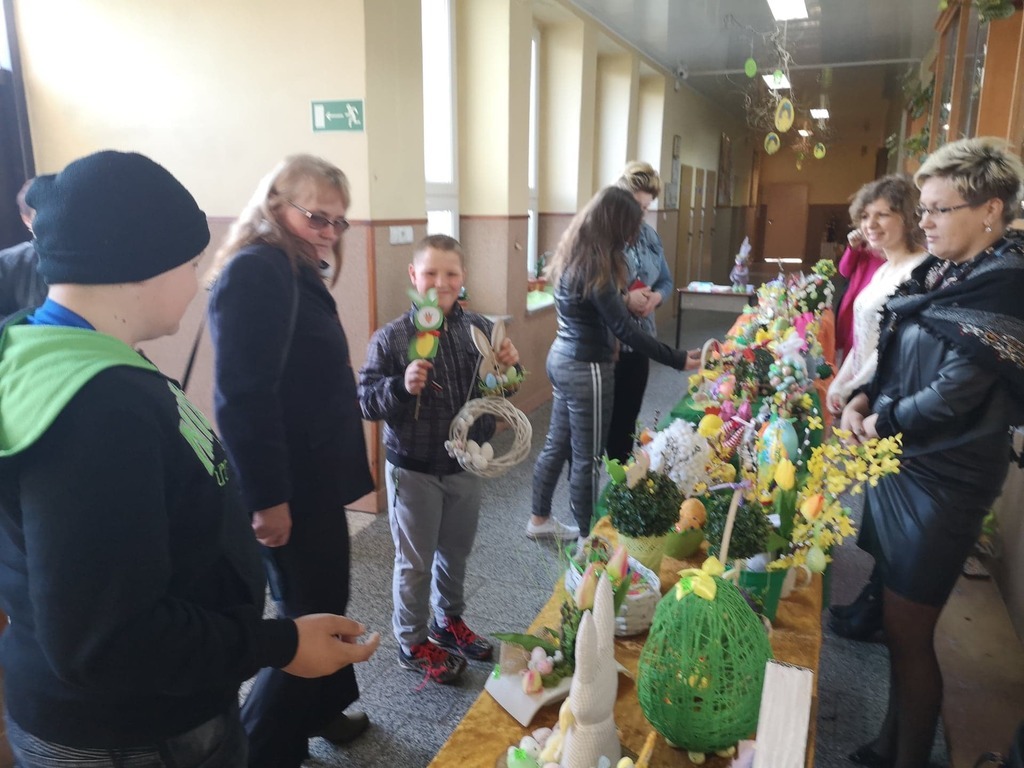 7 kwietnia br. od samego rana w holu głównym szkoły trwał kiermasz wielkanocny. Przepięknie wykonane przez rodziców i dzieci stroiki świąteczne, kartki i ozdoby cieszyły się ogromnym zainteresowaniem.