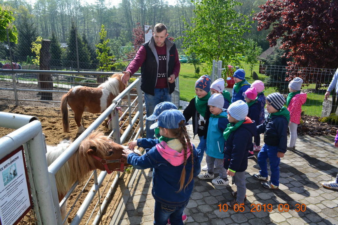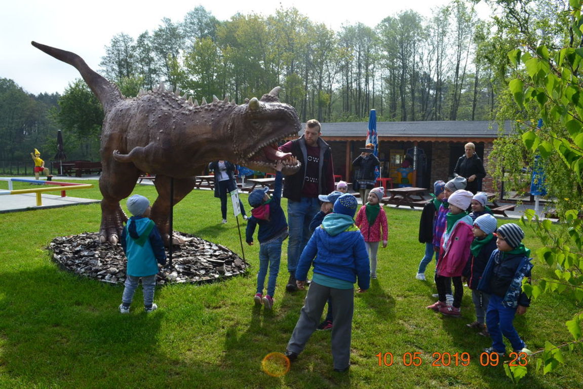 W piątek 10.05.2019r. przedszkolaki z Wrotkowa wraz z rodzicami wybrały się autobusem na wycieczkę do Bryllandii w Witaszycach. Na miejscu na dzieci czekało mnóstwo atrakcji. Dzieci miały okazję zobaczyć różne gatunki dinozaurów, owadów oraz zwiedzić mini zoo. Przedszkolaki głaskały konie, karmiły lamy. Zwierzętami tymi nie tylko nacieszyły oczy, dowiedziały się jak dbać o nie, lecz każde z nich miało okazję przejechać się konno zarówno bryczką, jak i indywidualnie. Największe jednak szczęście widać było na twarzach małych pociech, podczas swobodnej zabawy na dmuchanych zamkach oraz ogromnym placu zabaw. W tym dniu pełnym różnych atrakcji, maluchy poznały prawdziwą przyjemność przebywania na łonie natury w towarzystwie zwierząt.
