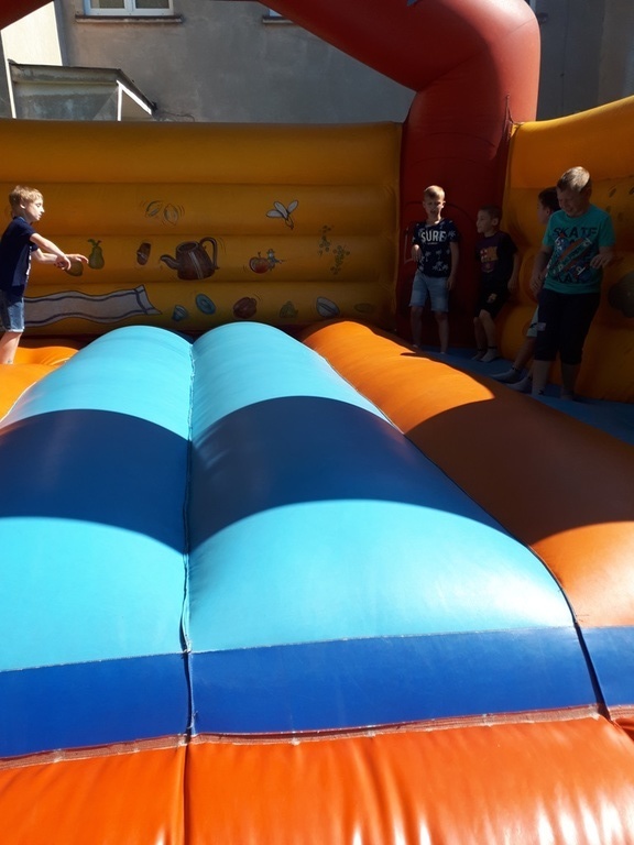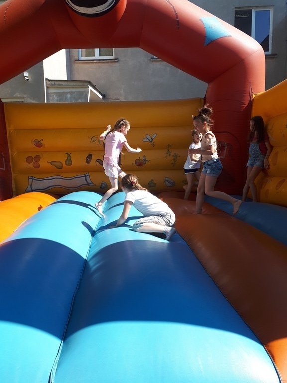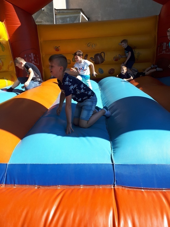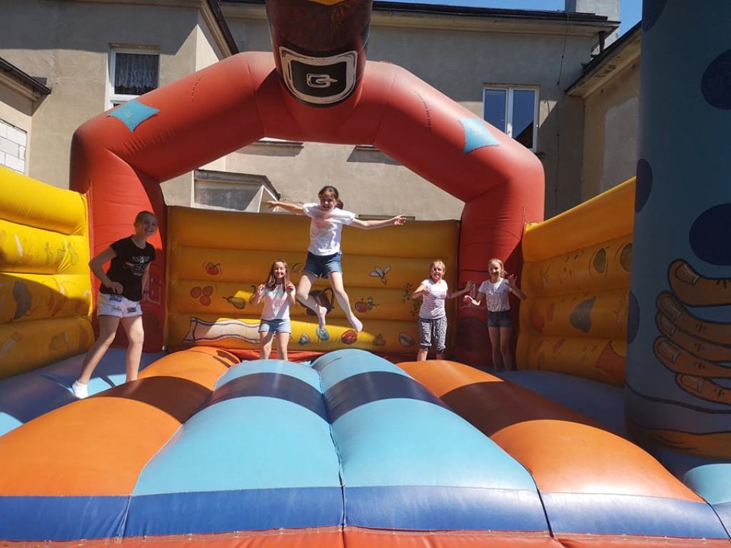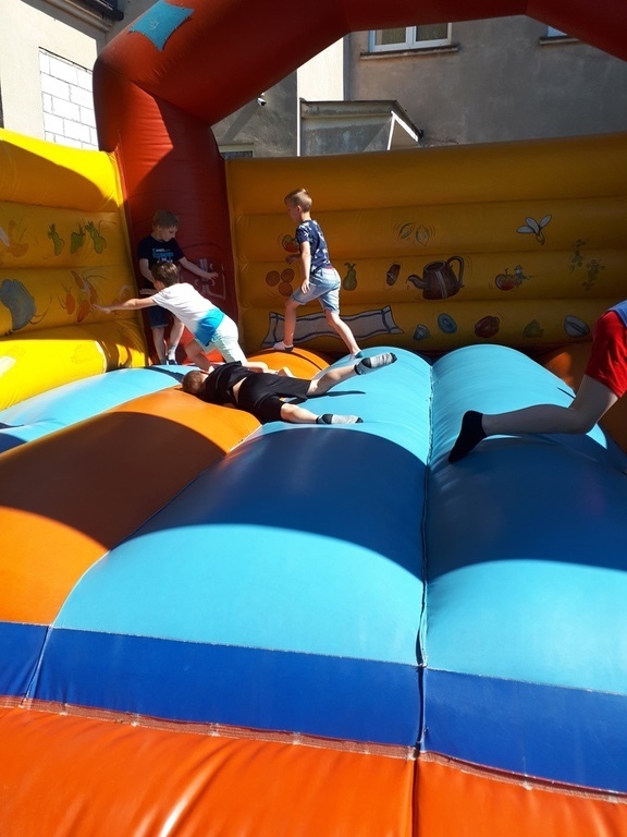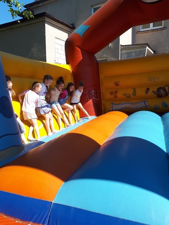 W dniu 3 czerwca br. w naszej szkole świętowaliśmy Dzień Dziecka. Ogromną atrakcją nie tylko dla najmłodszych ale również dla najstarszych uczniów okazał się dmuchany zamek. Bawiliśmy się wspaniale! Jak co roku grillowane kiełbaski bardzo wszystkim smakowały. W tym dniu atrakcji nie było końca, popołudniu odbyła się super dyskoteka, której inicjatorem i organizatorem była pani Aleksandra Misiak. Była to pierwsza, niezwykle udana i oczywiście "nieostatnia" dyskoteka w szkole.