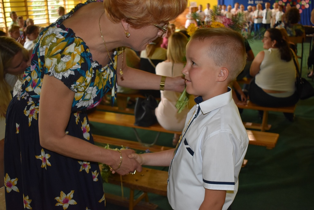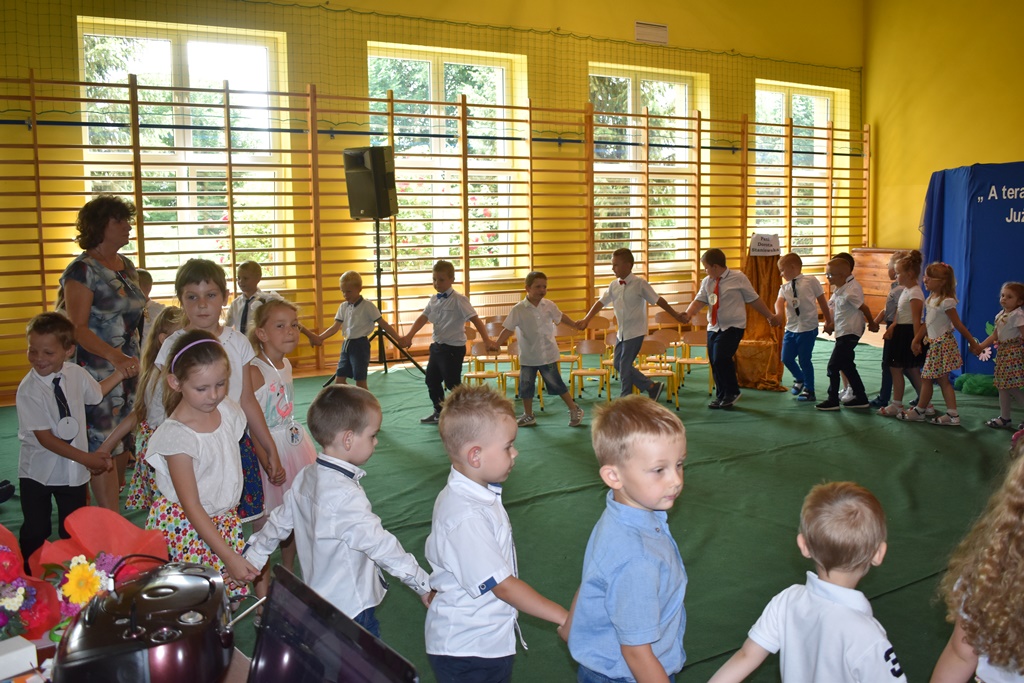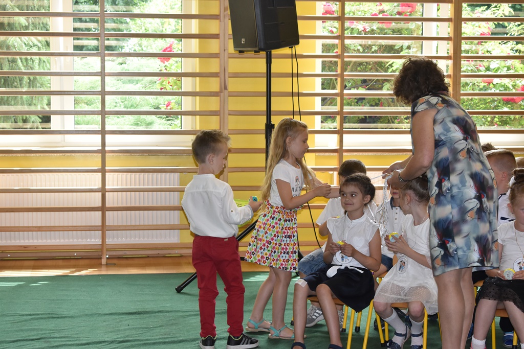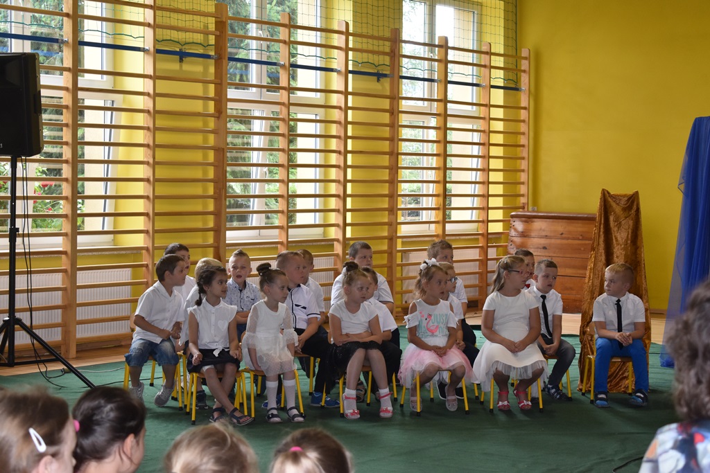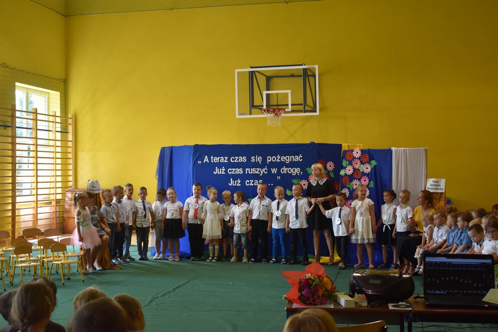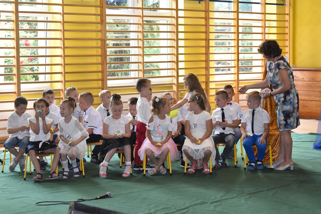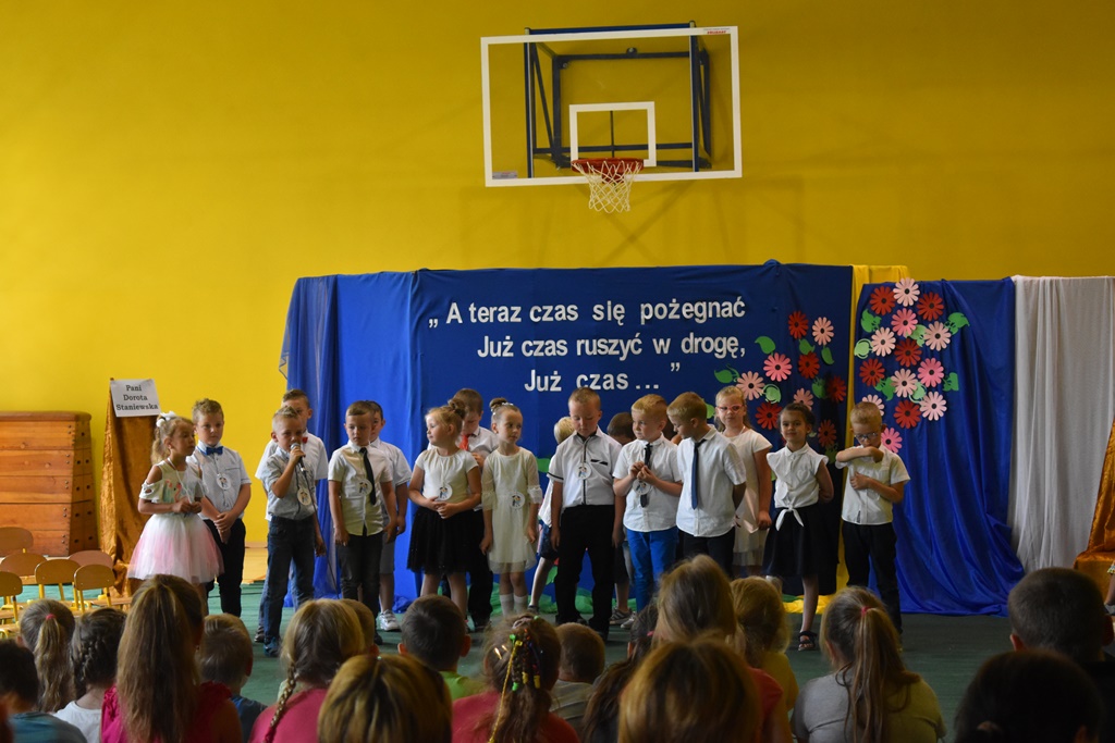 18 czerwca 2019 r. w sali gimnastycznej naszej szkoły dzieci z oddziałów przedszkolnych pożegnały się z przedszkolem. Młodsze przedszkolaki tylko na czas wakacji, natomiast 6-latki opuszczają salę przedszkolną, aby we wrześniu rozpocząć naukę w klasie I. Pogram artystyczny rozpoczęły młodsze grupy, a w swoich piosenkach i wierszach przypominały o zachowaniu bezpieczeństwa podczas wakacji. Następnie podziękowały swoim Paniom za całoroczną pracę i pożegnały starszych kolegów i koleżanki. W kolejnym punkcie uroczystości to sześciolatki żegnały się z przedszkolem, wspominając pierwsze chwile w nim spędzone, dziękując Paniom i dyrekcji szkoły. Były kwiaty, uśmiechy ale także łzy wzruszenia. Kochane Starszaki życzymy Wam wspaniałego startu w klasie pierwszej już od września!!