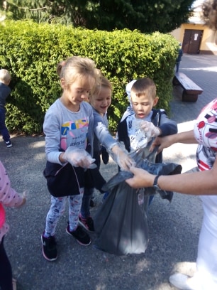 20 września 2019 r. dzieci z naszego przedszkola wzięły udział w akcji „Sprzątanie Świata”. Przedszkolaki zaopatrzone w rękawiczki ruszyły w teren okolicy przedszkola, aby oczyścić zaśmiecony świat! Dzieci dowiedziały się, że o przyrodę trzeba dbać i chronić ją, by móc w pełni korzystać z jej uroków. Dzięki tego typu akcjom, przedszkolaki rozumieją potrzebę ochrony środowiska oraz zachowania porządku w miejscu, gdzie przebywają.