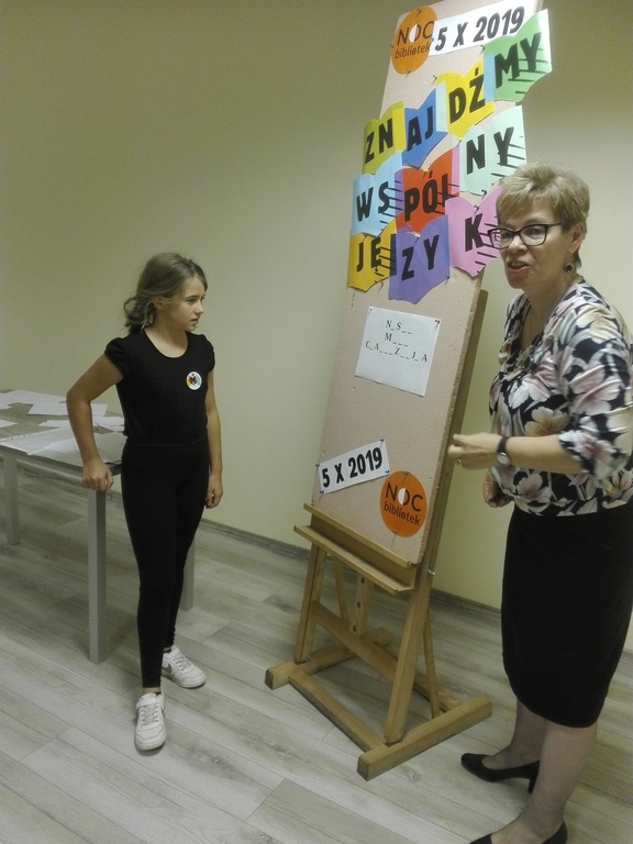 V edycja ogólnopolskiej akcji Noc Bibliotek odbyła się w sobotę 5 października 2019 r. pod hasłem "Znajdźmy wspólny język". Grupa uczennic z naszej szkoły uczestniczyła w spotkaniu w nietypowych godzina od 18.00 do 23.00, które zostało zorganizowane przez Bibliotekę Publiczną Miasta i Gminy Koźmin Wielkopolski. Wspólnie z kolegami i koleżankami z innych koźmińskich szkół rozwiązywały kalambury, przygotowały grę planszową oraz śpiewały ulubione piosenki w wersji karaoke.