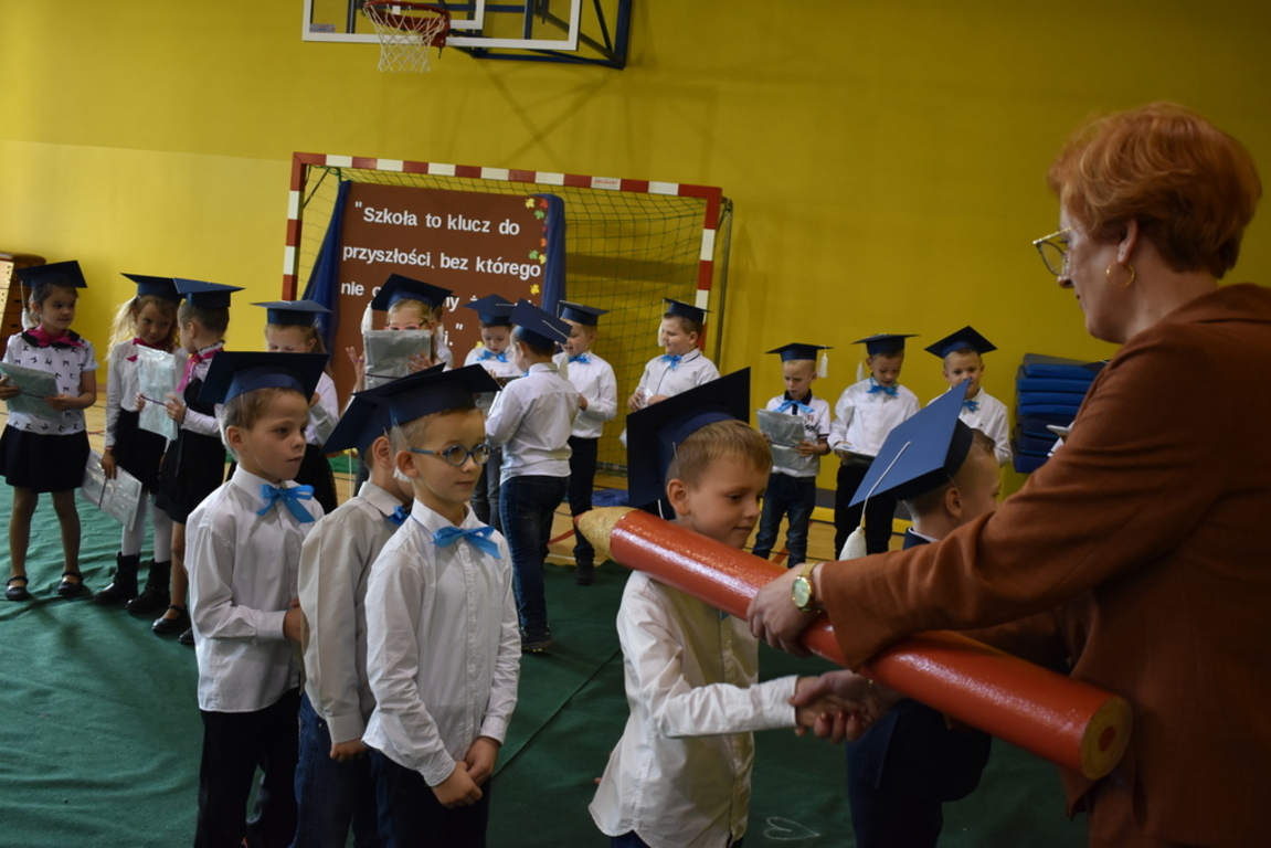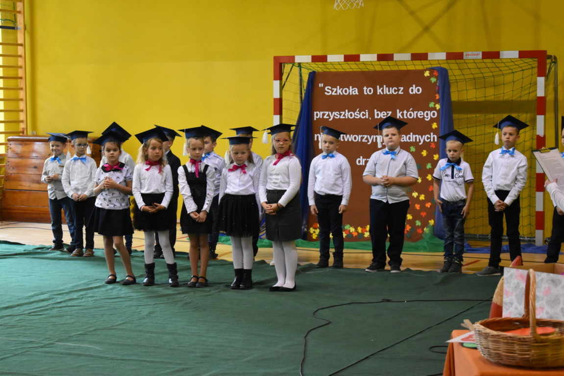 23 października br. uczniowie klasy pierwszej ubrani w stroje galowe, pośród przepięknej dekoracji w sali gimnastycznej, gotowi byli by złożyć uroczyste przyrzeczenie i przyjąć oficjalnie miano ucznia Szkoły Podstawowej w Mokronosie.