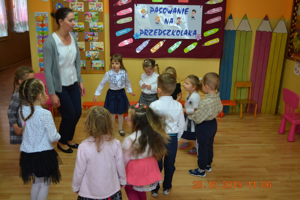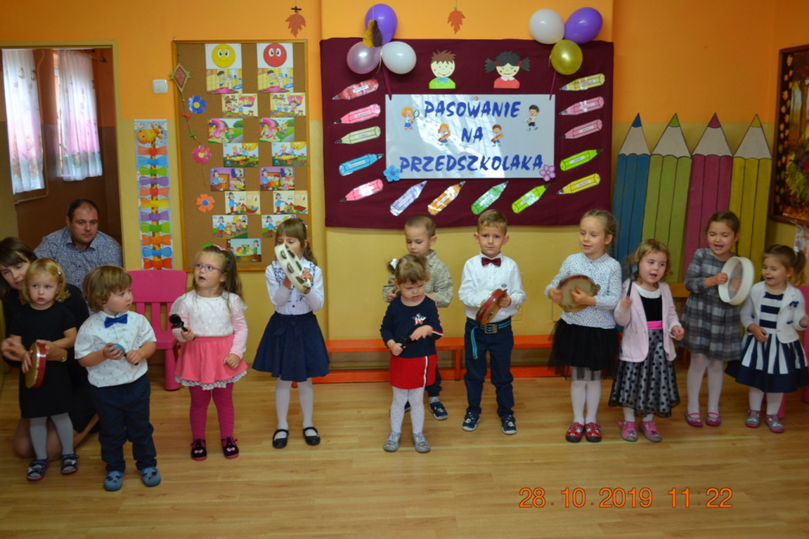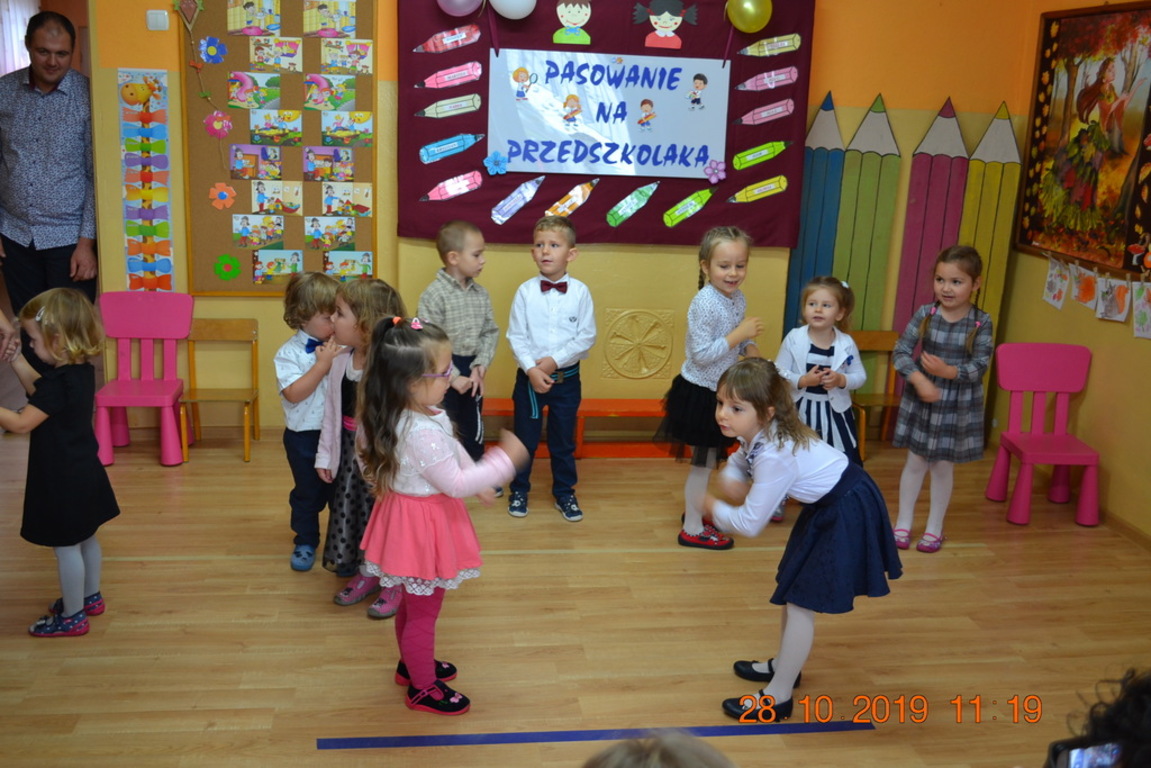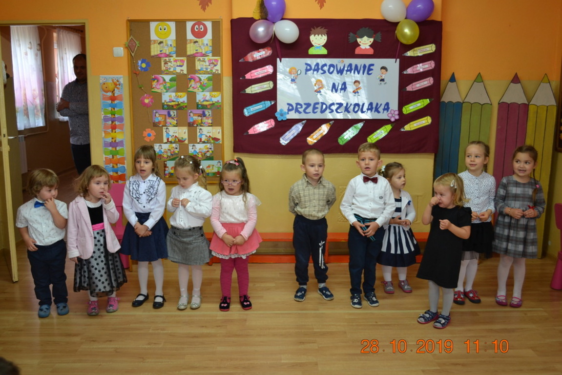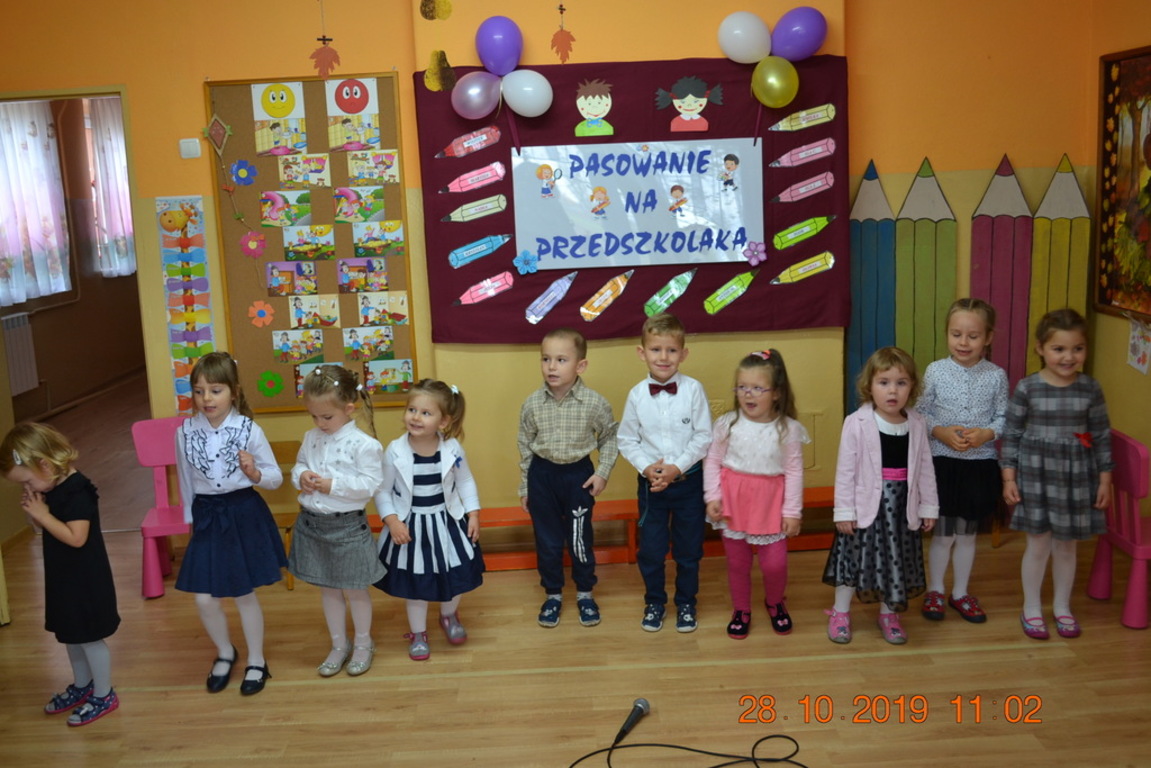 Ta wyjątkowa uroczystość w oddziale przedszkolnym we Wrotkowie odbyła się w poniedziałek 28.10.2019r. Dzieci w odświętnych strojach pięknie zaprezentowały program artystyczny wszystkim zaproszonym gościom. Przedszkolaki recytowały wiersze, śpiewały piosenki, tańczyły oraz grały na instrumentach muzycznych. Dzieci za każdym razem otrzymywały mnóstwo oklasków. Po części artystycznej, dzieci obiecały: zgodnie bawić się w przedszkolu, przychodzić każdego dnia z uśmiechem, słuchać pań i pomagać kolegom, być dzielnym przedszkolakiem. Zastępca dyrektora szkoły Pani Mariola Górak za pomocą „magicznej kredki” dokonała pasowania każdego przedszkolaka. Na pamiątkę tego wydarzenia dzieci otrzymały dyplomy, medale Super Przedszkolaka oraz upominek. Kolejnym punktem uroczystości był słodki poczęstunek, na którym nie zabrakło miłej i radosnej atmosfery. Występując przed tak dużą publicznością przedszkolaki wykazały się nie tylko swoimi umiejętnościami, ale również wielką odwagą.