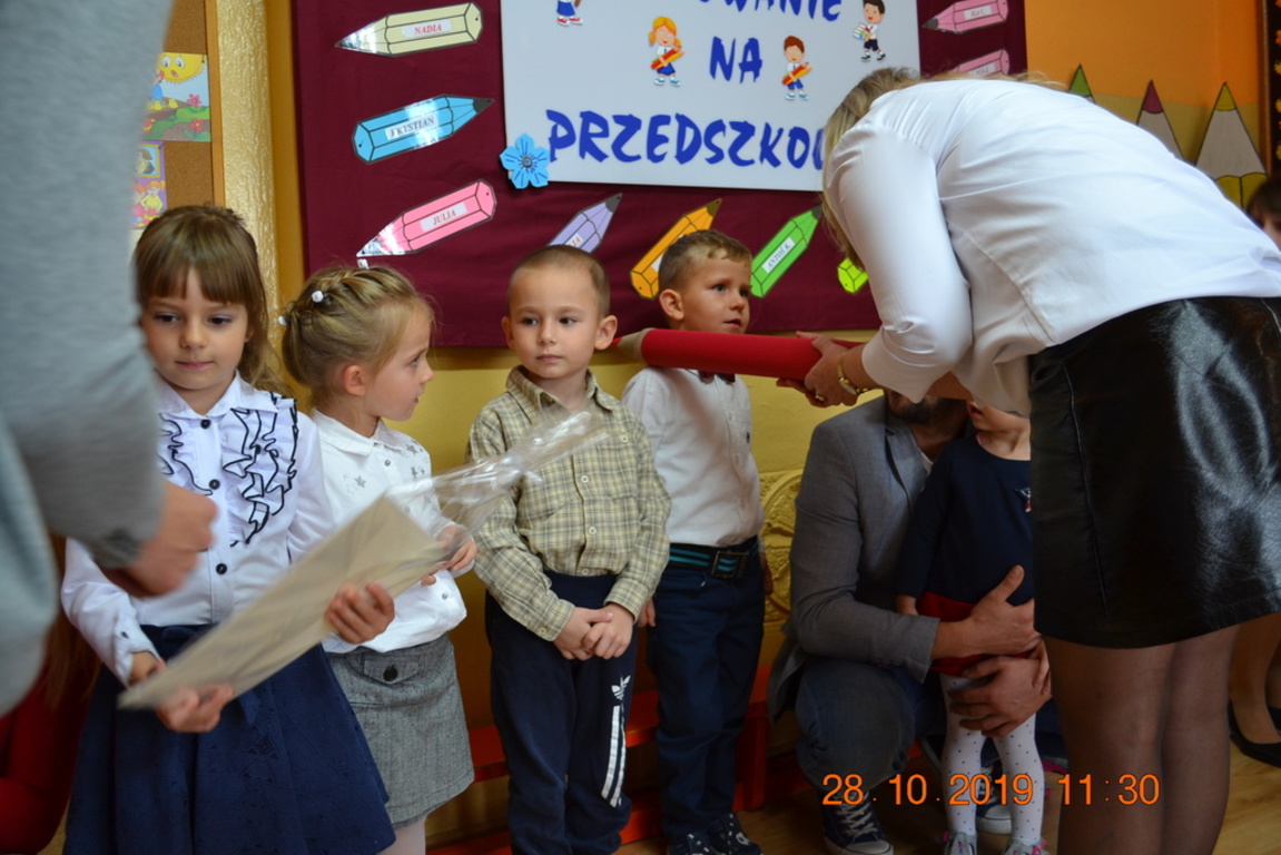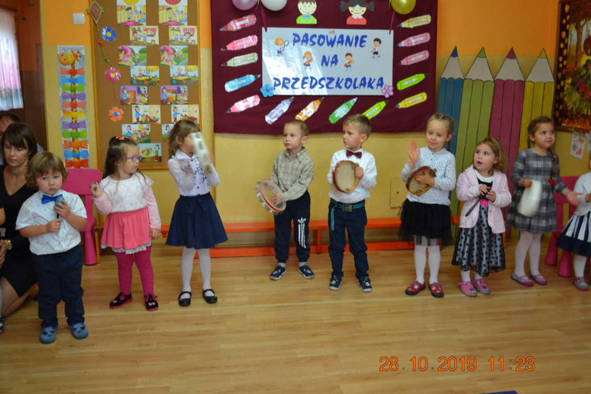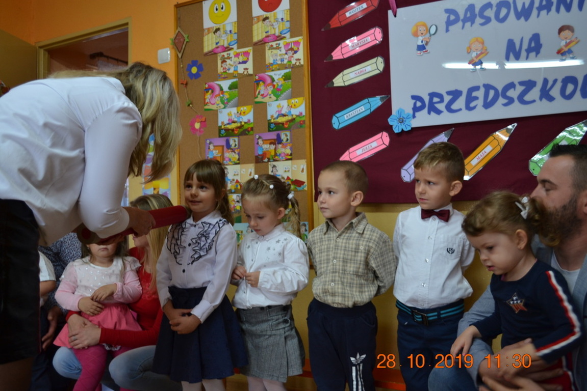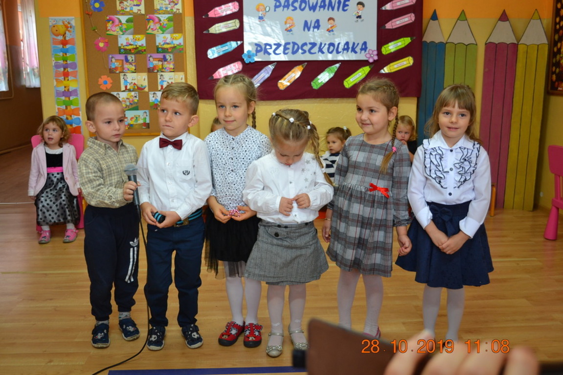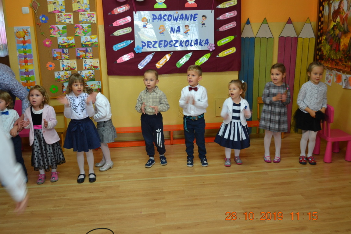 Ta wyjątkowa uroczystość w oddziale przedszkolnym we Wrotkowie odbyła się w poniedziałek 28.10.2019r. Dzieci w odświętnych strojach pięknie zaprezentowały program artystyczny wszystkim zaproszonym gościom. Przedszkolaki recytowały wiersze, śpiewały piosenki, tańczyły oraz grały na instrumentach muzycznych. Dzieci za każdym razem otrzymywały mnóstwo oklasków. Po części artystycznej, dzieci obiecały: zgodnie bawić się w przedszkolu, przychodzić każdego dnia z uśmiechem, słuchać pań i pomagać kolegom, być dzielnym przedszkolakiem. Zastępca dyrektora szkoły Pani Mariola Górak za pomocą „magicznej kredki” dokonała pasowania każdego przedszkolaka. Na pamiątkę tego wydarzenia dzieci otrzymały dyplomy, medale Super Przedszkolaka oraz upominek. Kolejnym punktem uroczystości był słodki poczęstunek, na którym nie zabrakło miłej i radosnej atmosfery. Występując przed tak dużą publicznością przedszkolaki wykazały się nie tylko swoimi umiejętnościami, ale również wielką odwagą.