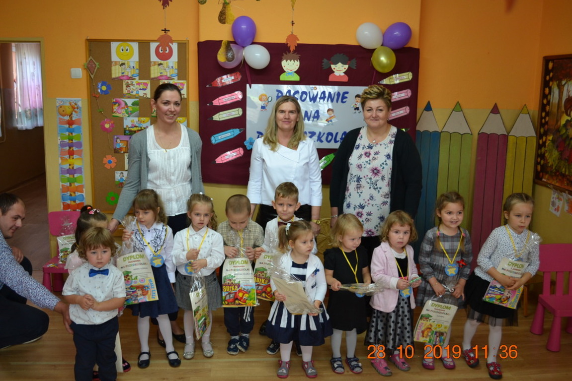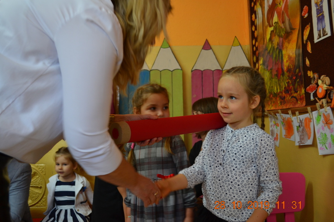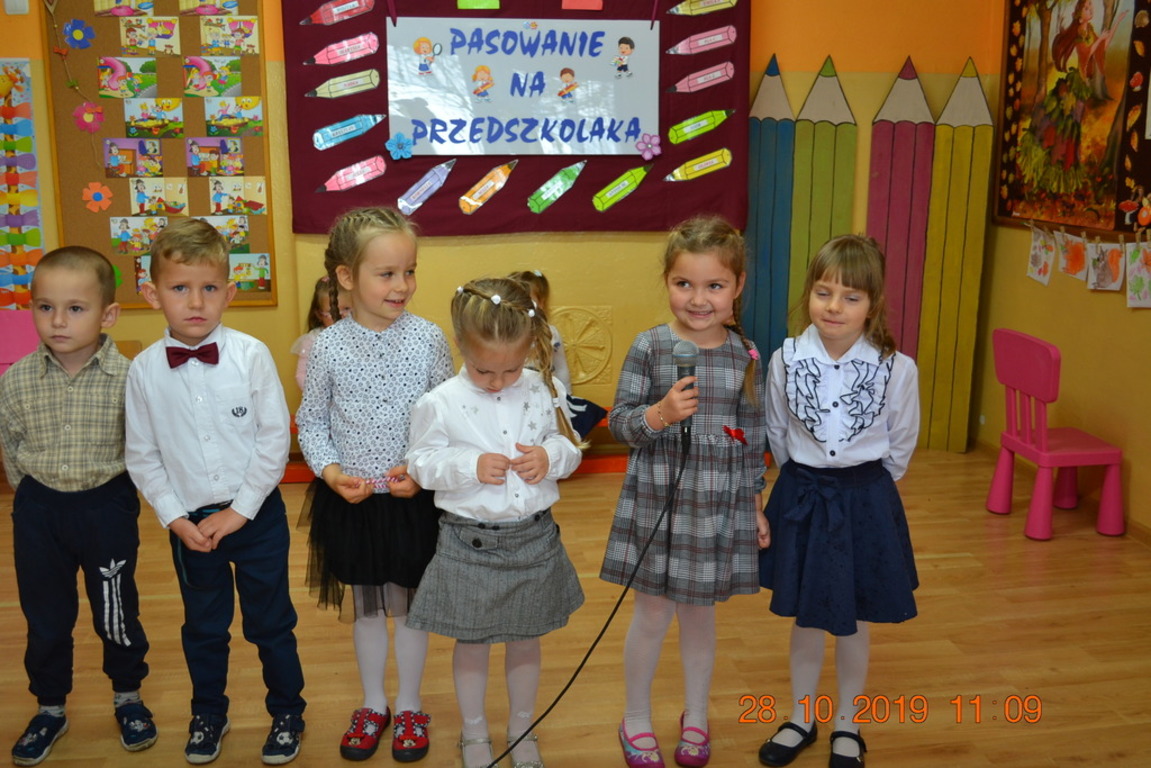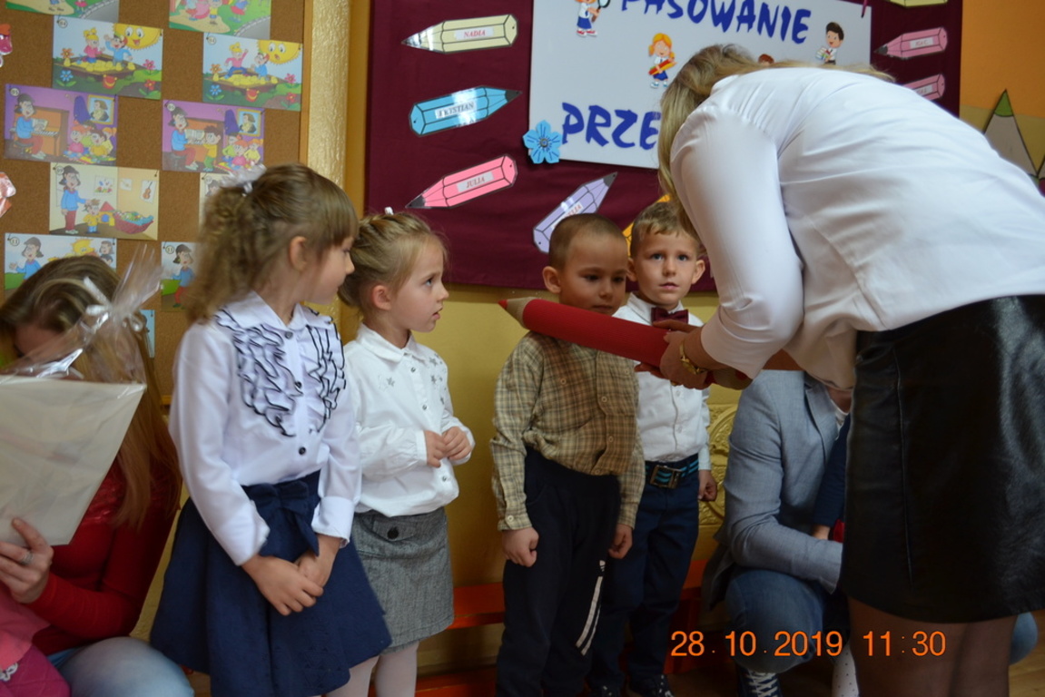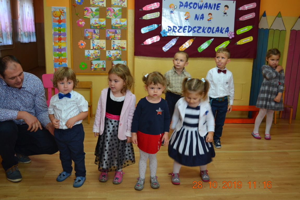 Ta wyjątkowa uroczystość w oddziale przedszkolnym we Wrotkowie odbyła się w poniedziałek 28.10.2019r. Dzieci w odświętnych strojach pięknie zaprezentowały program artystyczny wszystkim zaproszonym gościom. Przedszkolaki recytowały wiersze, śpiewały piosenki, tańczyły oraz grały na instrumentach muzycznych. Dzieci za każdym razem otrzymywały mnóstwo oklasków. Po części artystycznej, dzieci obiecały: zgodnie bawić się w przedszkolu, przychodzić każdego dnia z uśmiechem, słuchać pań i pomagać kolegom, być dzielnym przedszkolakiem. Zastępca dyrektora szkoły Pani Mariola Górak za pomocą „magicznej kredki” dokonała pasowania każdego przedszkolaka. Na pamiątkę tego wydarzenia dzieci otrzymały dyplomy, medale Super Przedszkolaka oraz upominek. Kolejnym punktem uroczystości był słodki poczęstunek, na którym nie zabrakło miłej i radosnej atmosfery. Występując przed tak dużą publicznością przedszkolaki wykazały się nie tylko swoimi umiejętnościami, ale również wielką odwagą.