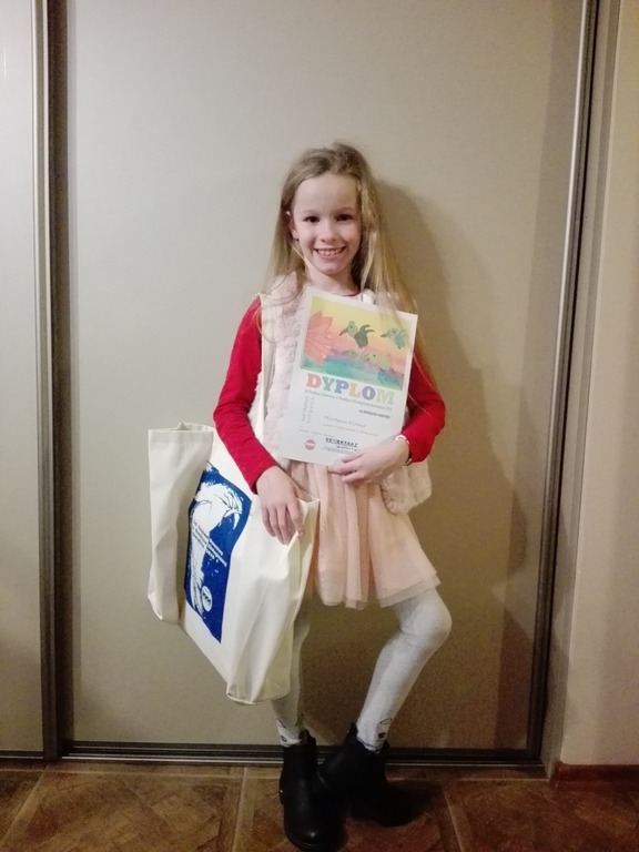 Martyna Klause z klasy III wzięła udział w konkursie plastycznym odbywającym się w ramach 24 Festiwalu Dziecięcego o Tematyce Ekologicznej Krotoszyn 2019, a jej praca została wyróżniona i nagrodzona w kategorii wiekowej 7 - 9 lat!