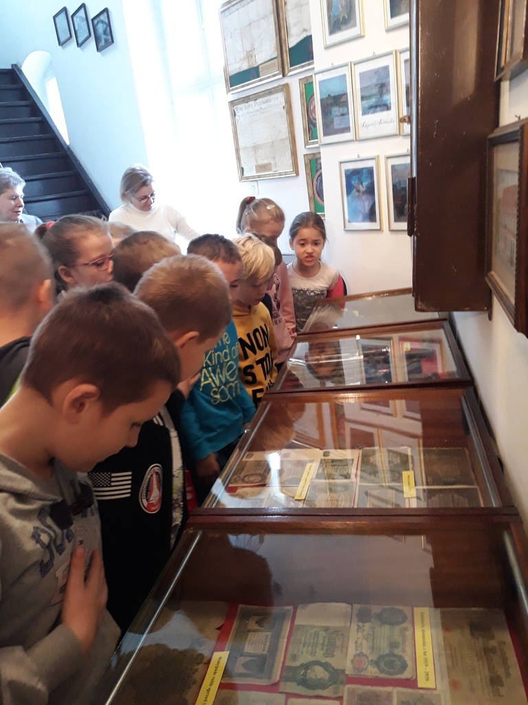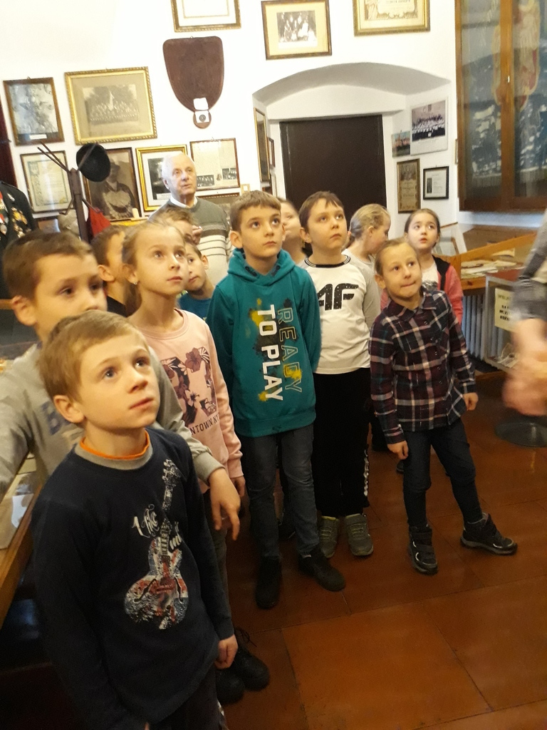 Pobyt w Koźminie rozpoczęliśmy od zwiedzenia Muzeum Ziemi Koźmińskiej. W jego salach powitał nas kustosz muzeum, dr Michał Pietrowski. Uczniowie z wielkim zainteresowaniem słuchali jego prelekcji o historii zamku koźmińskiego i początkach miasta nad Orlą. Następnie oglądaliśmy zgromadzone w muzeum eksponaty związane z historią i życiem codziennym na naszych ziemiach. Najwięcej emocji wywołał loch z postacią Maćka Borkowica. Dla większości uczniów było to pierwsze spotkanie z naszym muzeum. Jednak wyjątkowość tego miejsca na pewno pozostawi trwały ślad w pamięci i sprawi, że wrócą tam za jakiś czas, by jeszcze lepiej poznać to, co zostało im zaszczepione w dzieciństwie.