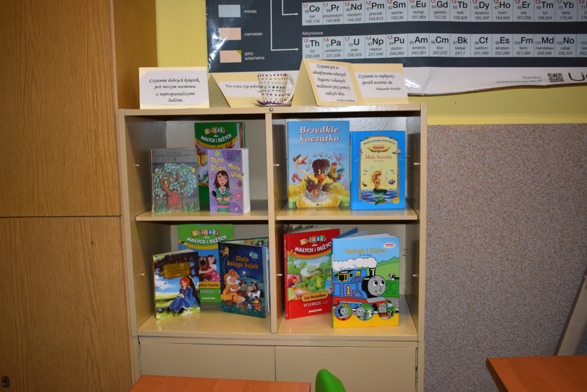 Nowości zakupione do biblioteki w ramach programu to atrakcyjne książki, często bestsellery, książki poczytnych autorów, nagradzane w prestiżowych konkursach literackich. Tak ciekawie doposażony księgozbiór pozwala uczniom rozwijać zainteresowania, podejmować dyskusje na temat przeczytanych książek, daje możliwość uczestniczenia w ciekawych zajęciach i projektach edukacyjnych, zachęca do nowych działań na rzecz promowania czytelnictwa. Liczne akcje czytelnicze skupiają wokół biblioteki większą grupę uczniów. Do takich należą m.in. konkursy plastyczno – czytelnicze („Moja ulubiona książeczka”, „To czytałam/em z moją mamą i tatą”, „By się czytać chciało, zakładkę stwórz wspaniałą”), szkolny konkurs recytatorski pt. „Cztery pory roku w poezji” dla klas I-III, happening „Książka moim ...” oraz wiele innych działań, które jeszcze są w trakcie realizacji.